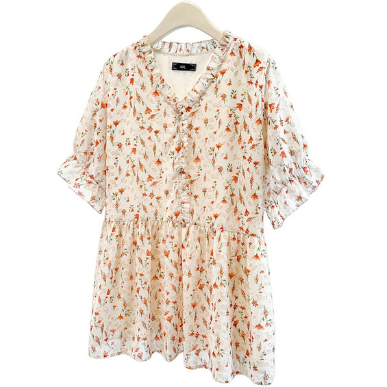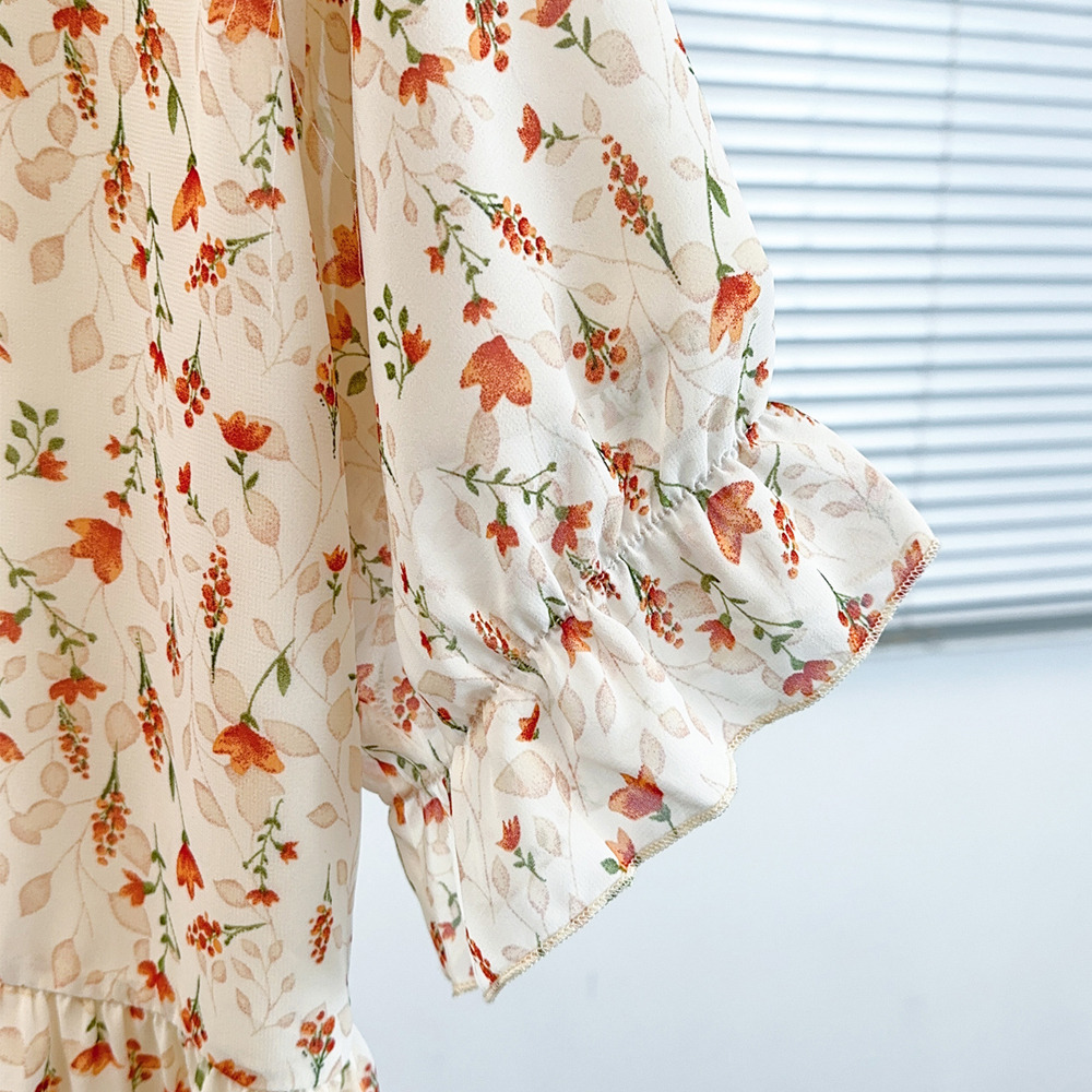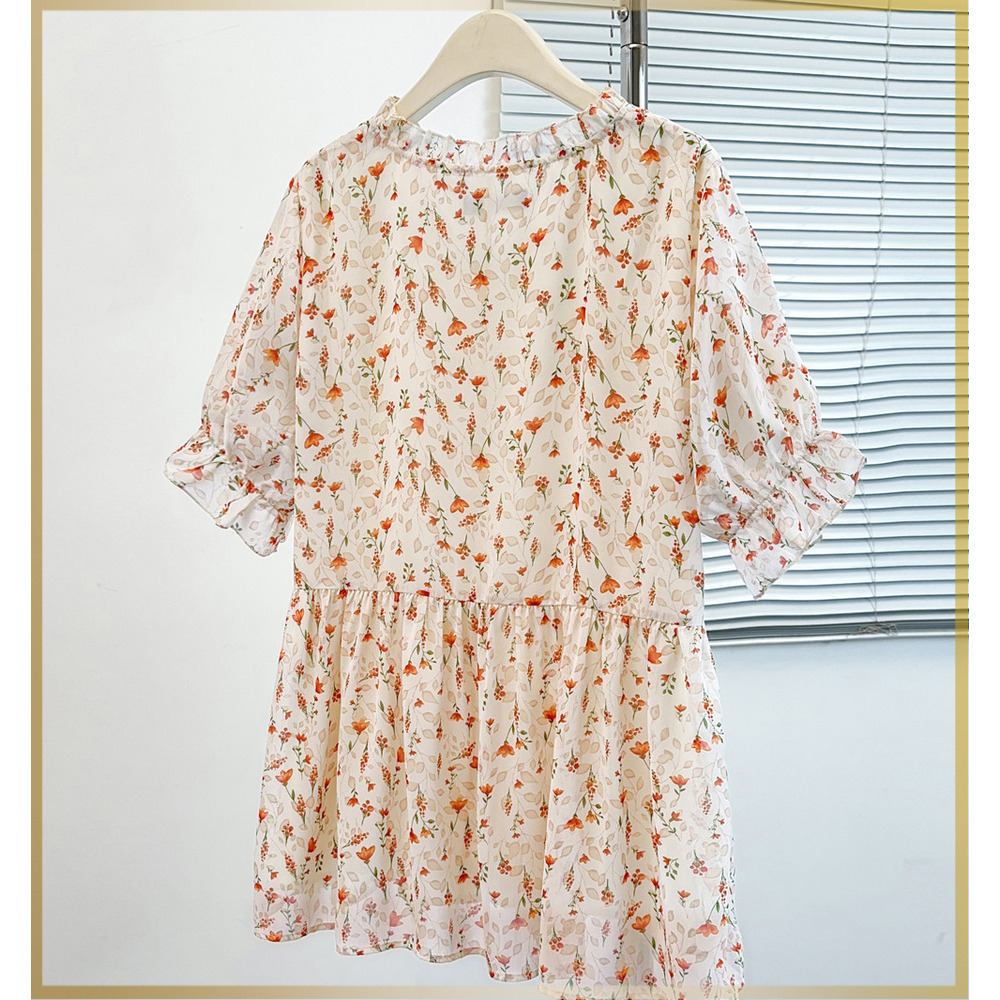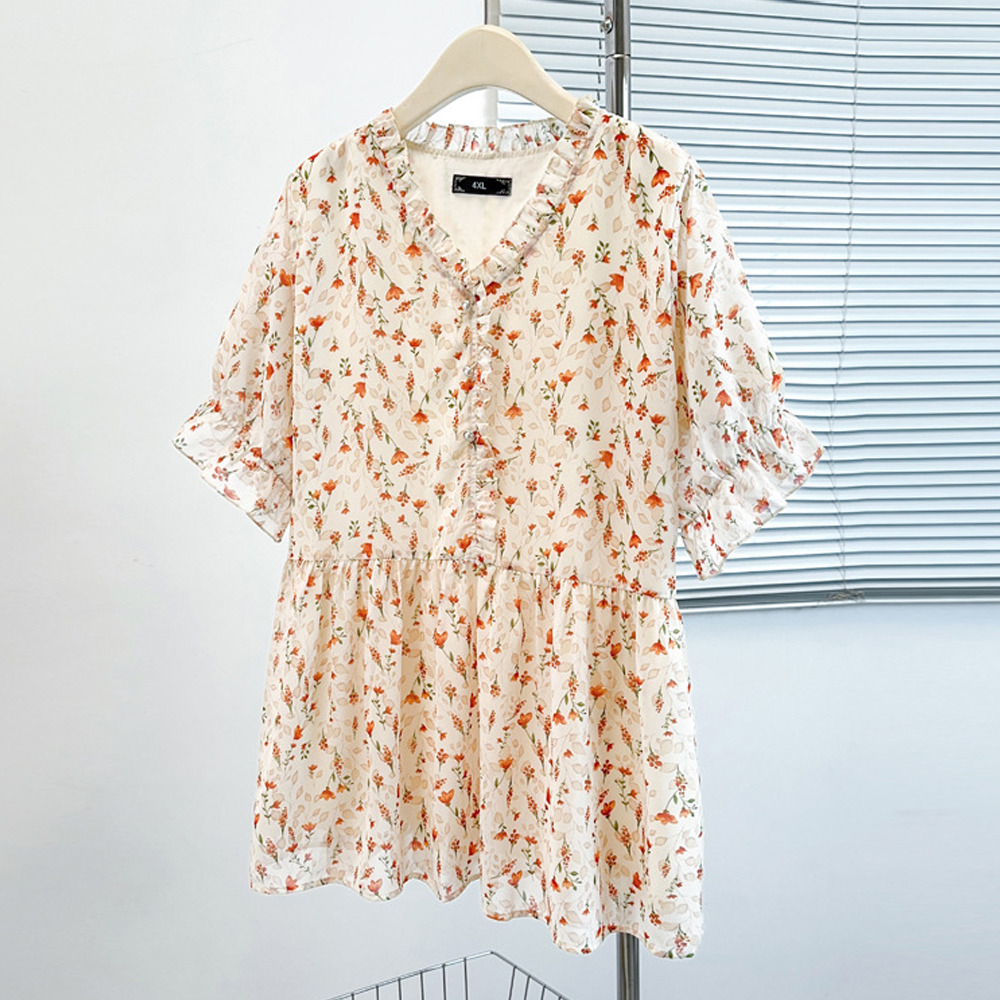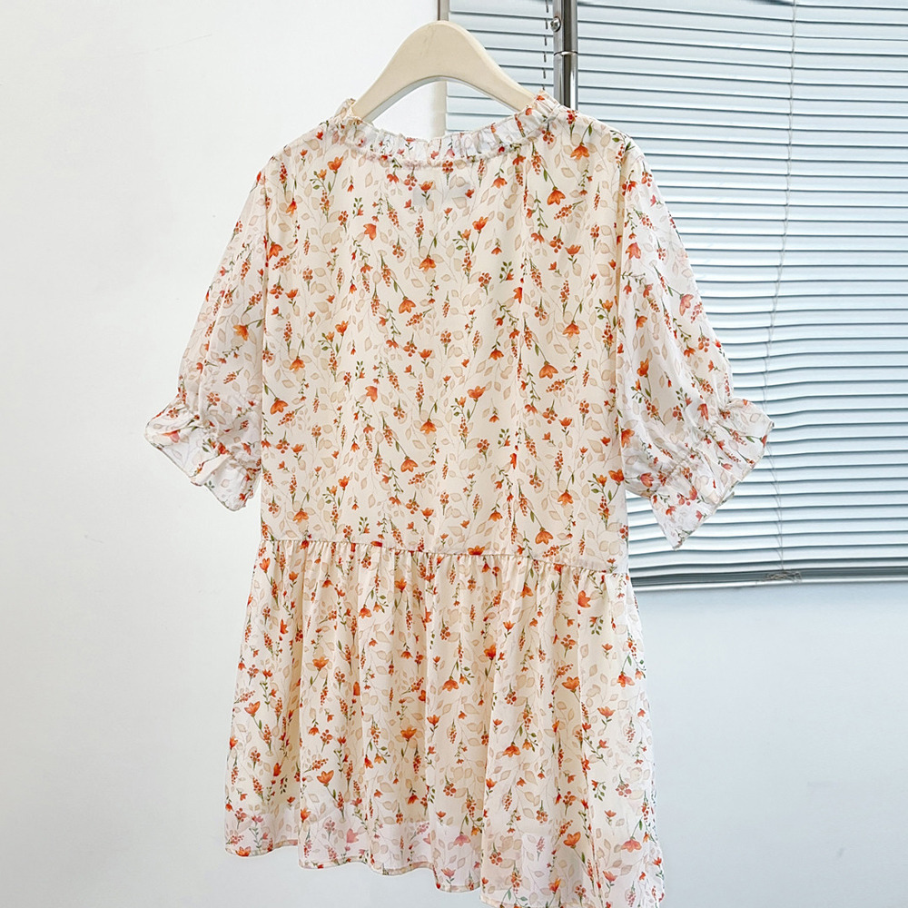 「シフォンフラワープリント プルオーバーブラウス」