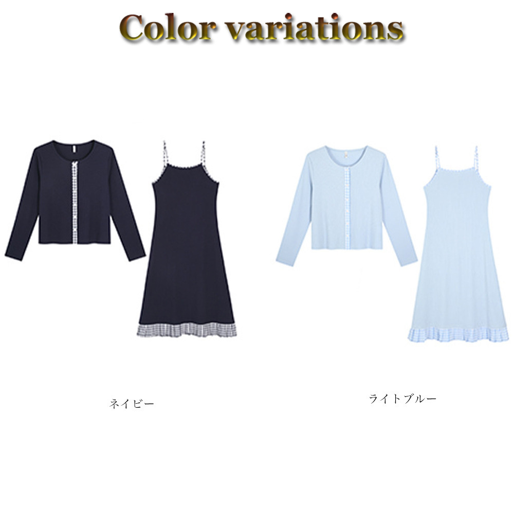 • チェックトリムの肩紐ワンピースとカーディガンのセットアップ6