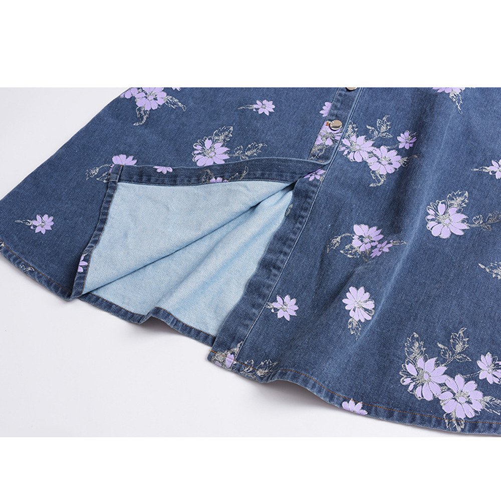 ウォッシュ加工のソフトなデニムにフラワープリントのガーリーなデザイン。