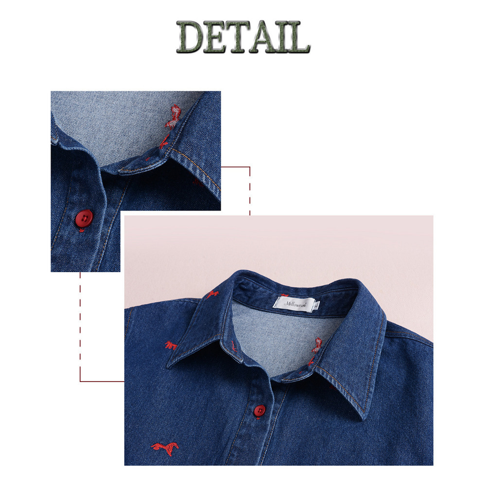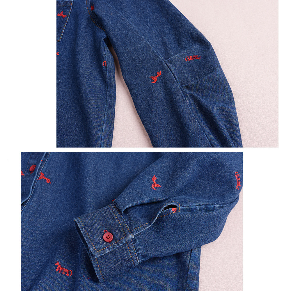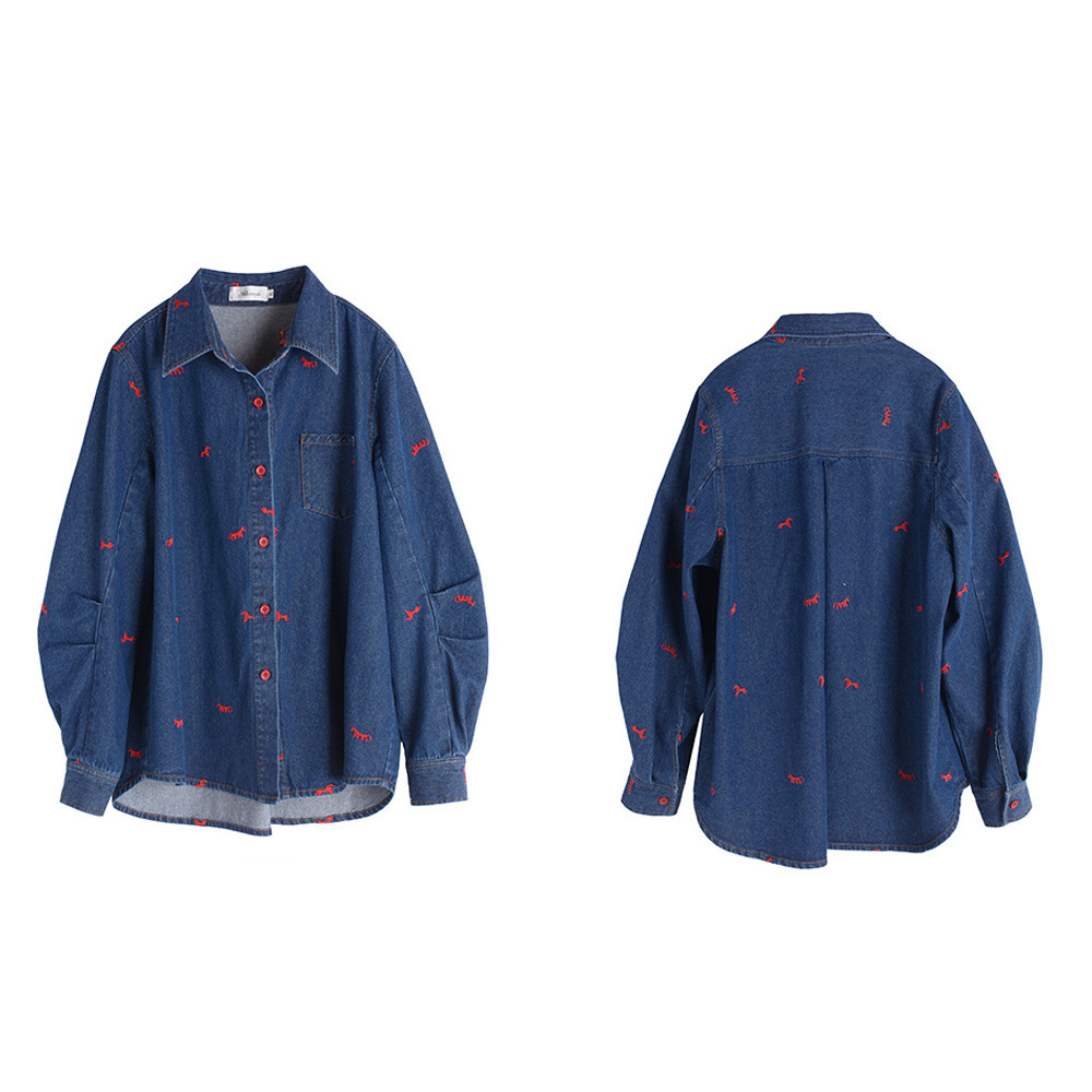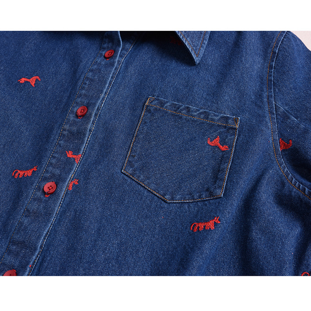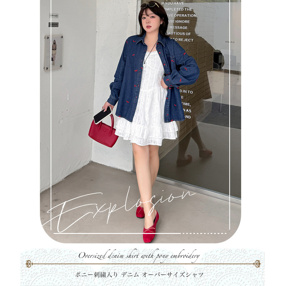 赤いポニー刺繍とボタンがアクセント!オーバーサイズデニムシャツ sanmaru