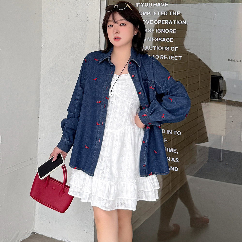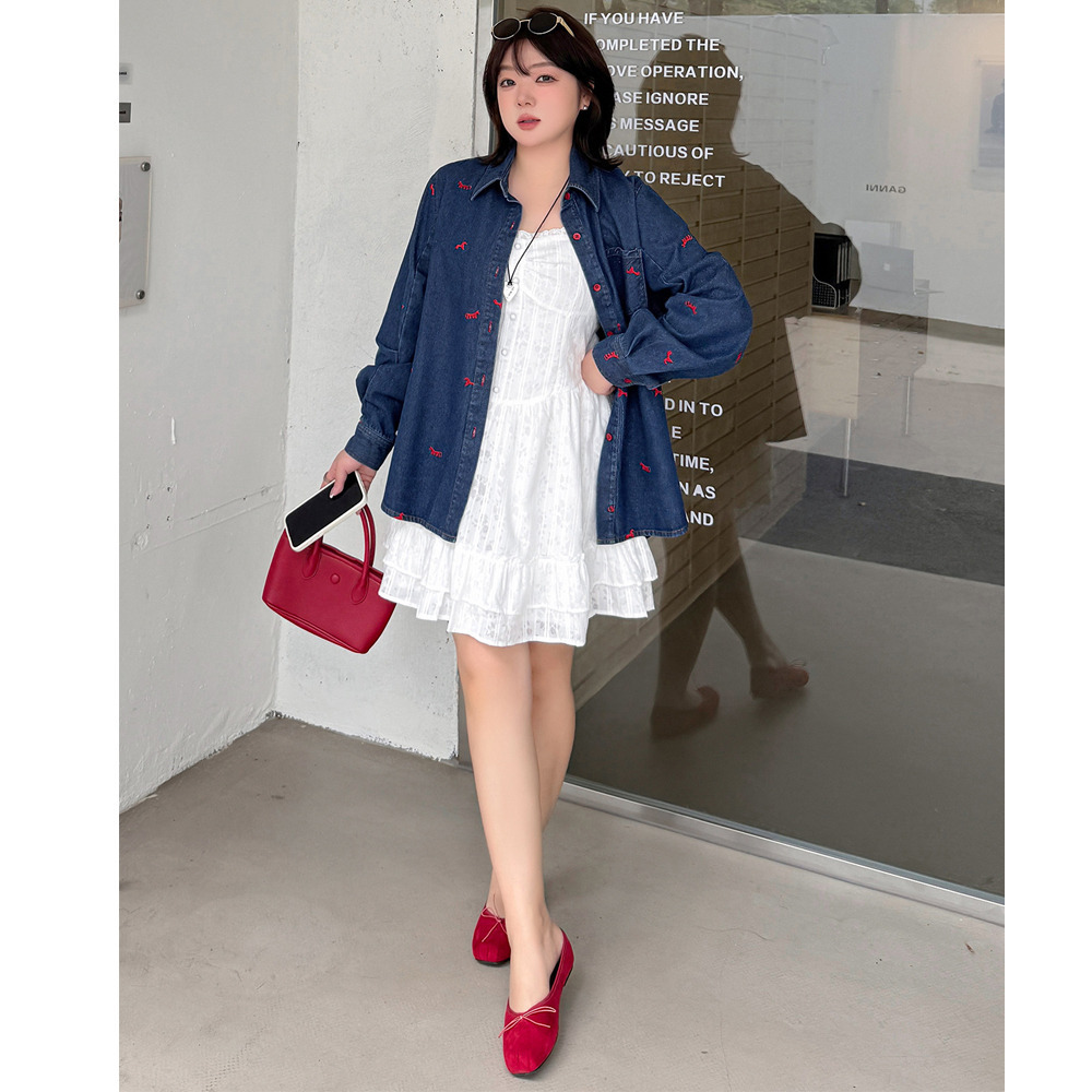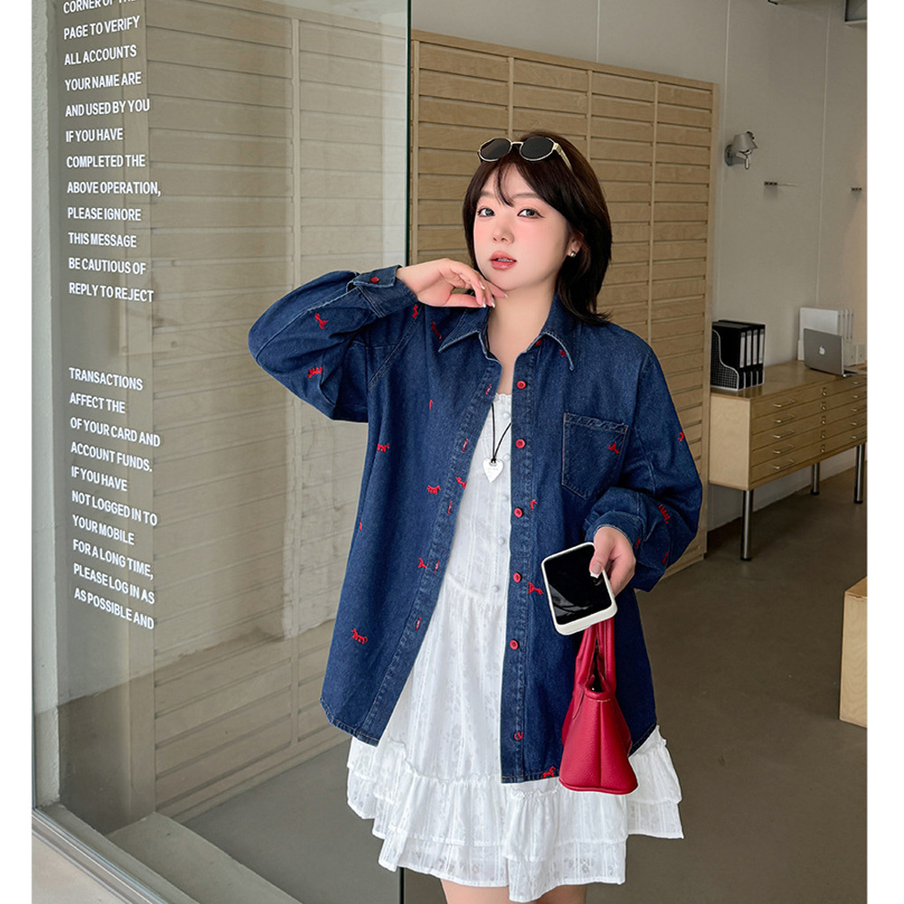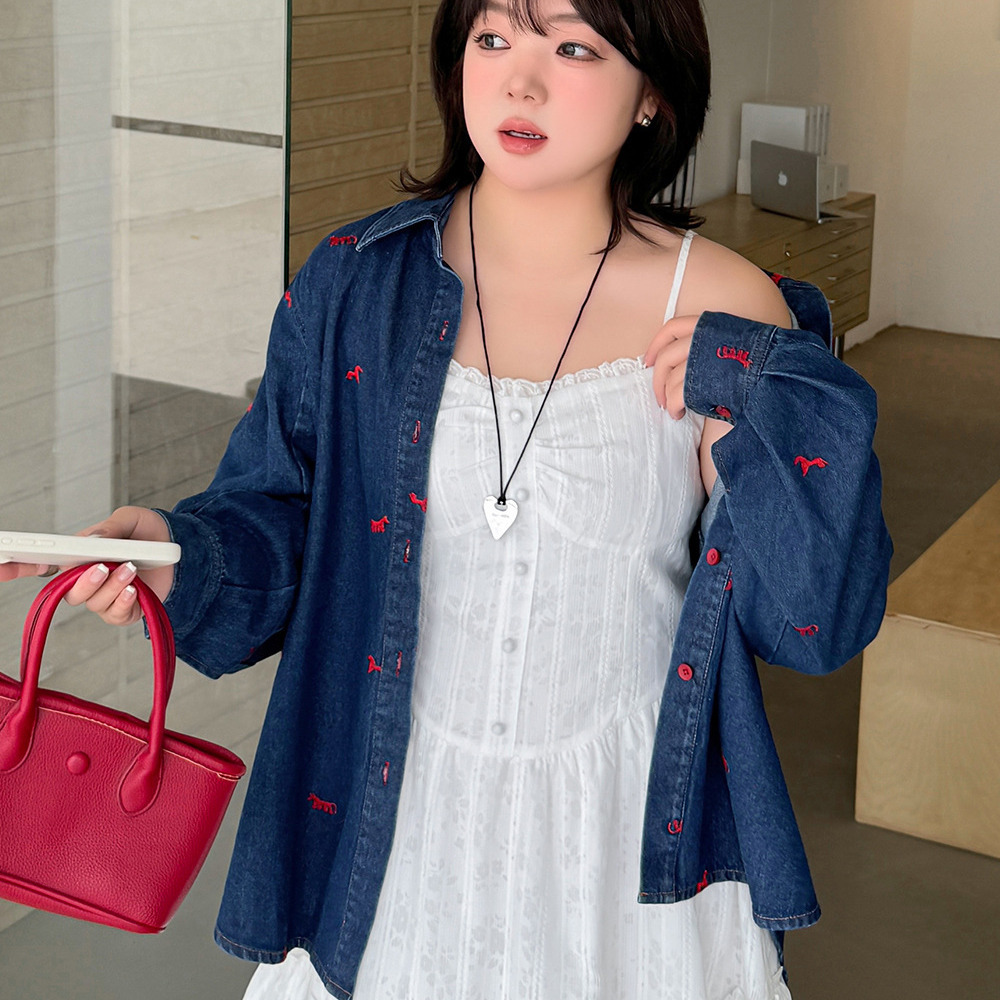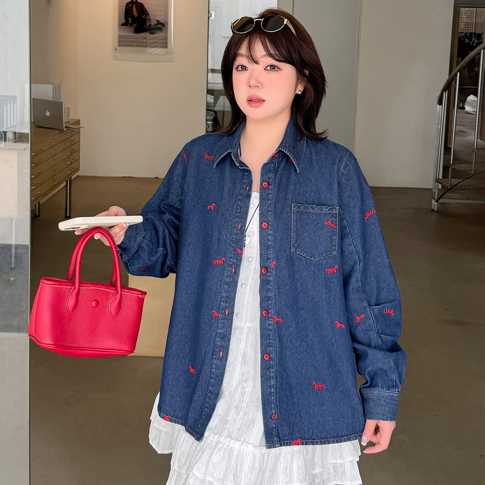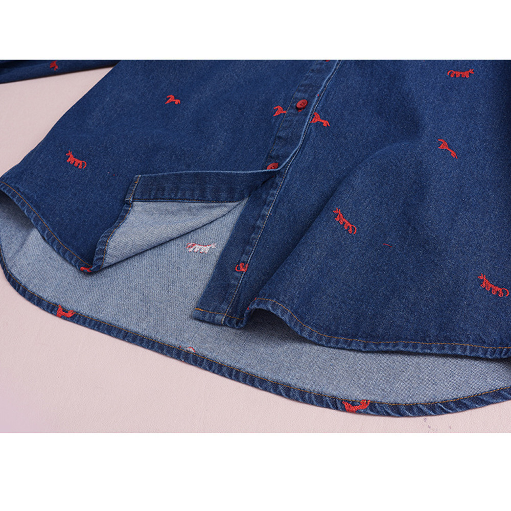 赤いポニー刺繍とボタンがアクセント!オーバーサイズデニムシャツ sanmaru