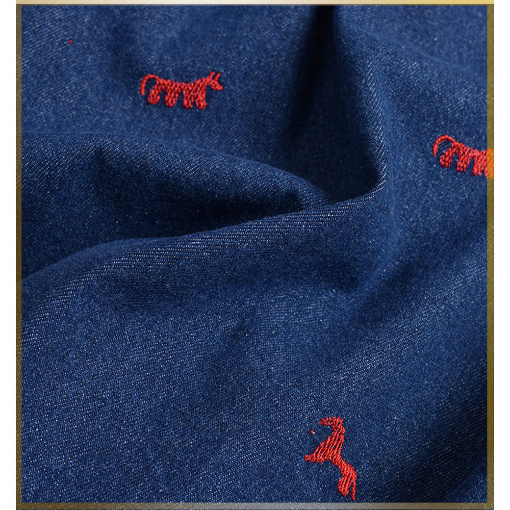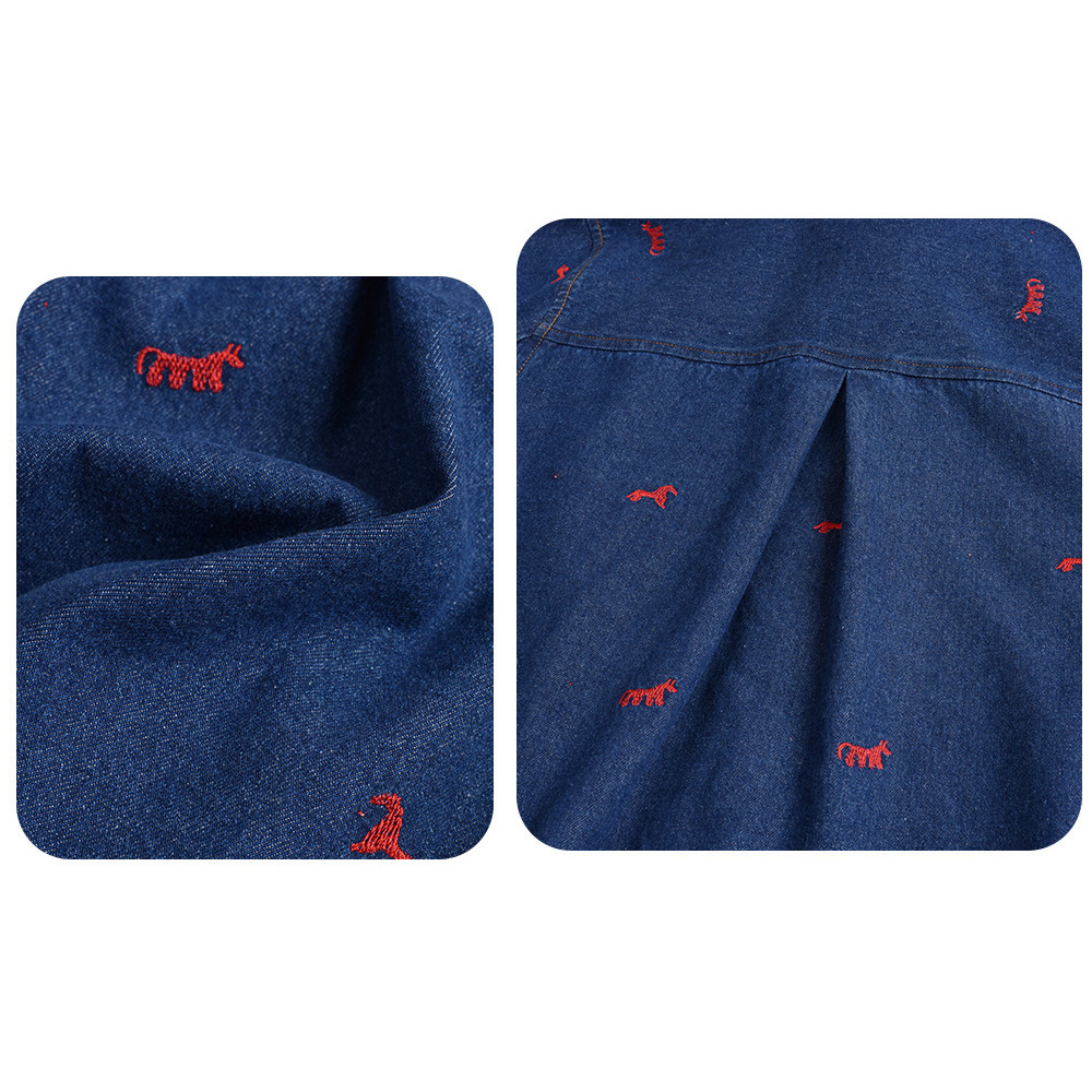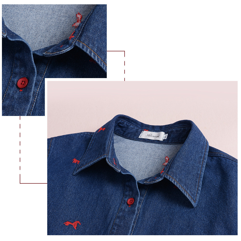 遊び心のあるポニーの刺繍入りデニムシャツ。