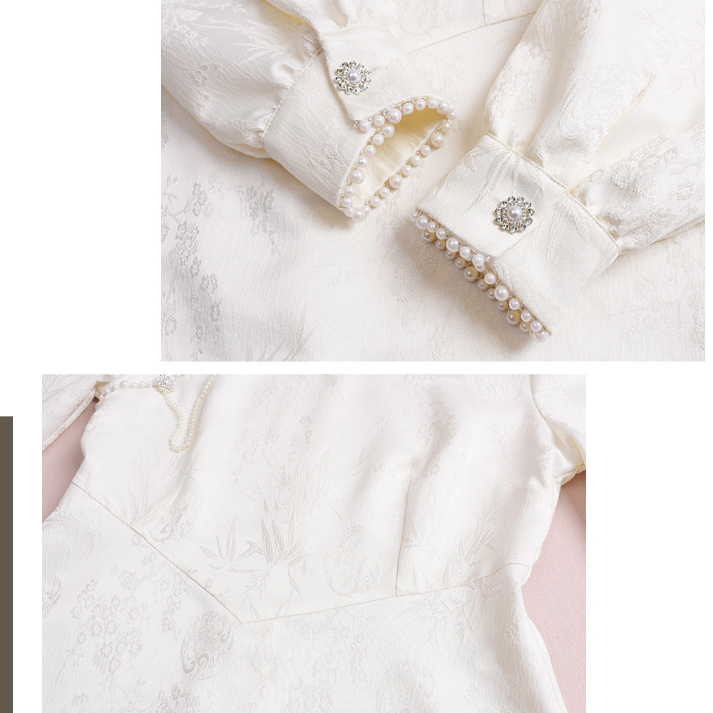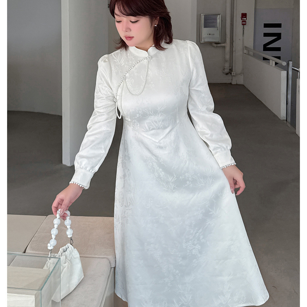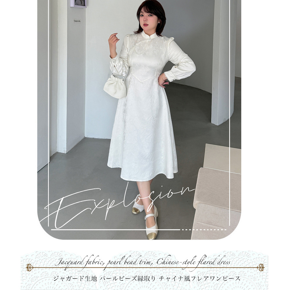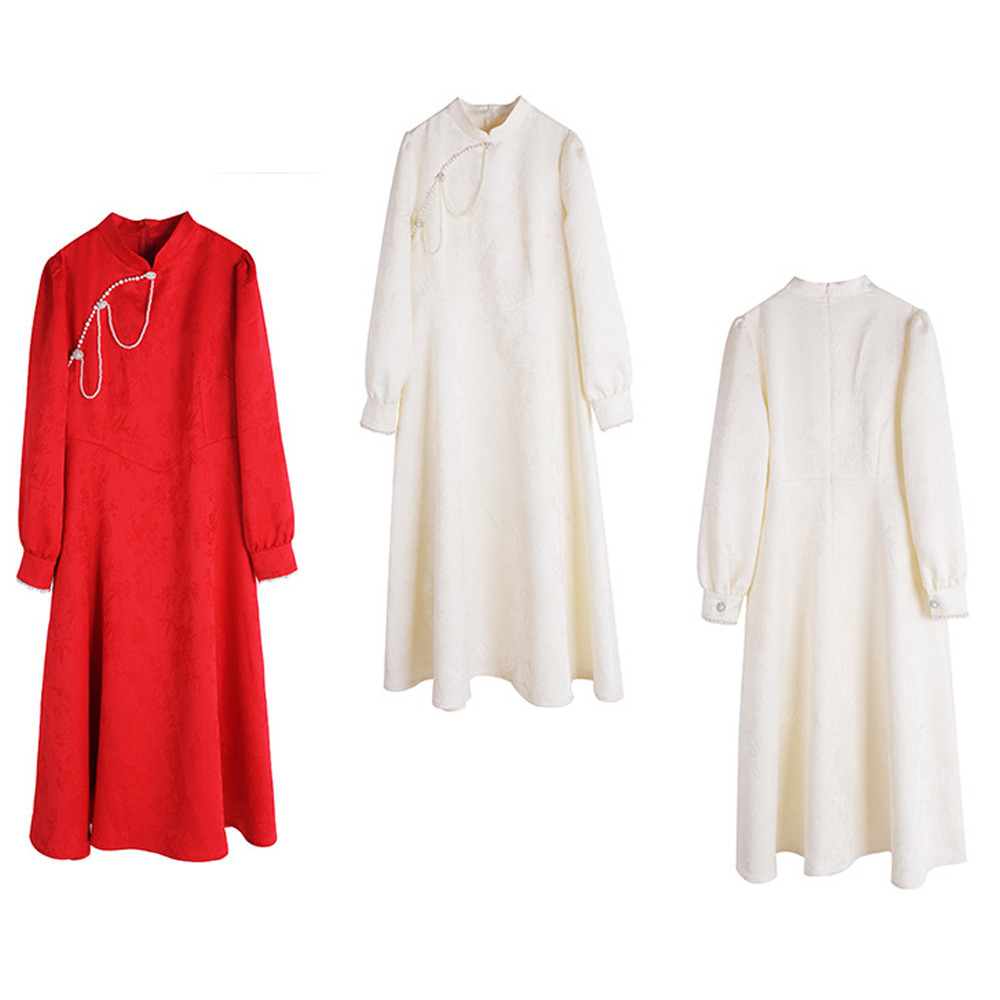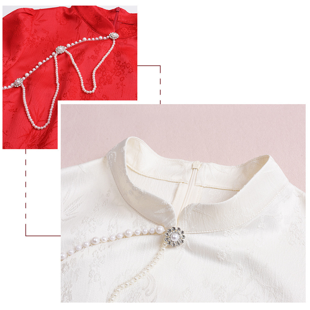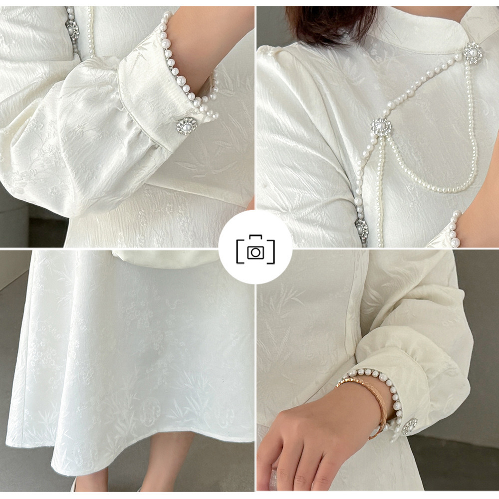 古典柄ジャガード生地にパールビーズ縁取りのチャイナ風ワンピース sanmaru