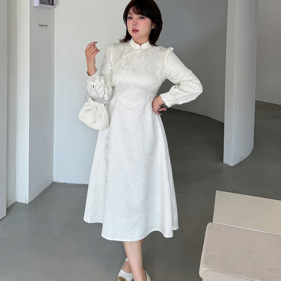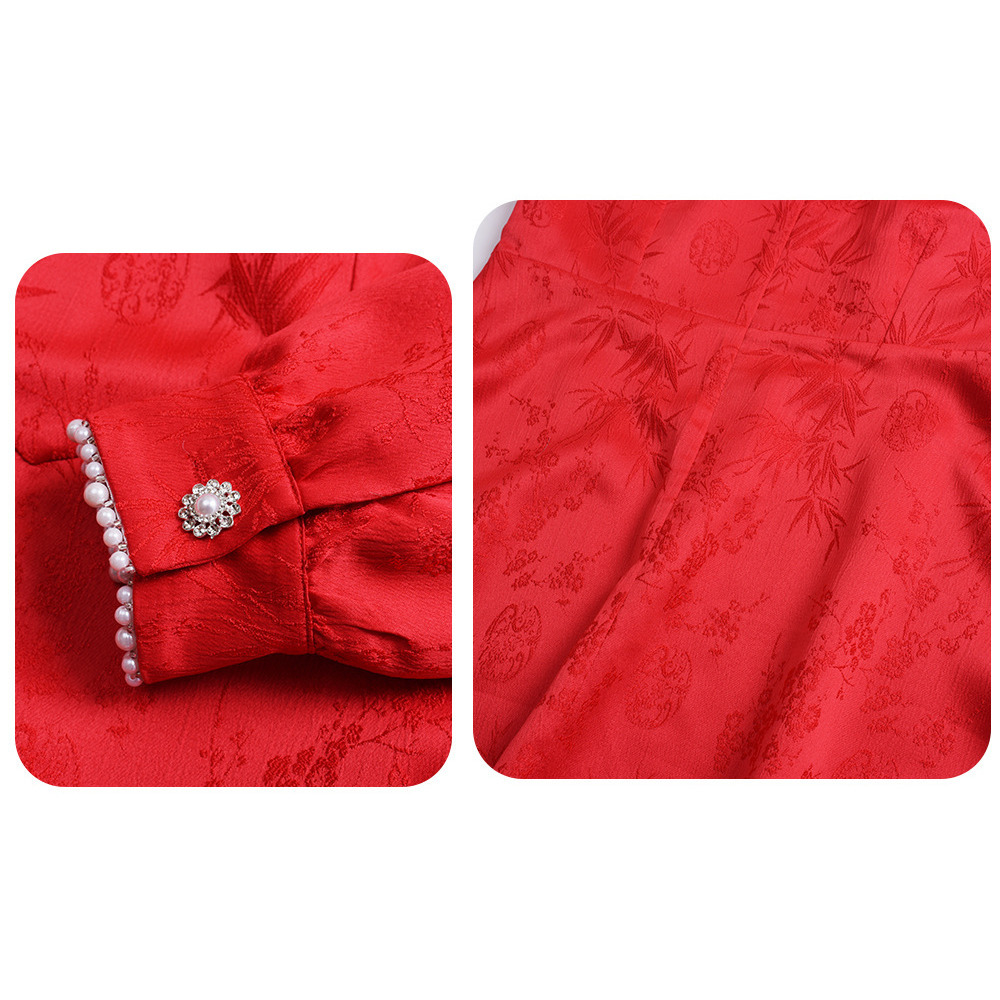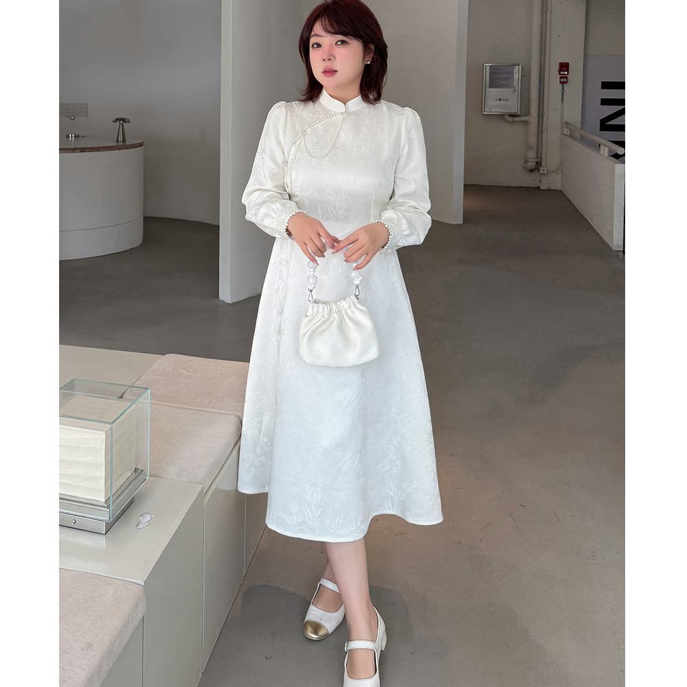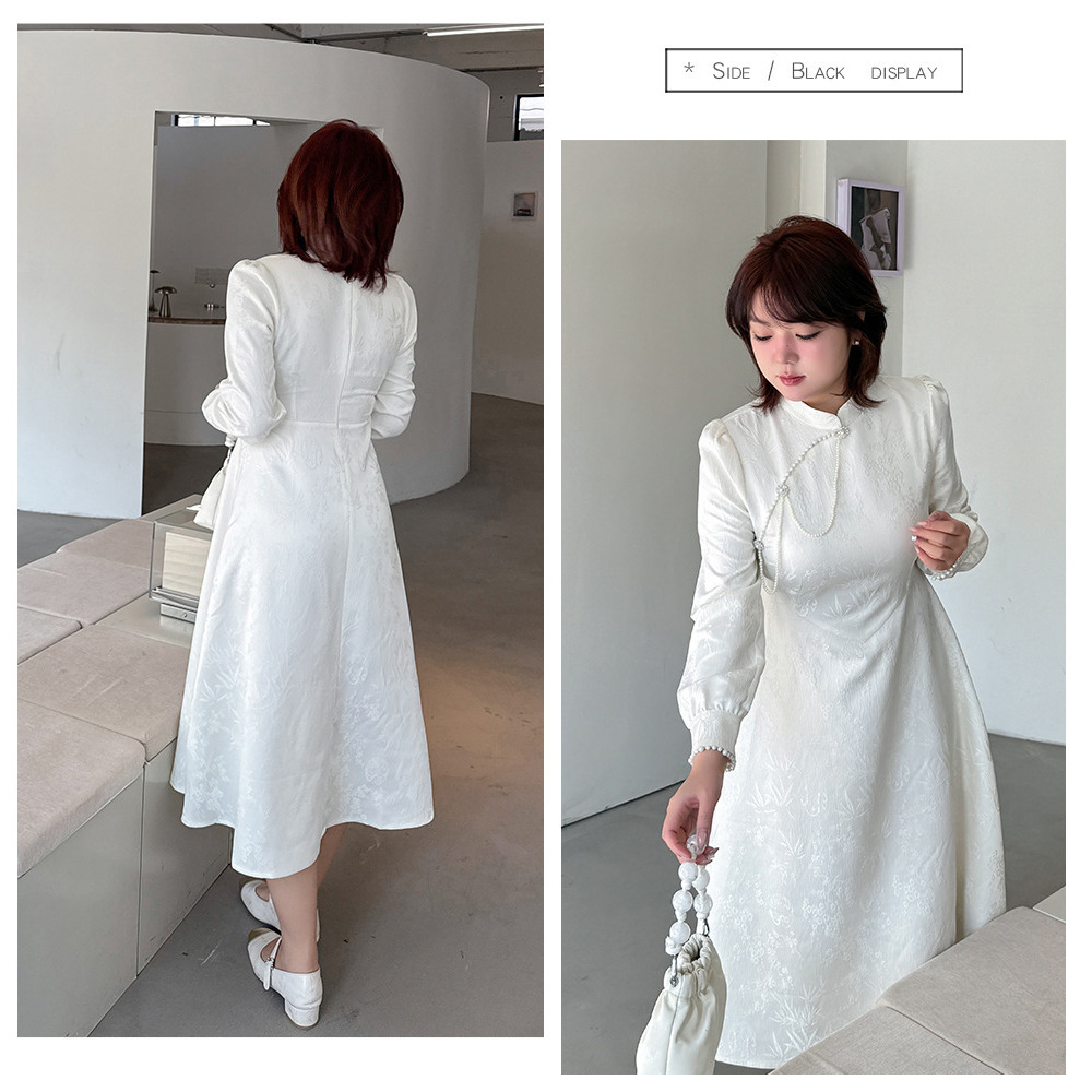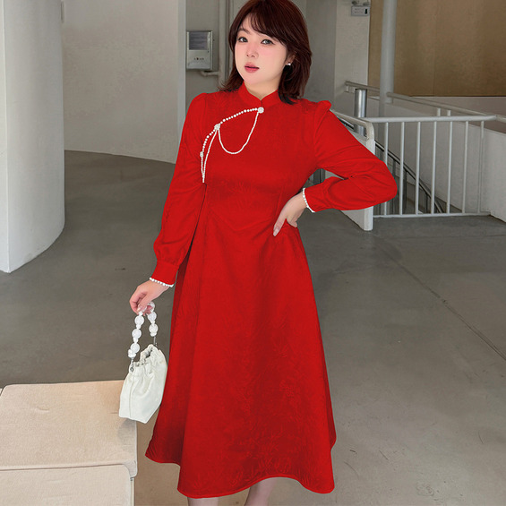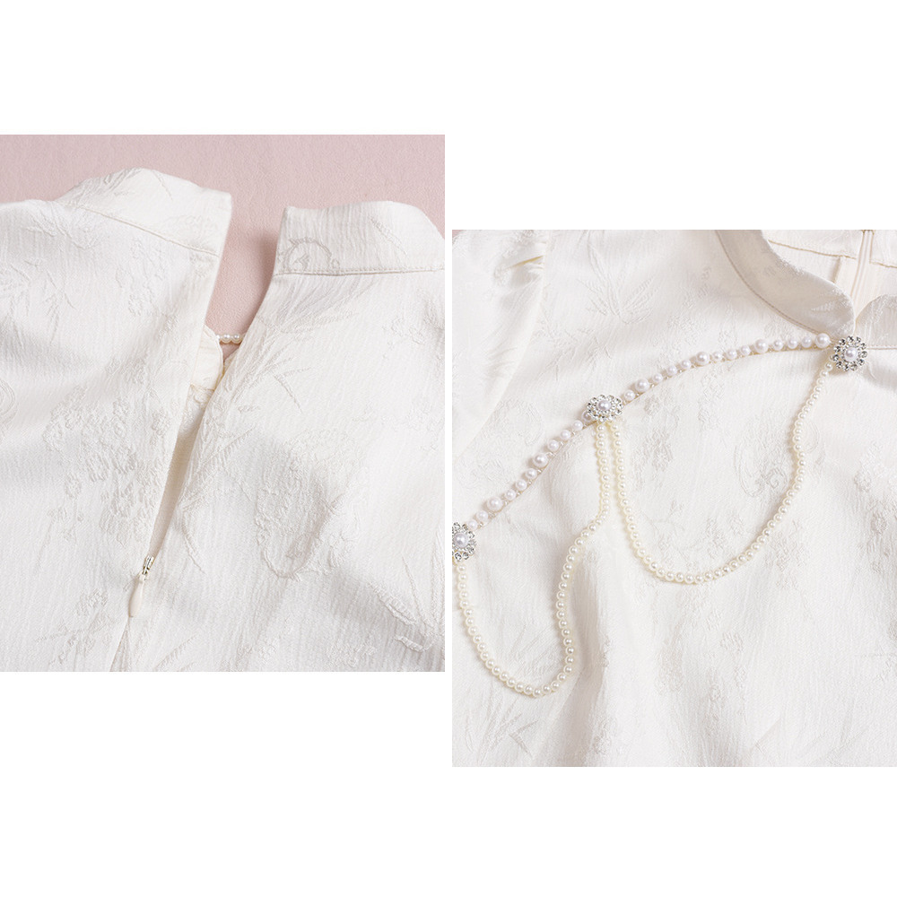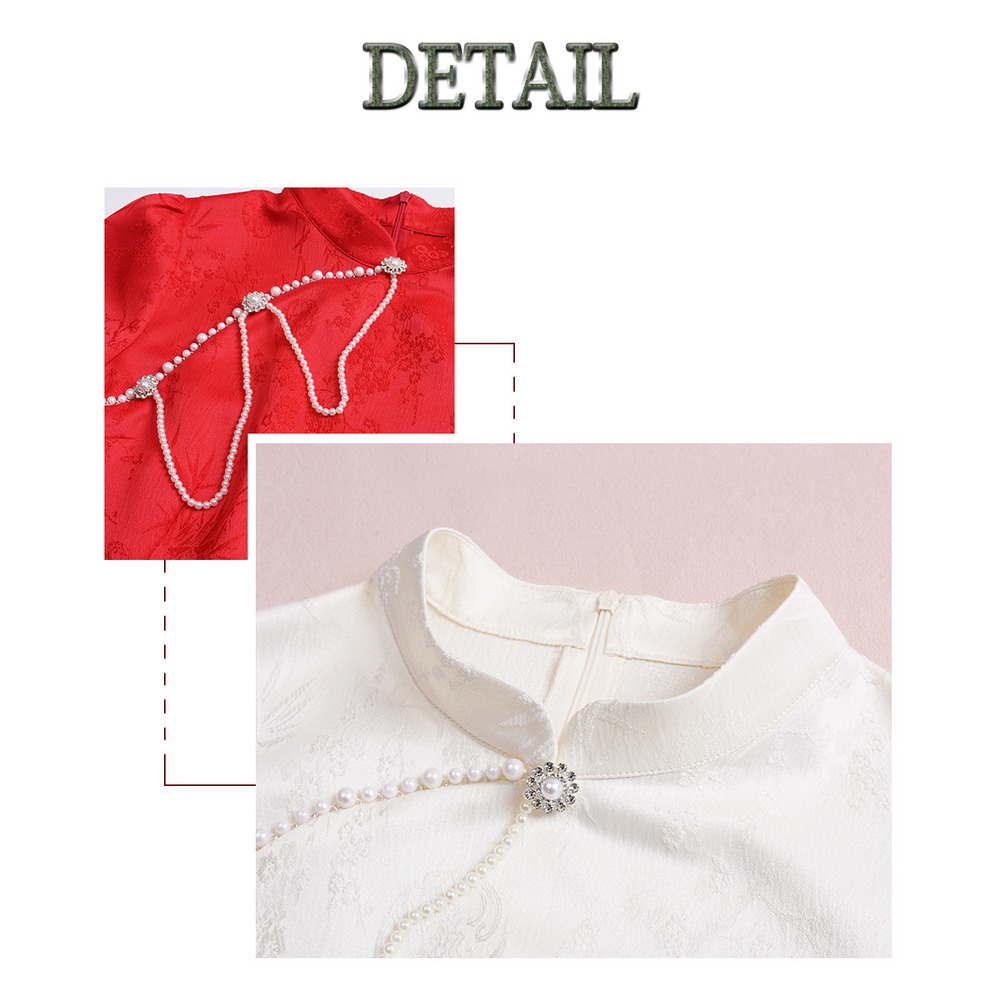 古典柄ジャガード生地にパールビーズ縁取りのチャイナ風ワンピース sanmaru