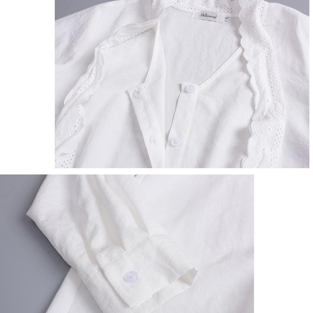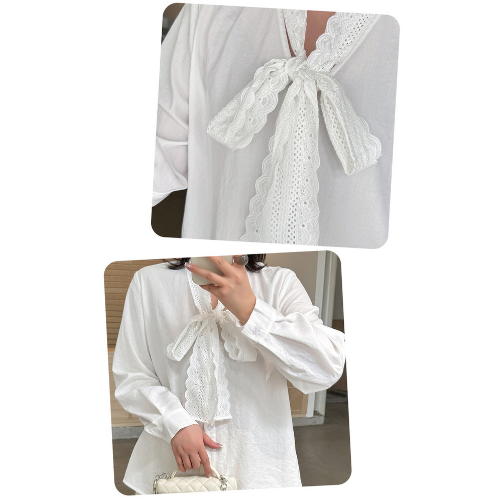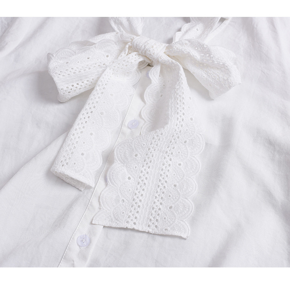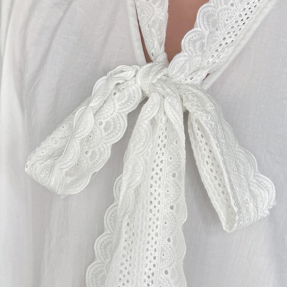 • レースリボンタイ付きVネック ホワイトシャツブラウス sanmaru6