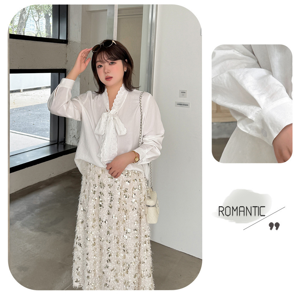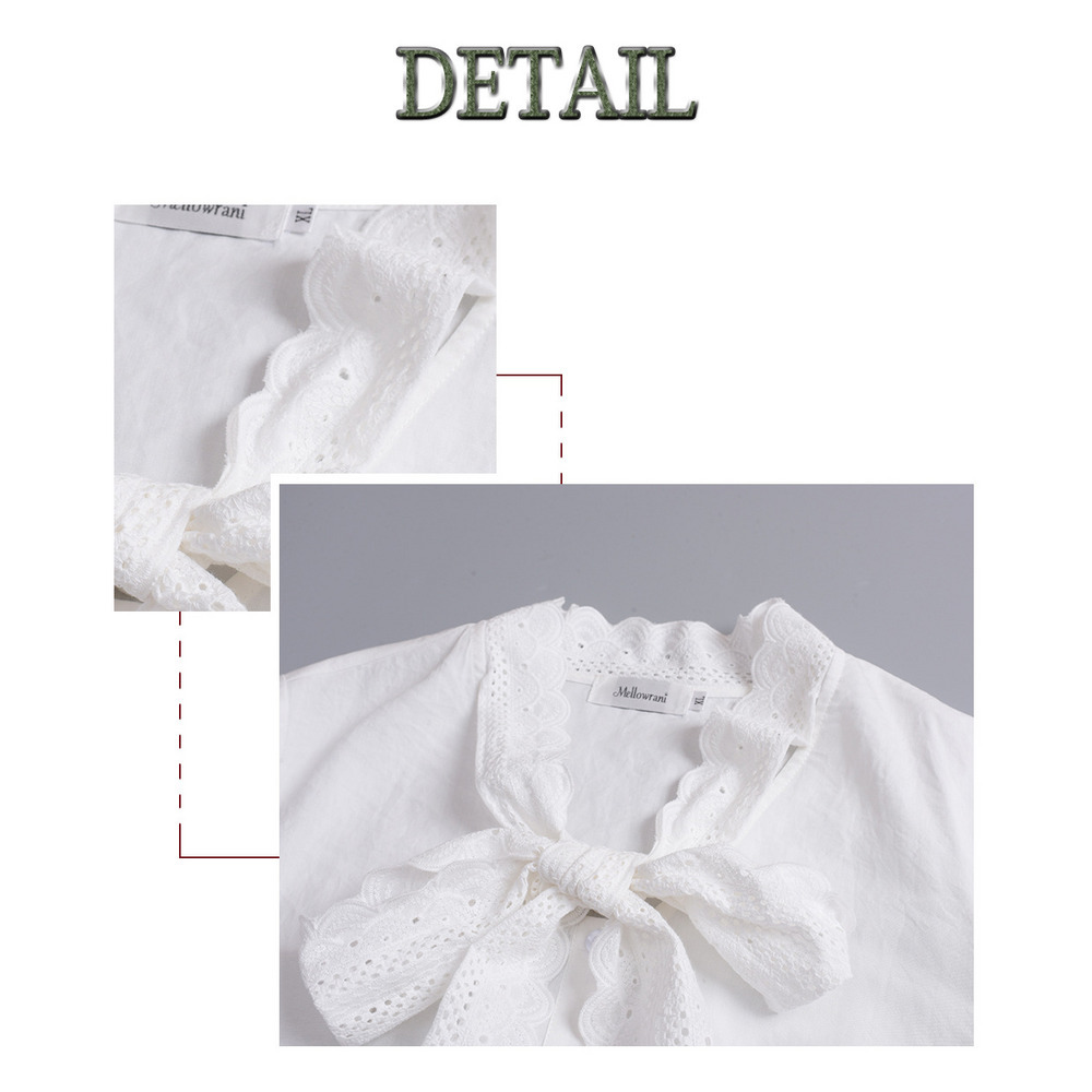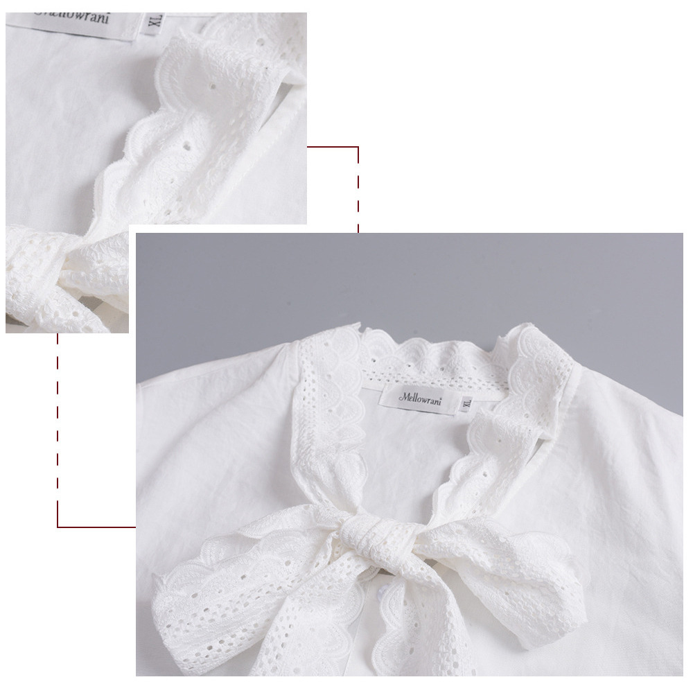 • レースリボンタイ付きVネック ホワイトシャツブラウス sanmaru8