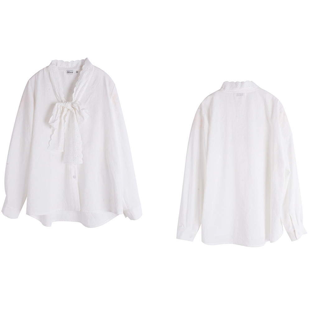 • レースリボンタイ付きVネック ホワイトシャツブラウス sanmaru18
