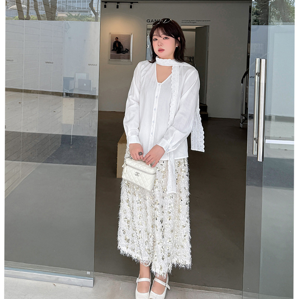 • レースリボンタイ付きVネック ホワイトシャツブラウス sanmaru7