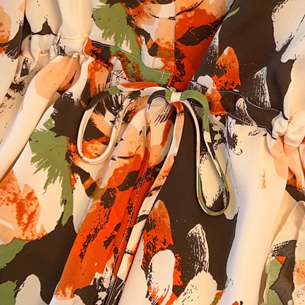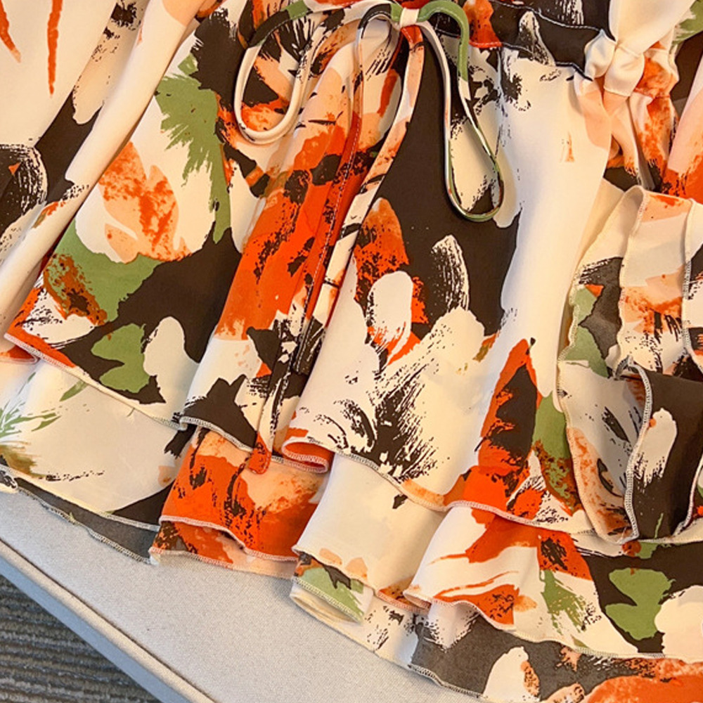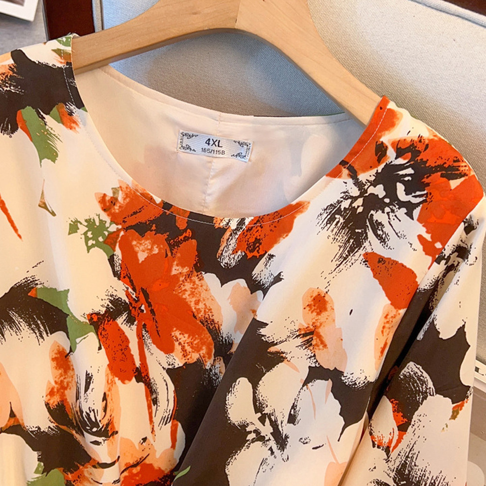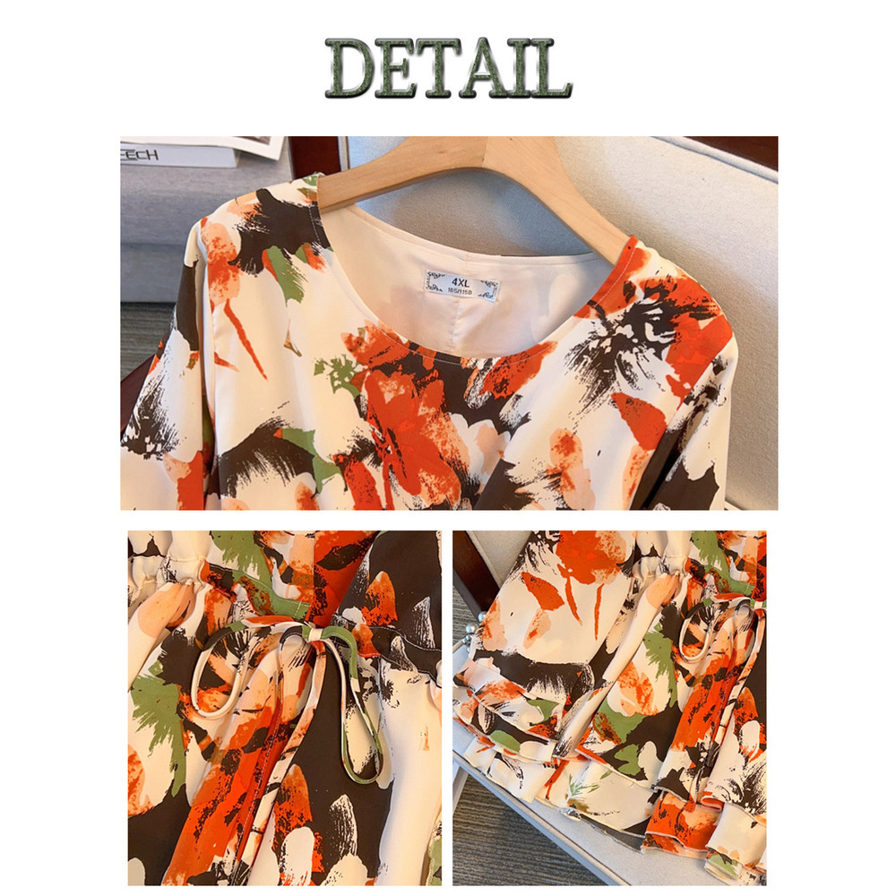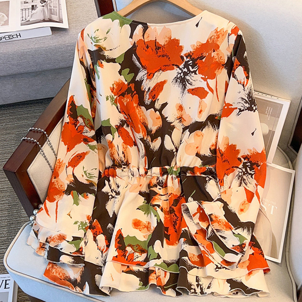 サイズが豊富!印象画風花柄. 裾ダブルフリル プルオーバーブラウス sanmaru