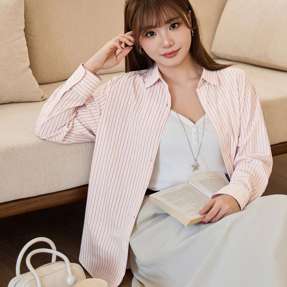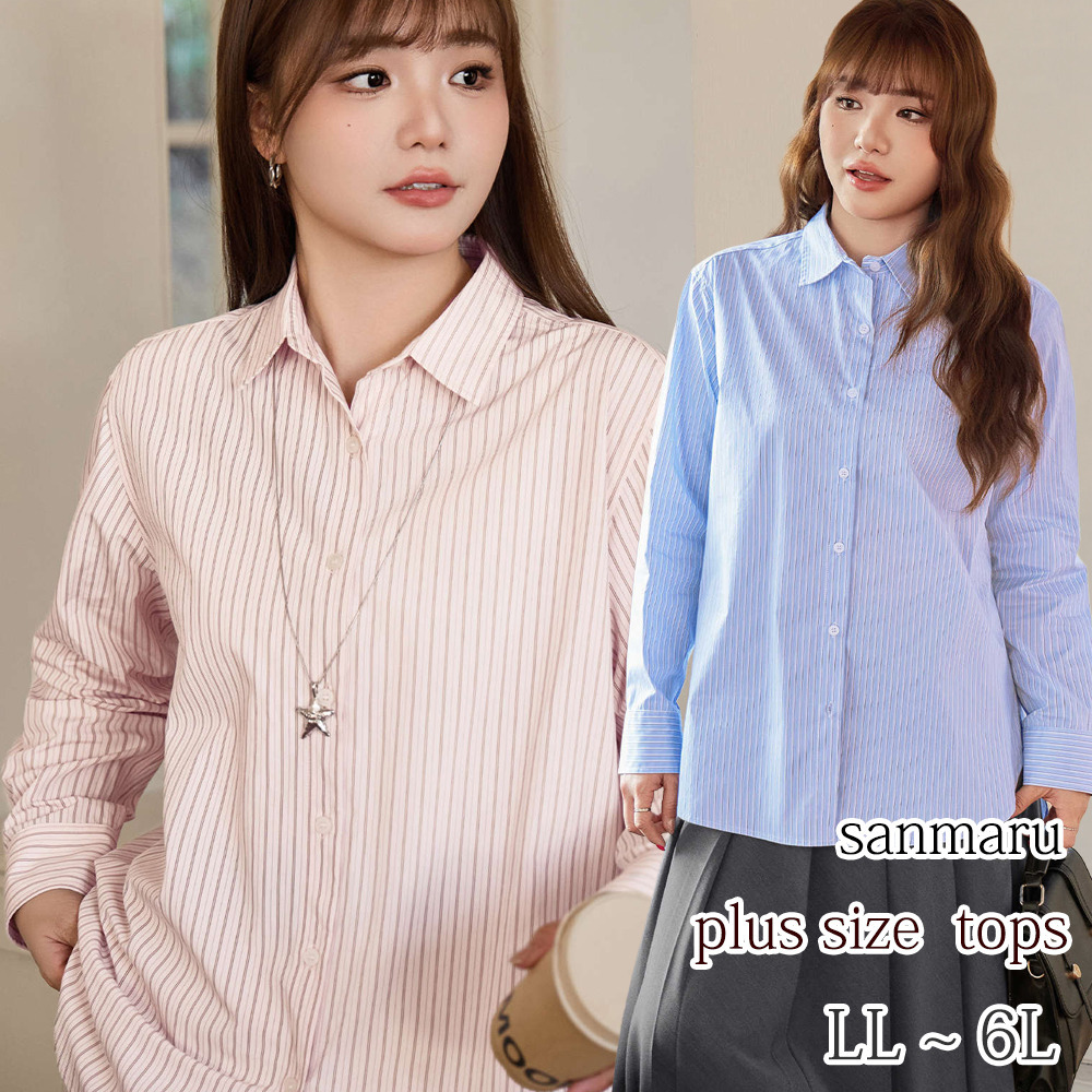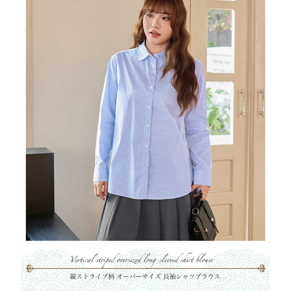 トラッドテイストな縦ストライプ柄オーバーサイズシャツブラウス sanmaru