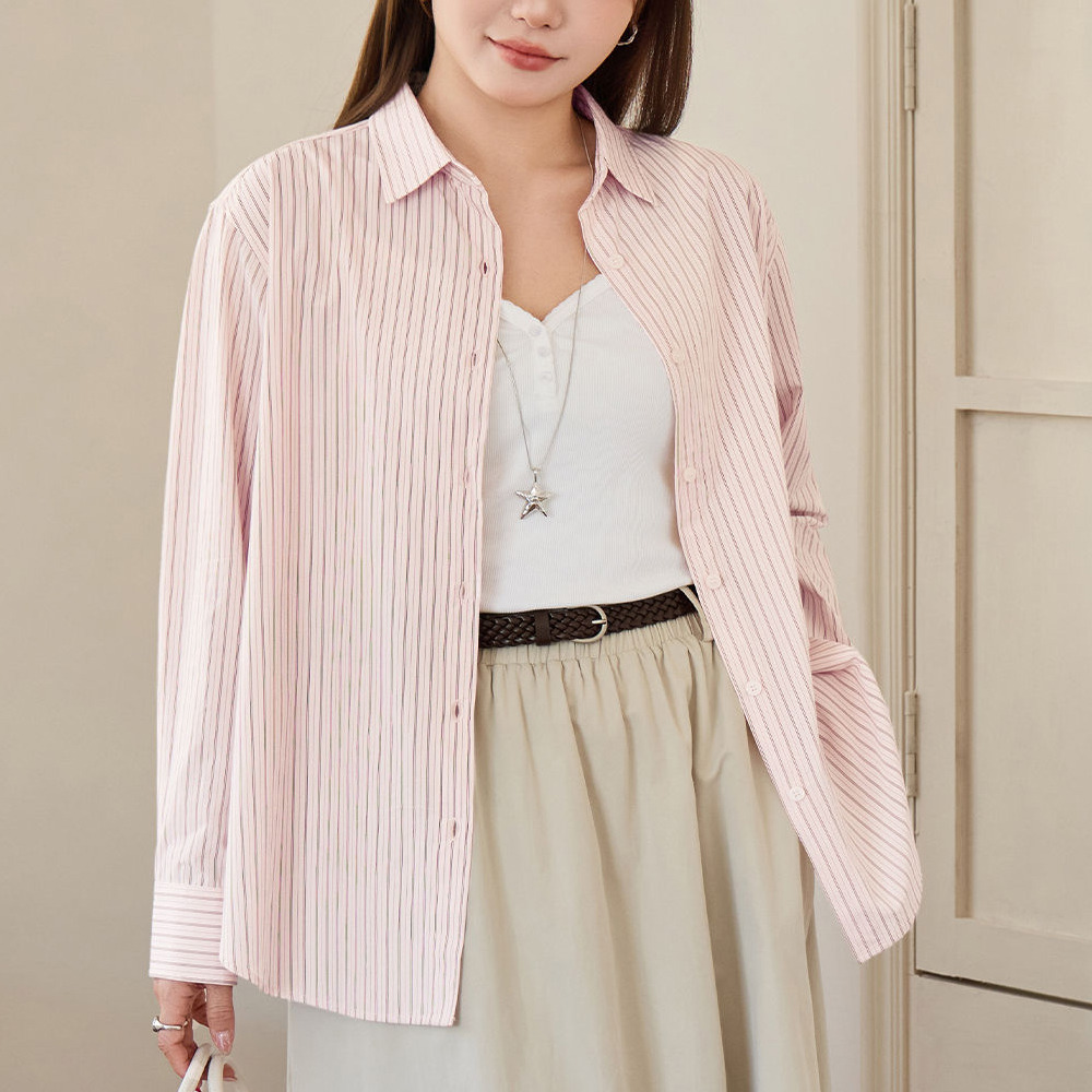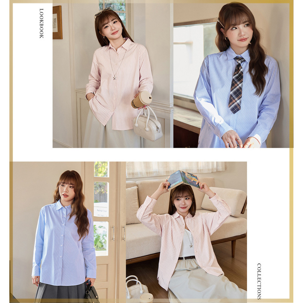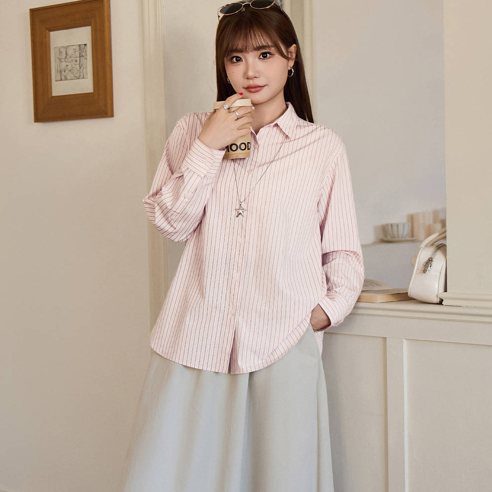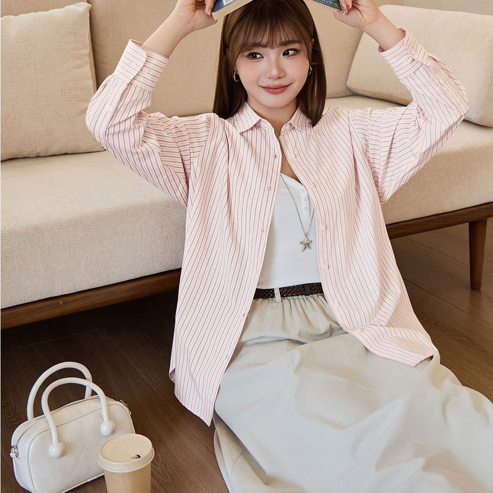 トラッドテイストな縦ストライプ柄オーバーサイズシャツブラウス sanmaru