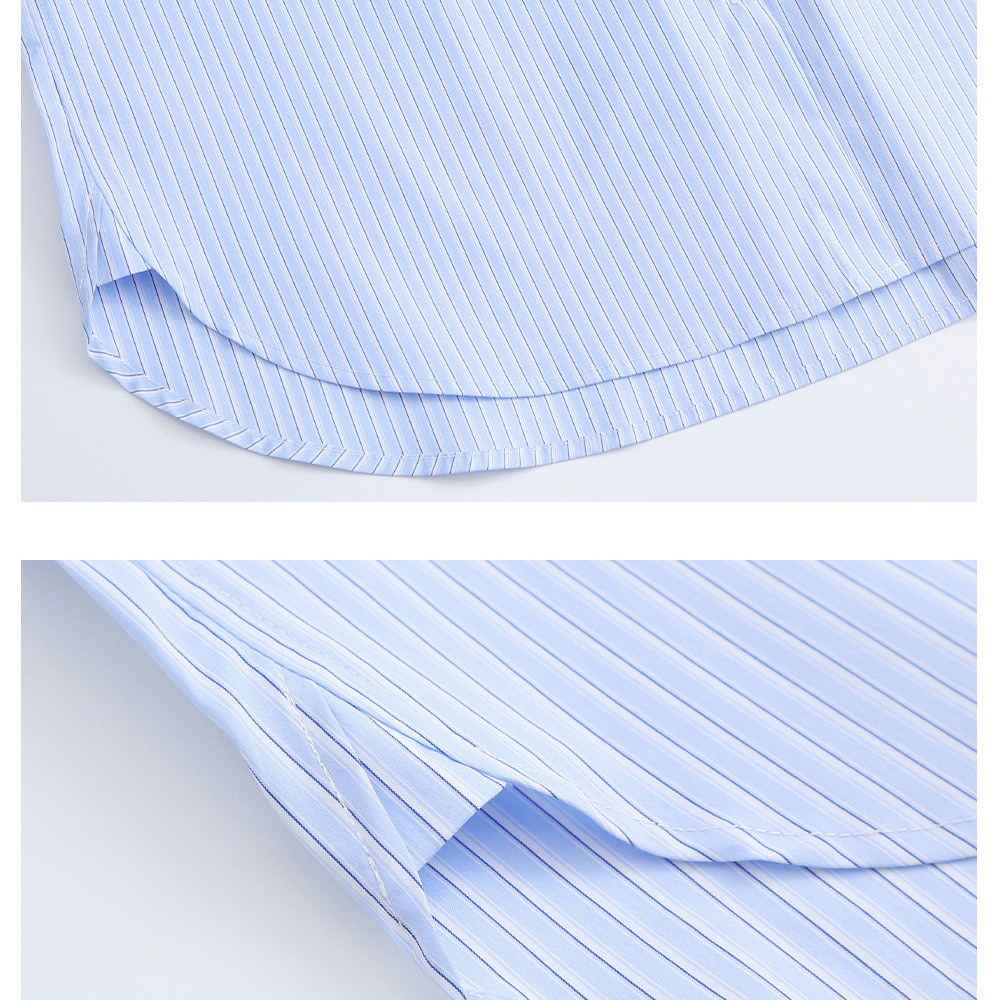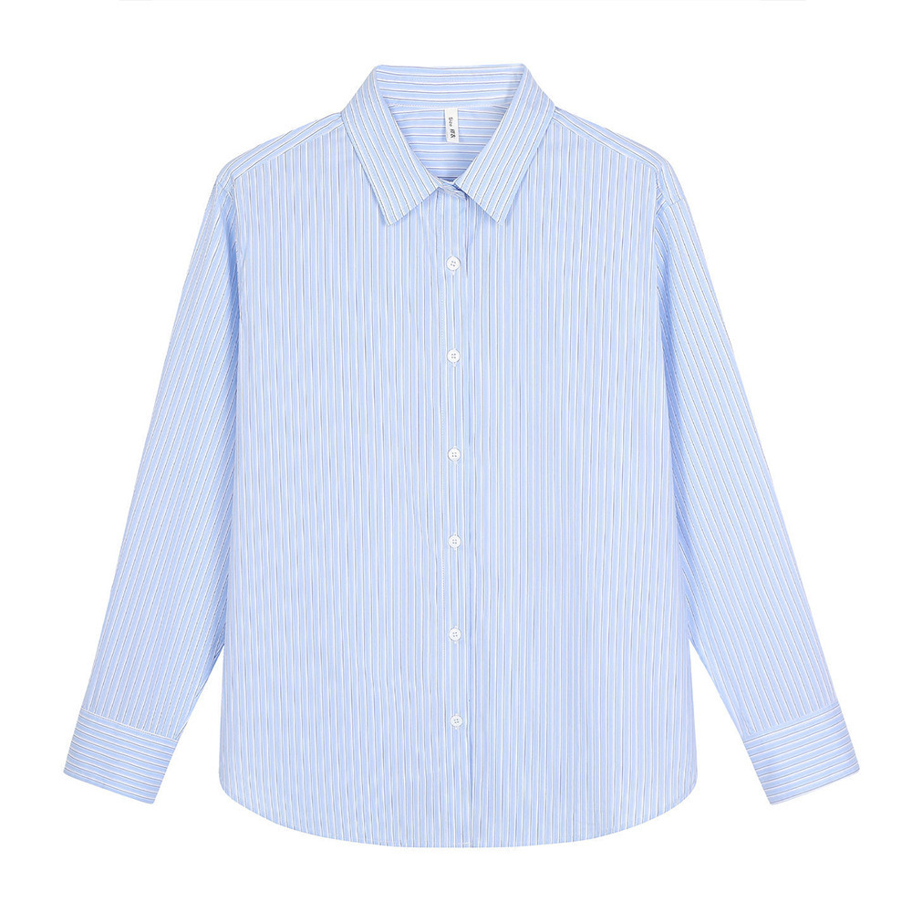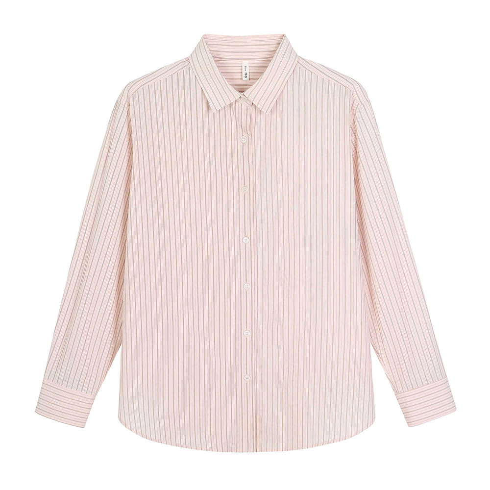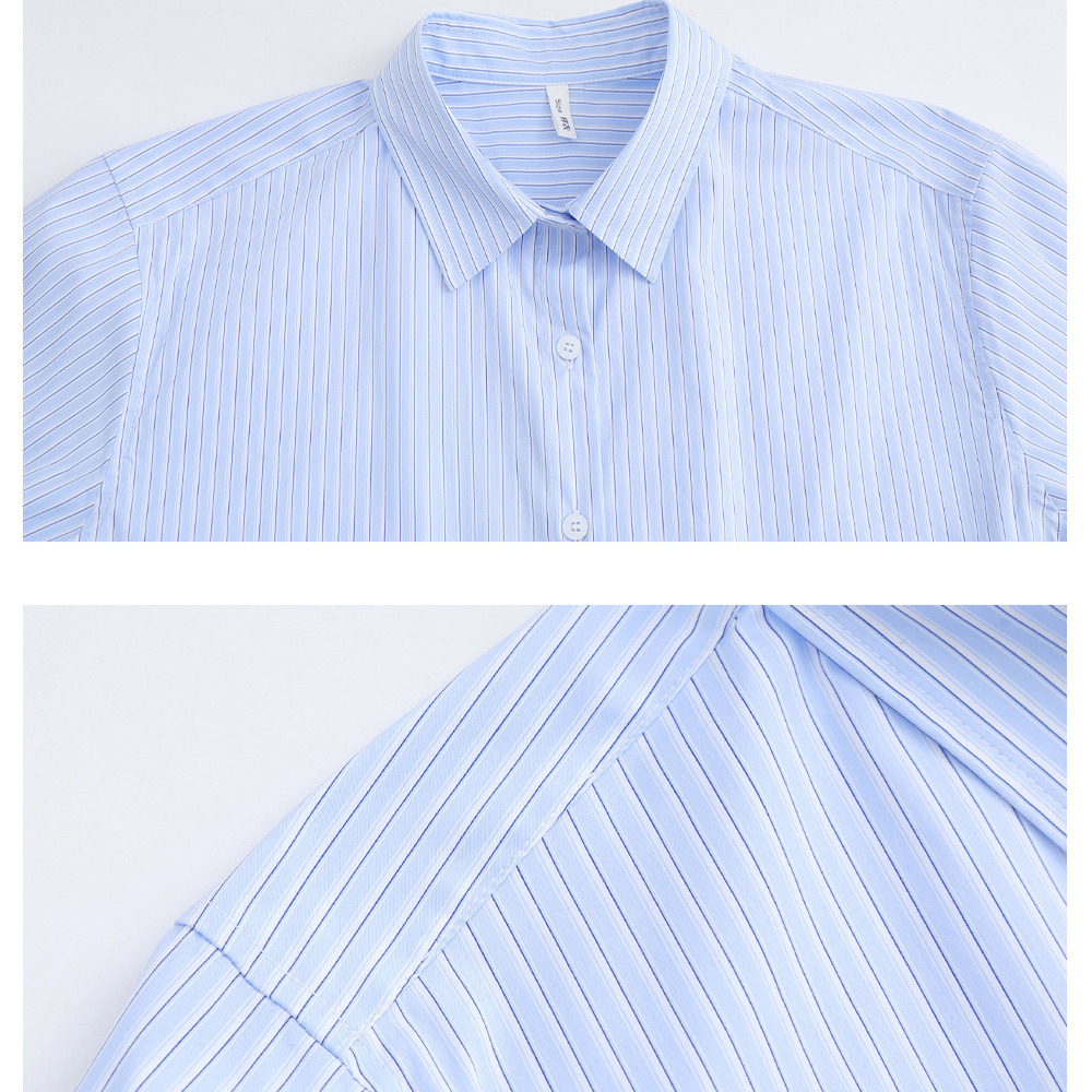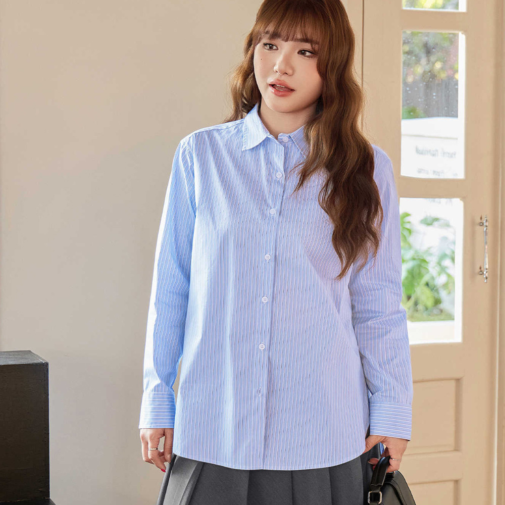 トラッドライクな縦ストライプ柄のシャツブラウス。
