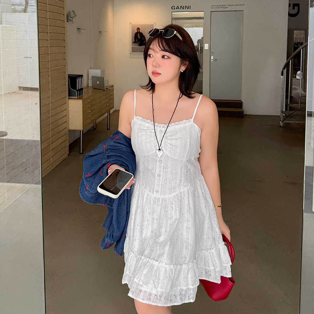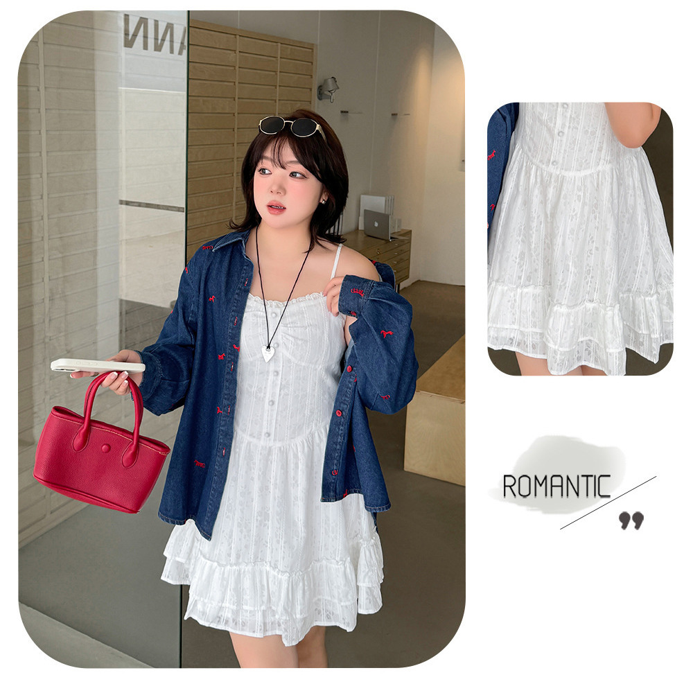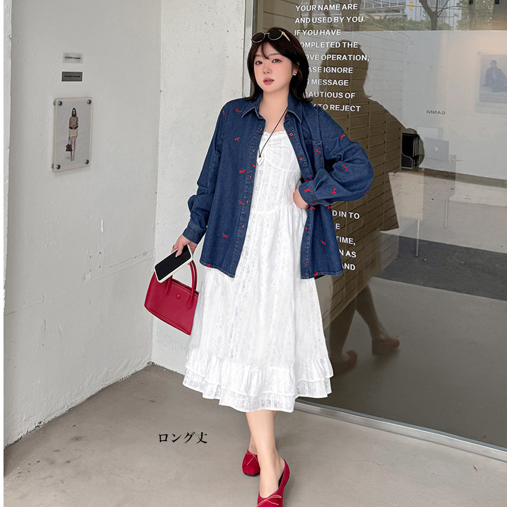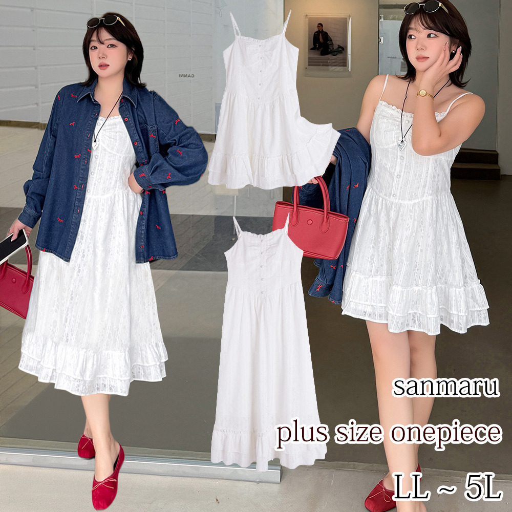 ◆大きいサイズのジャガードレース肩紐ワンピースの詳細