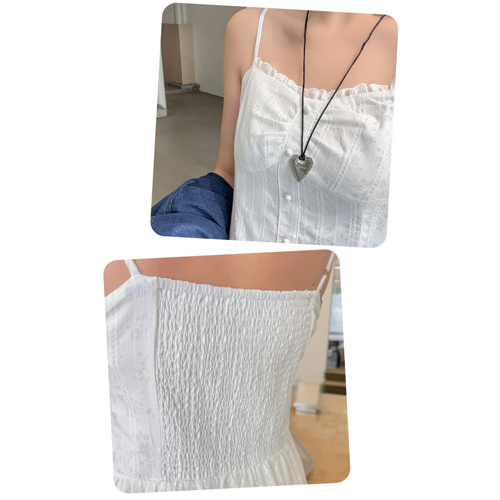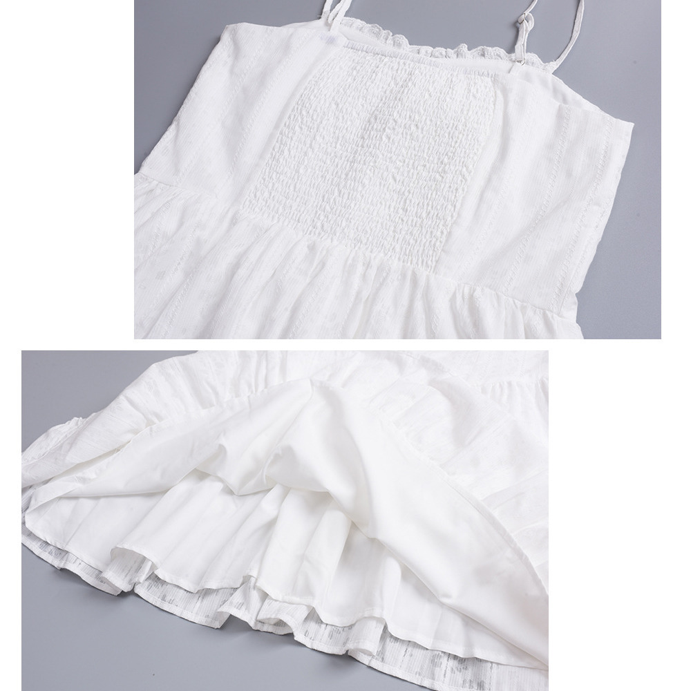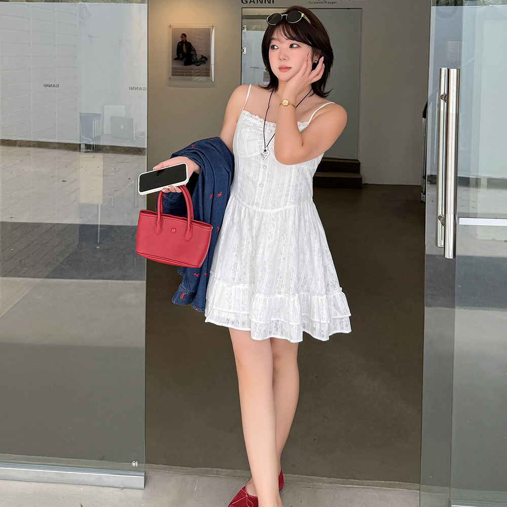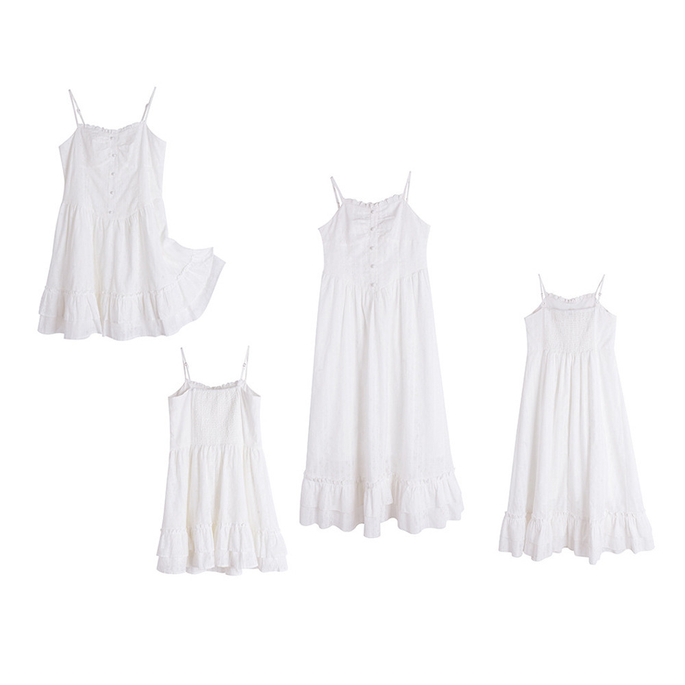 ショート丈とロング丈の2タイプ ジャガードレース肩紐ワンピース