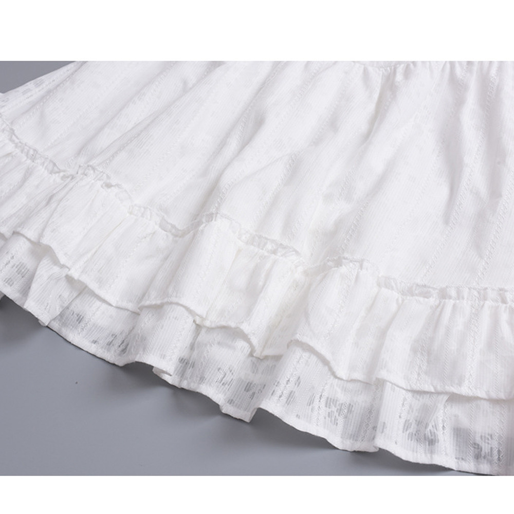 胸はレースリボンで縁取り、裾はダブルフリルで大人可愛いデザイン。