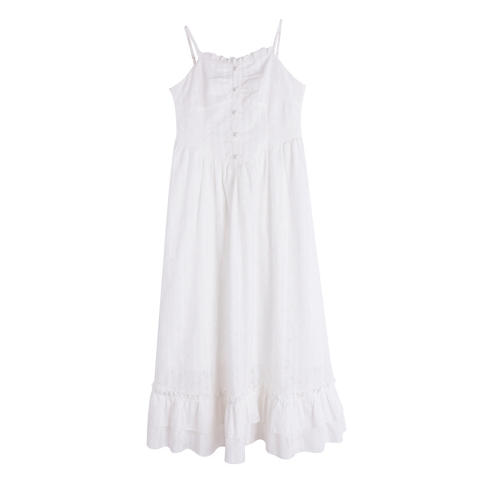 フレンチスタイルのガーリーテイスト肩紐ワンピース。