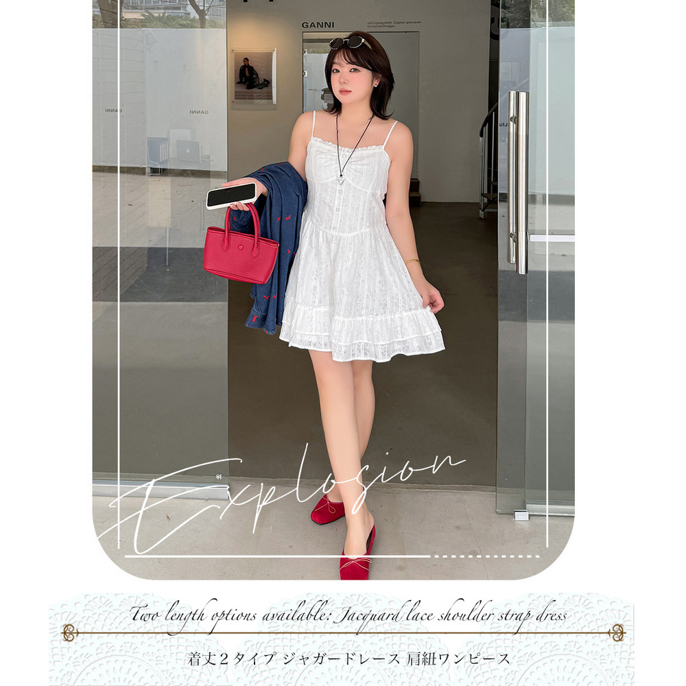 「着丈2タイプ ジャガードレース肩紐ワンピース」