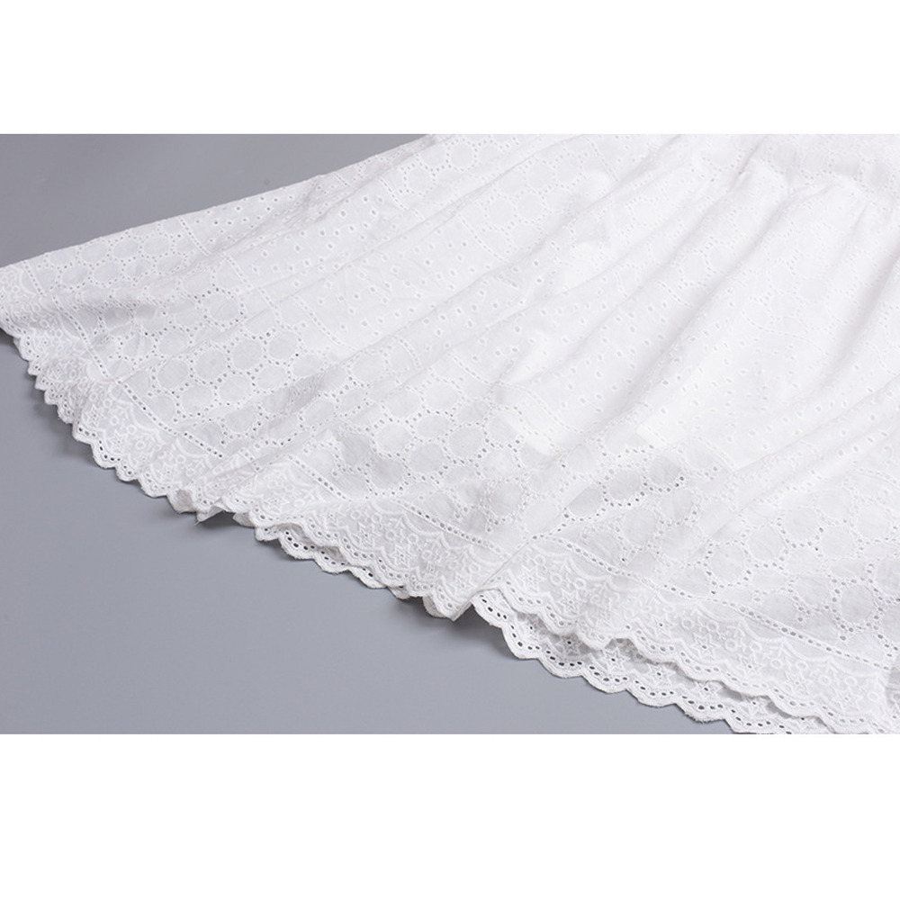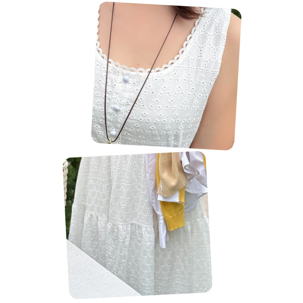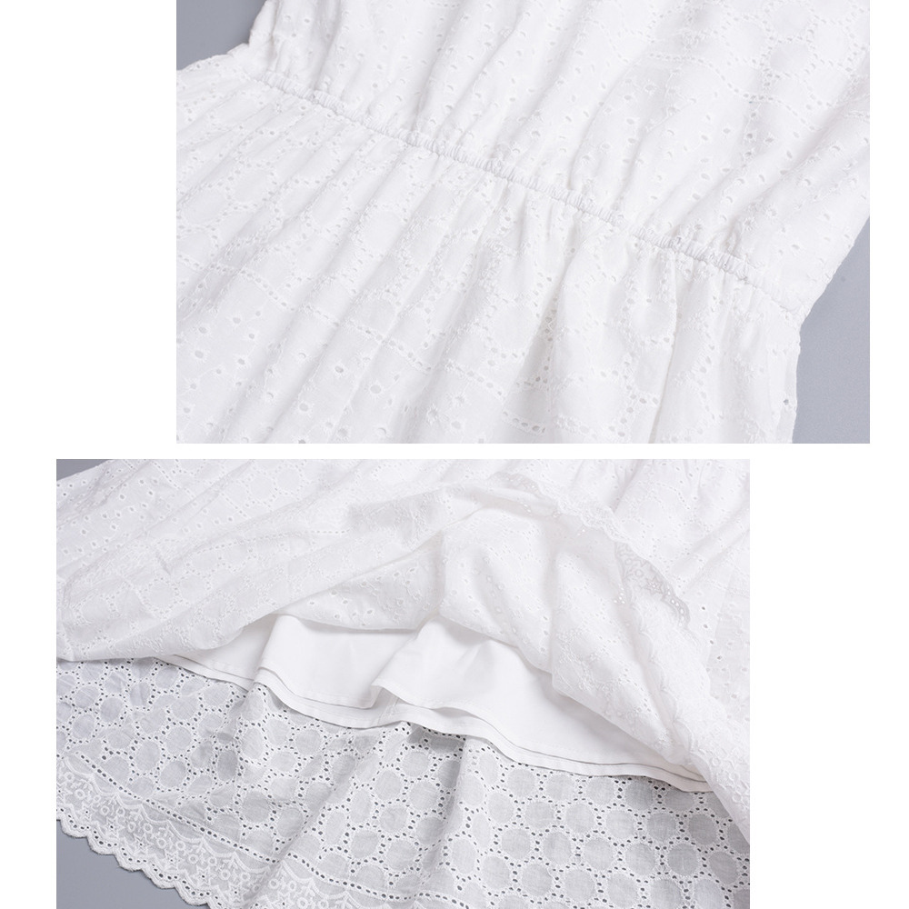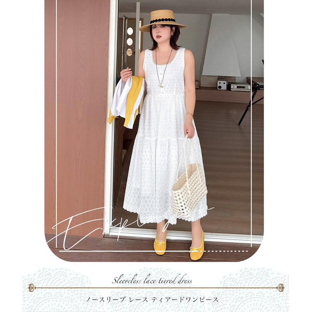 レトロな中空レースのノースリーブ 2段ティアードワンピース