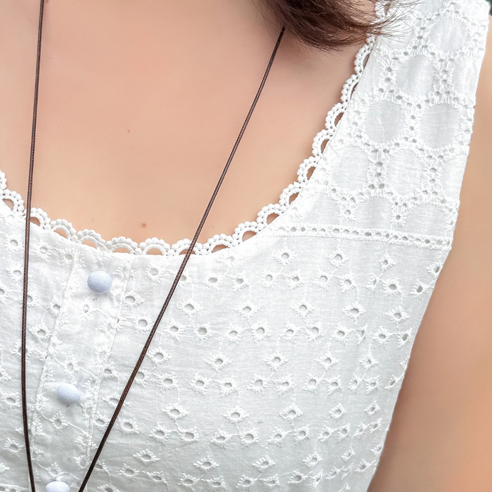 小さなレーストリムがあしらわれたやや深めのUネック。