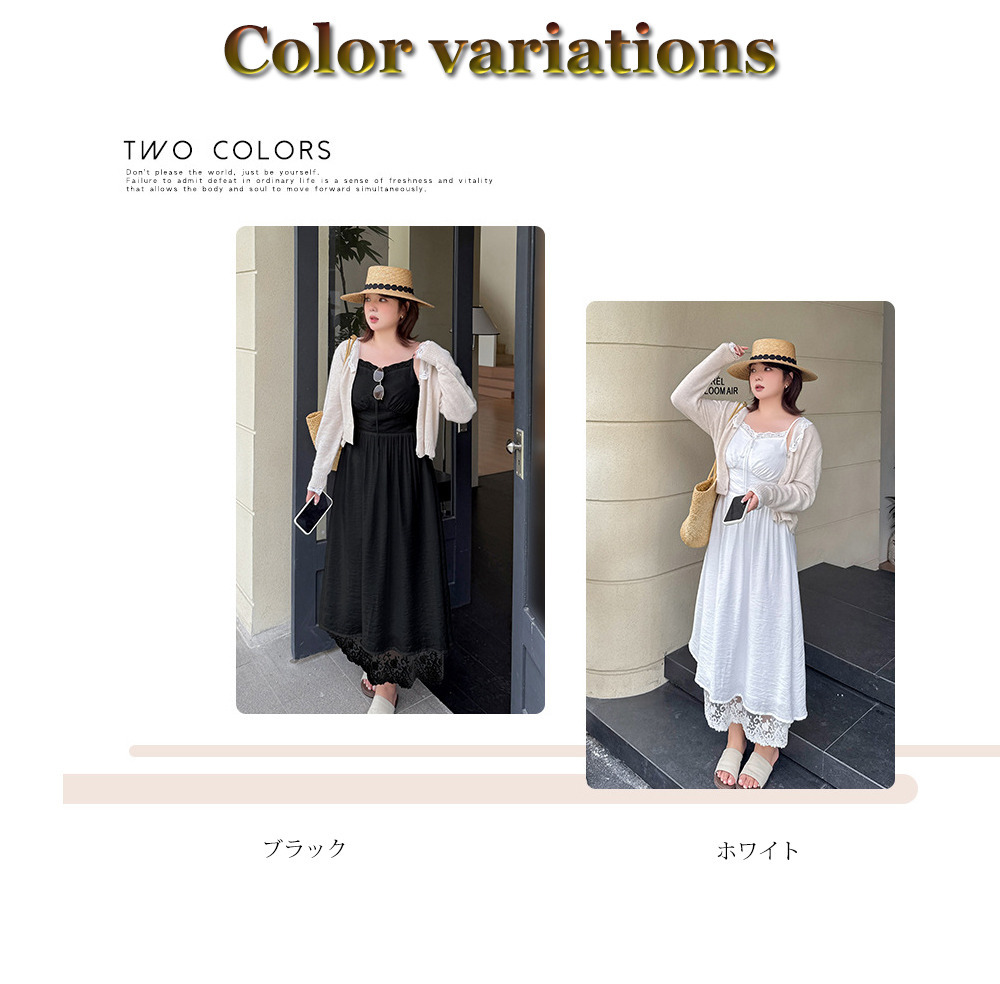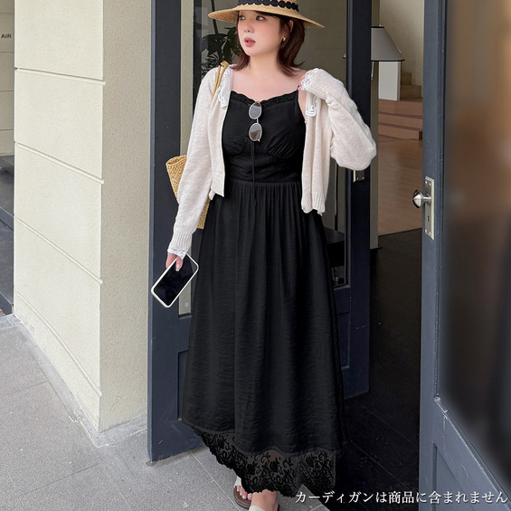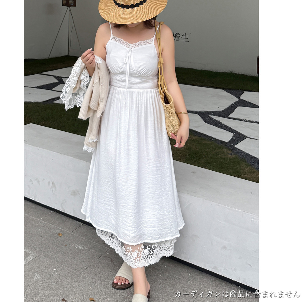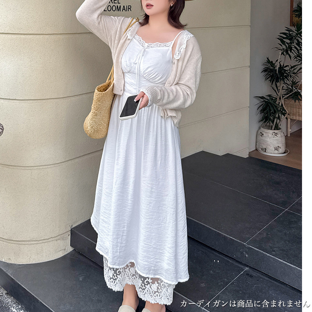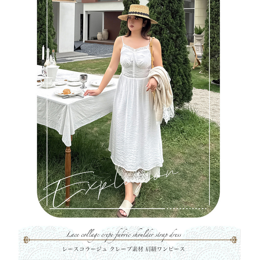 ◆大きいサイズのレースコラージュ肩紐ワンピースの詳細