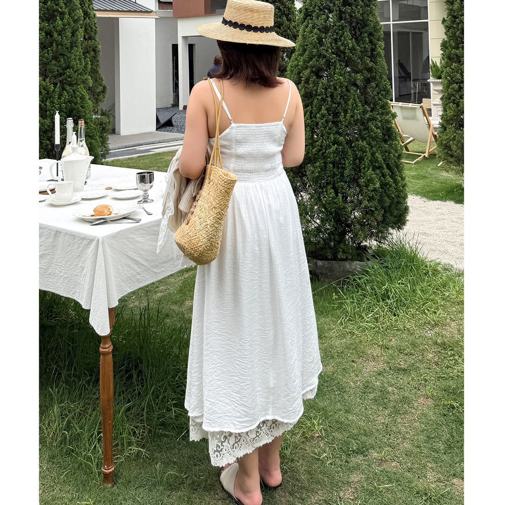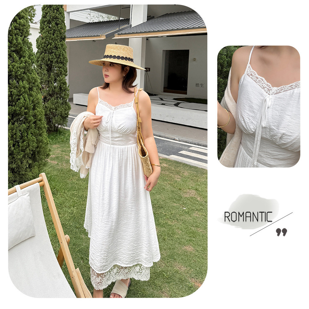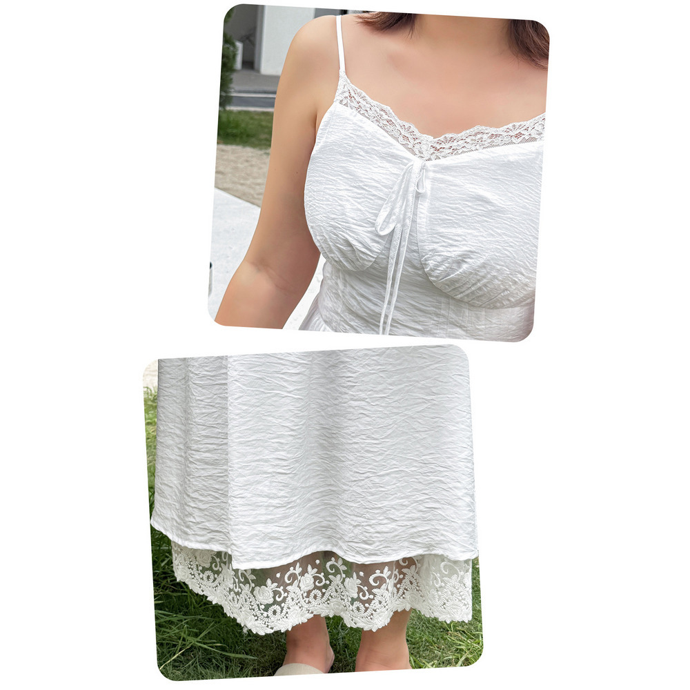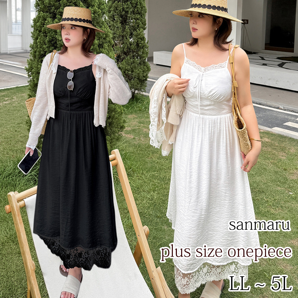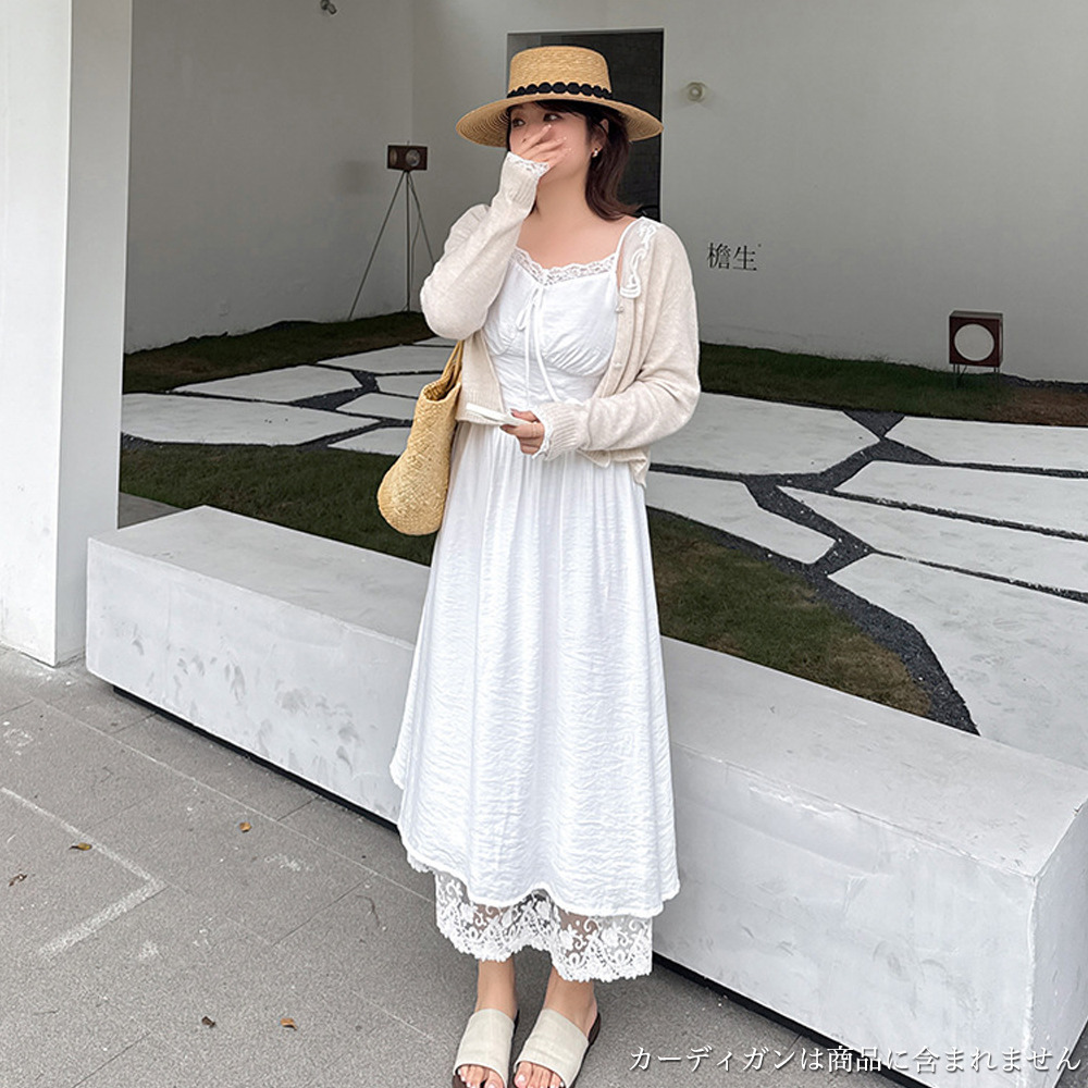 ◆大きいサイズのレースコラージュ肩紐ワンピースの詳細