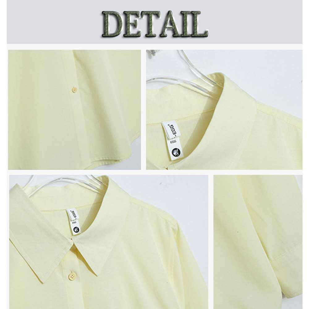 レギュラーカラーにフロントボタン留めの定番デザイン。