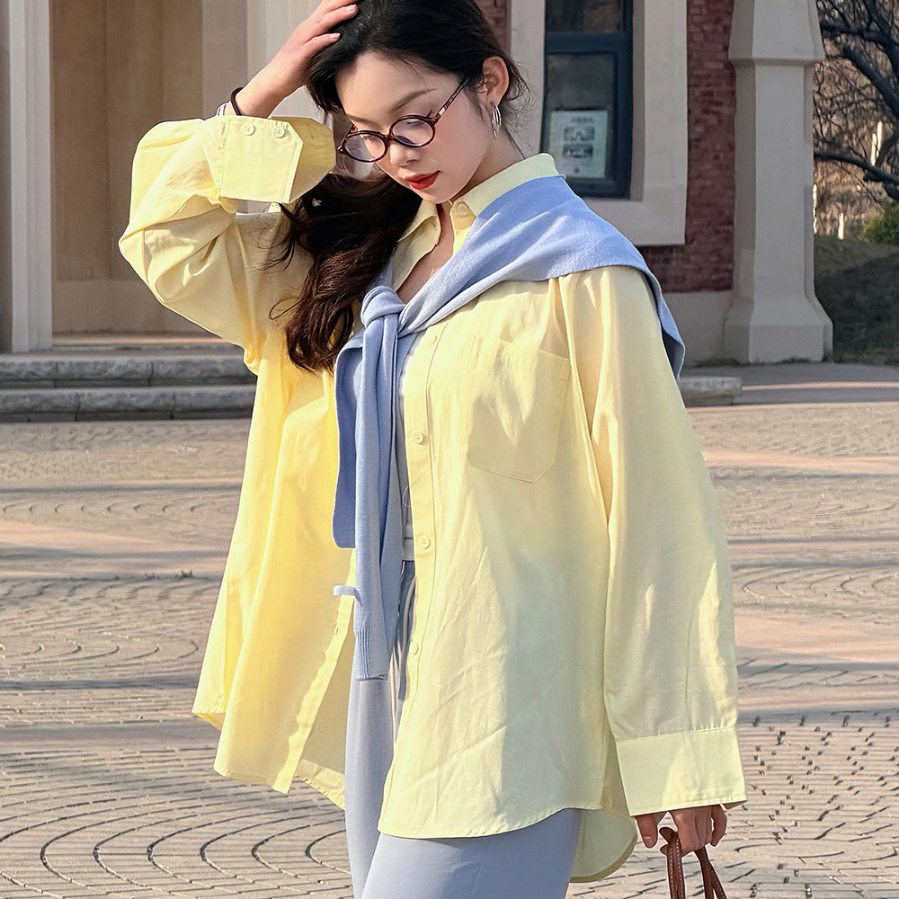 レイヤードにも最適 ボックスシルエットのシンプルなシャツブラウス