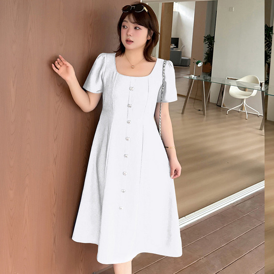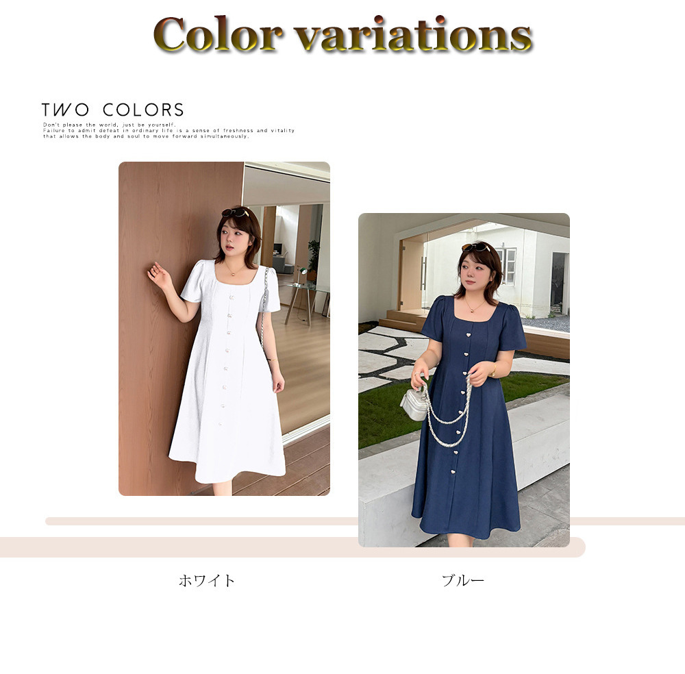 ◆大きいサイズのスクエアネックフレアワンピースの詳細