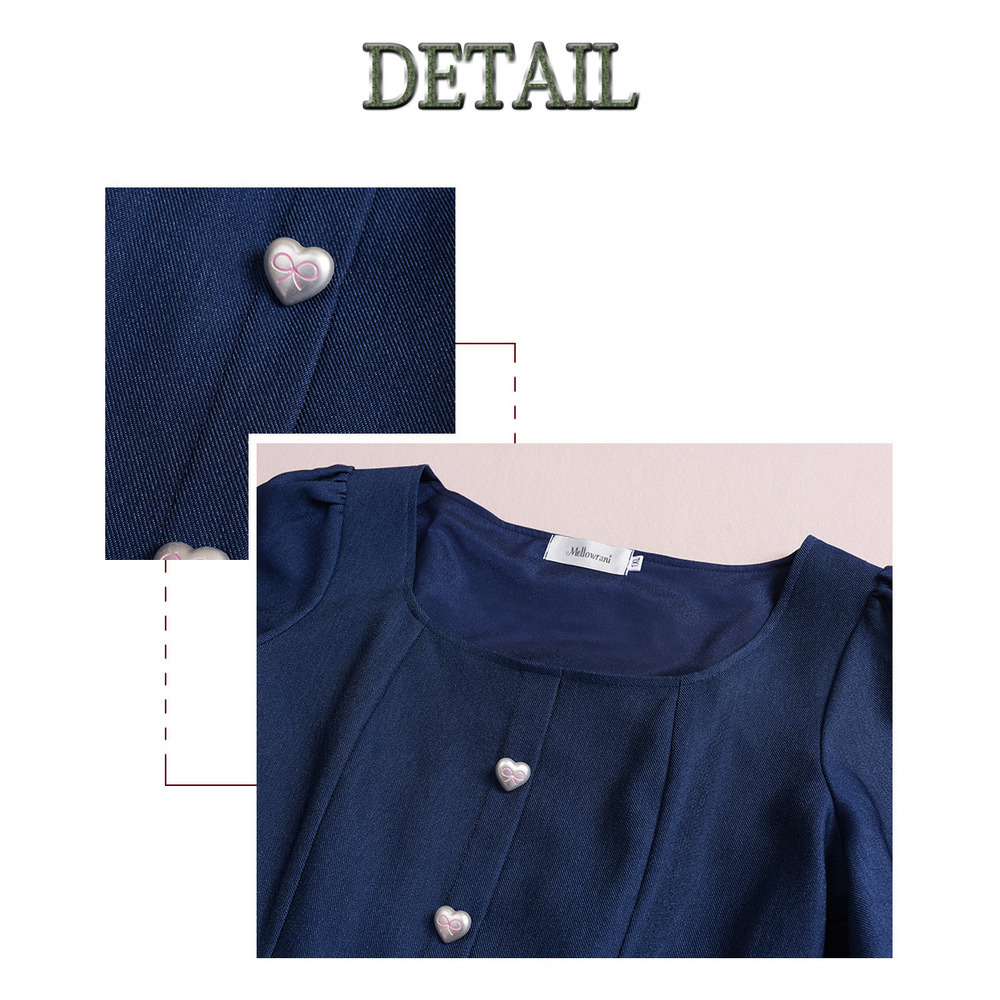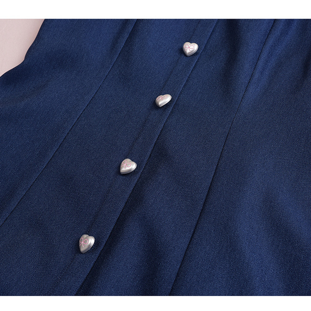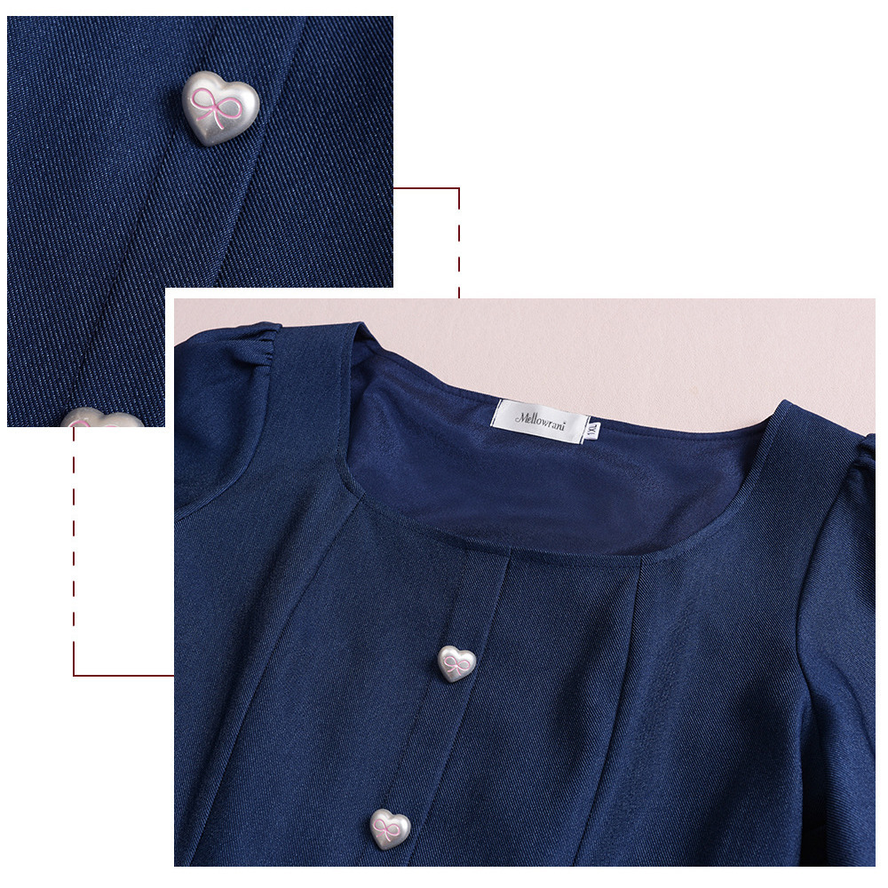 スクエアネックで下にハートの飾りボタンが7粒並んだデザイン。