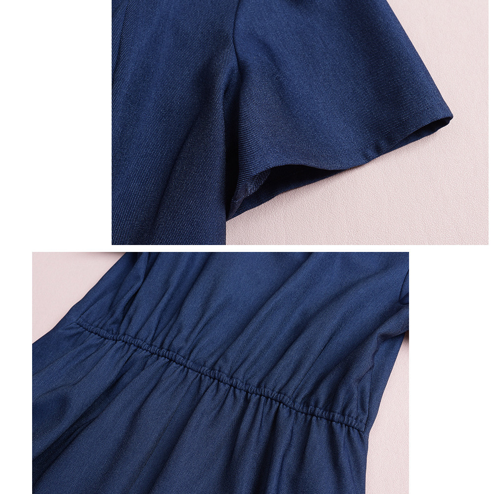 柔らかなフェイクデニム生地のフレアワンピース。