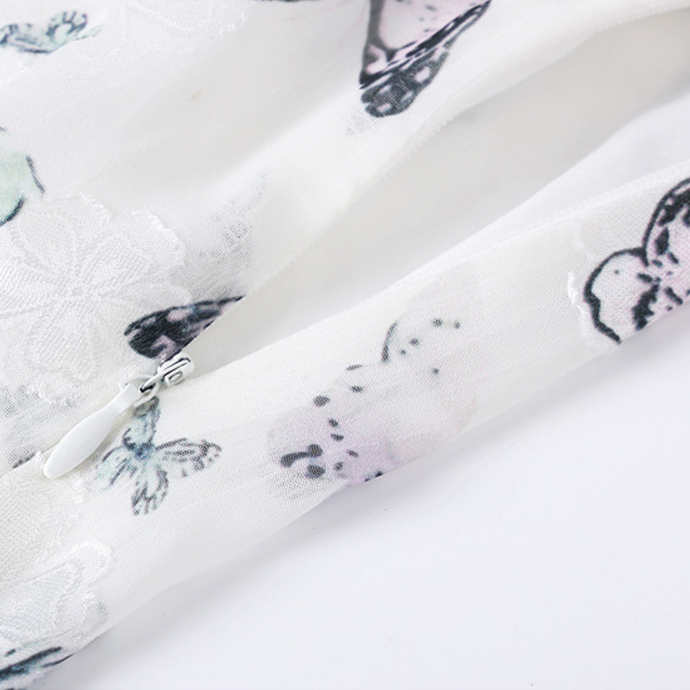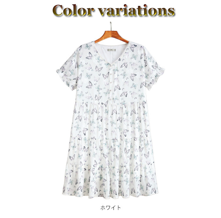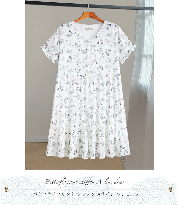 「バタフライプリント シフォン Aラインワンピース」