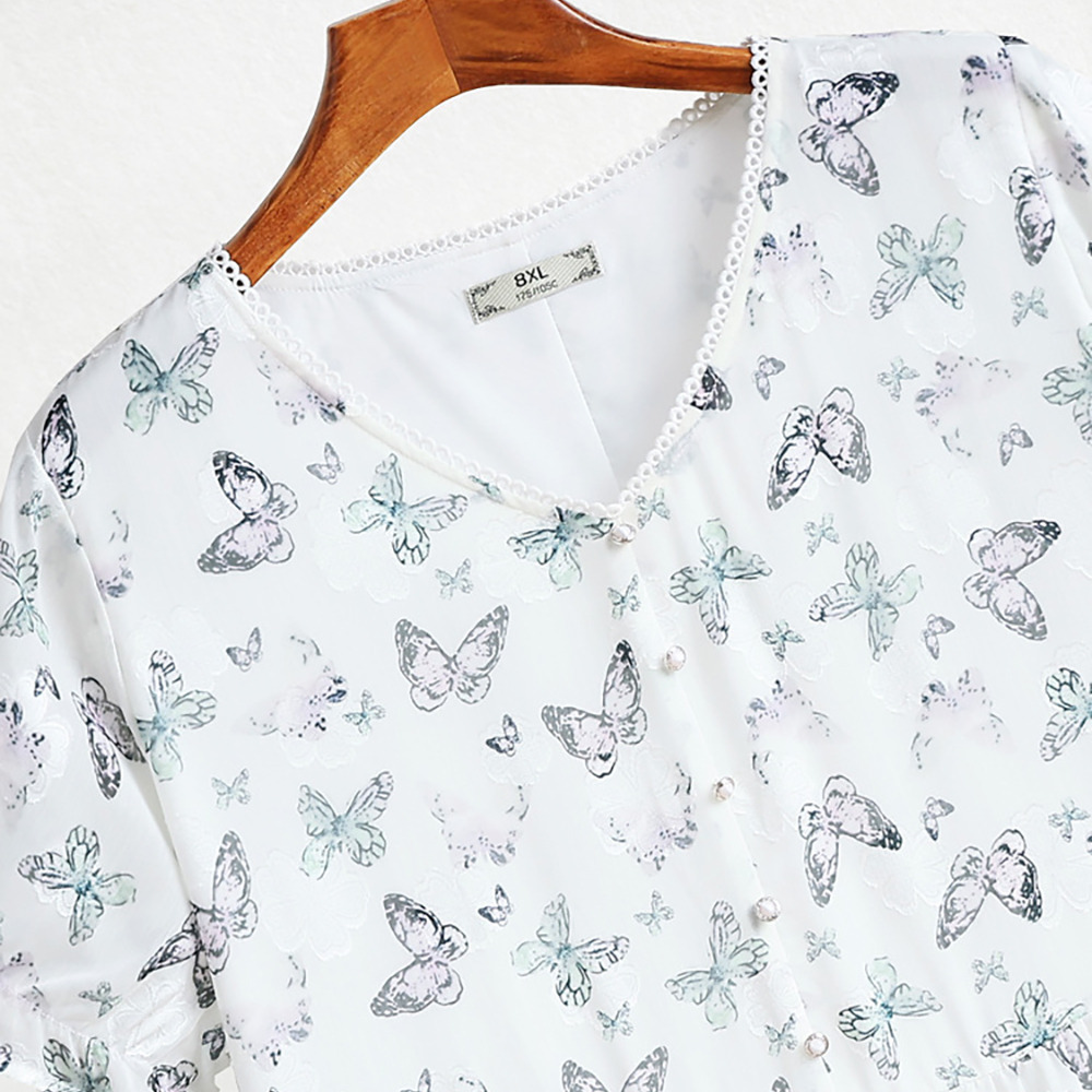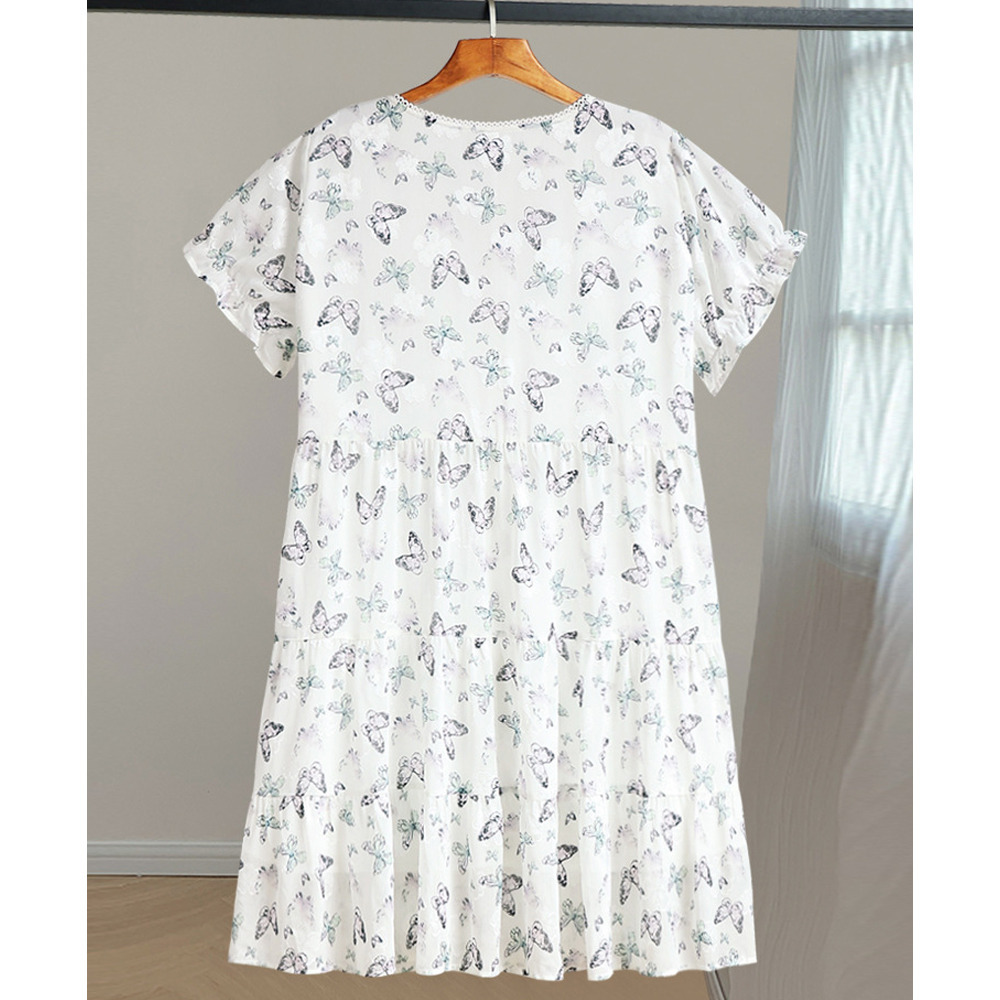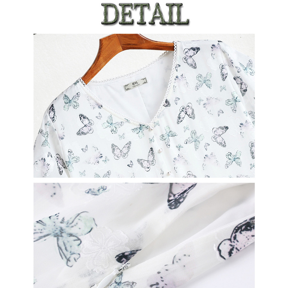蝶の彩度の低いプリントが上品で優雅なデザイン。