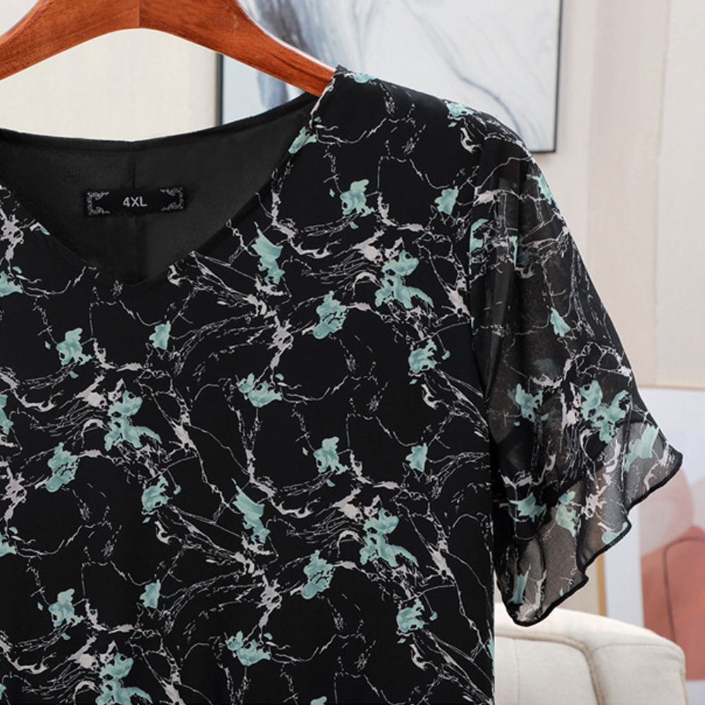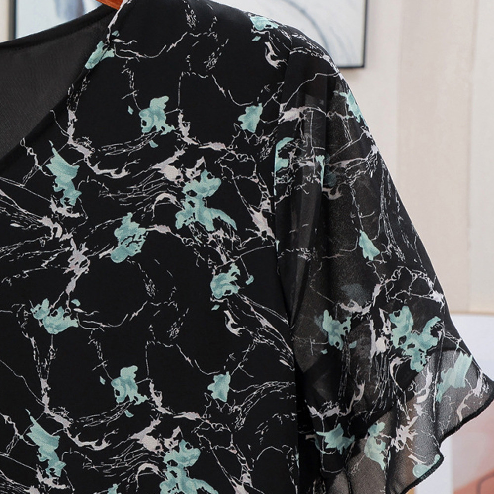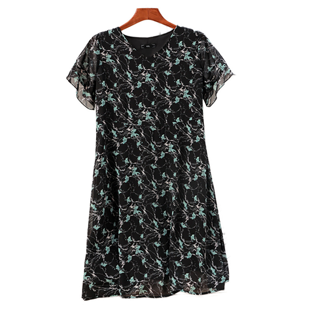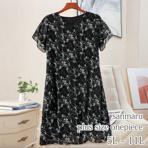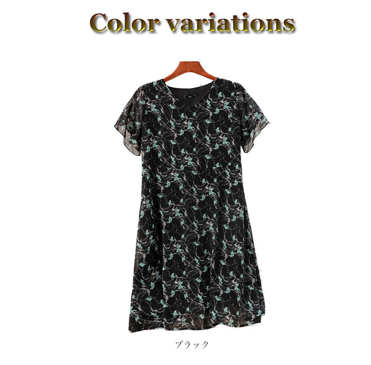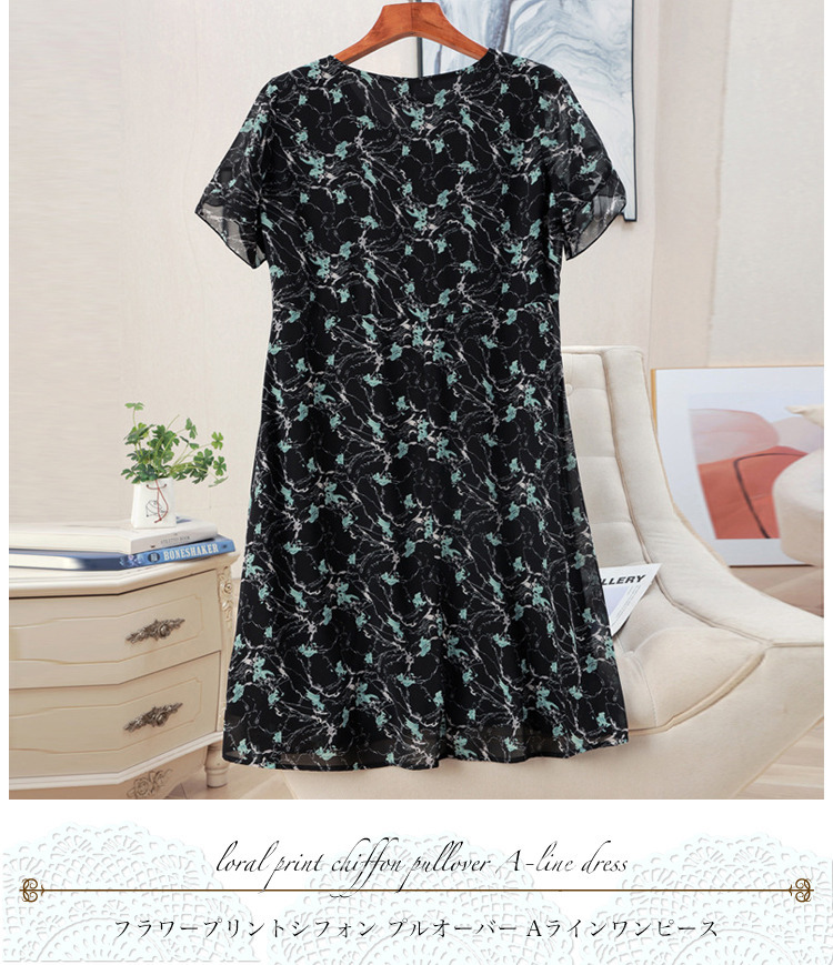 サイズが豊富!フラワープリント シフォン プルオーバーワンピース