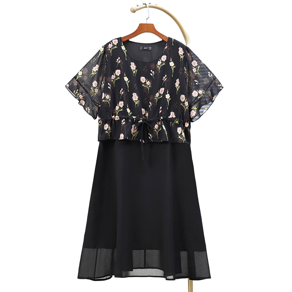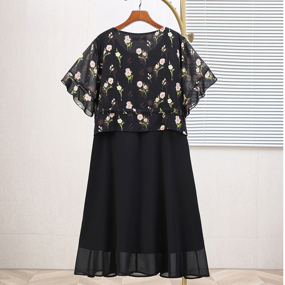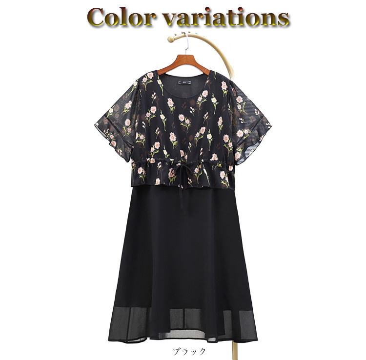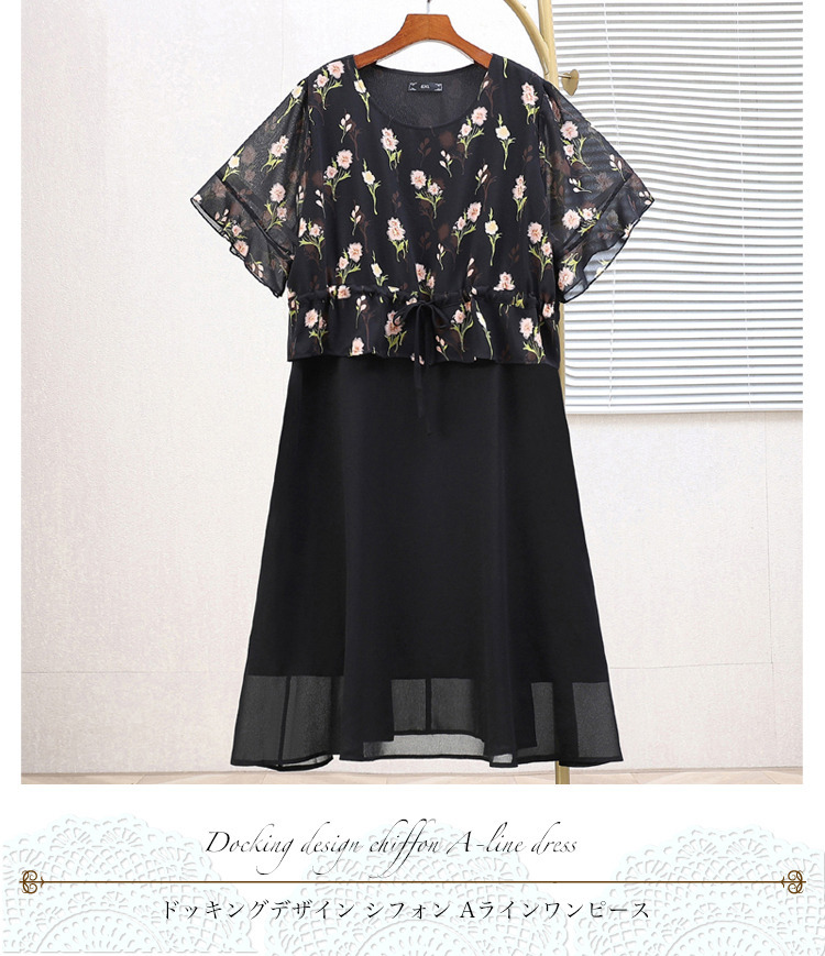 • サイズが豊富!ドッキングデザイン シフォン プルオーバーワンピース1