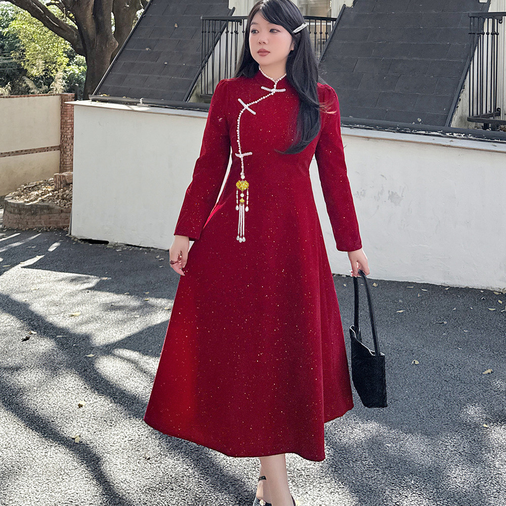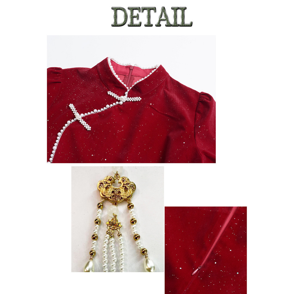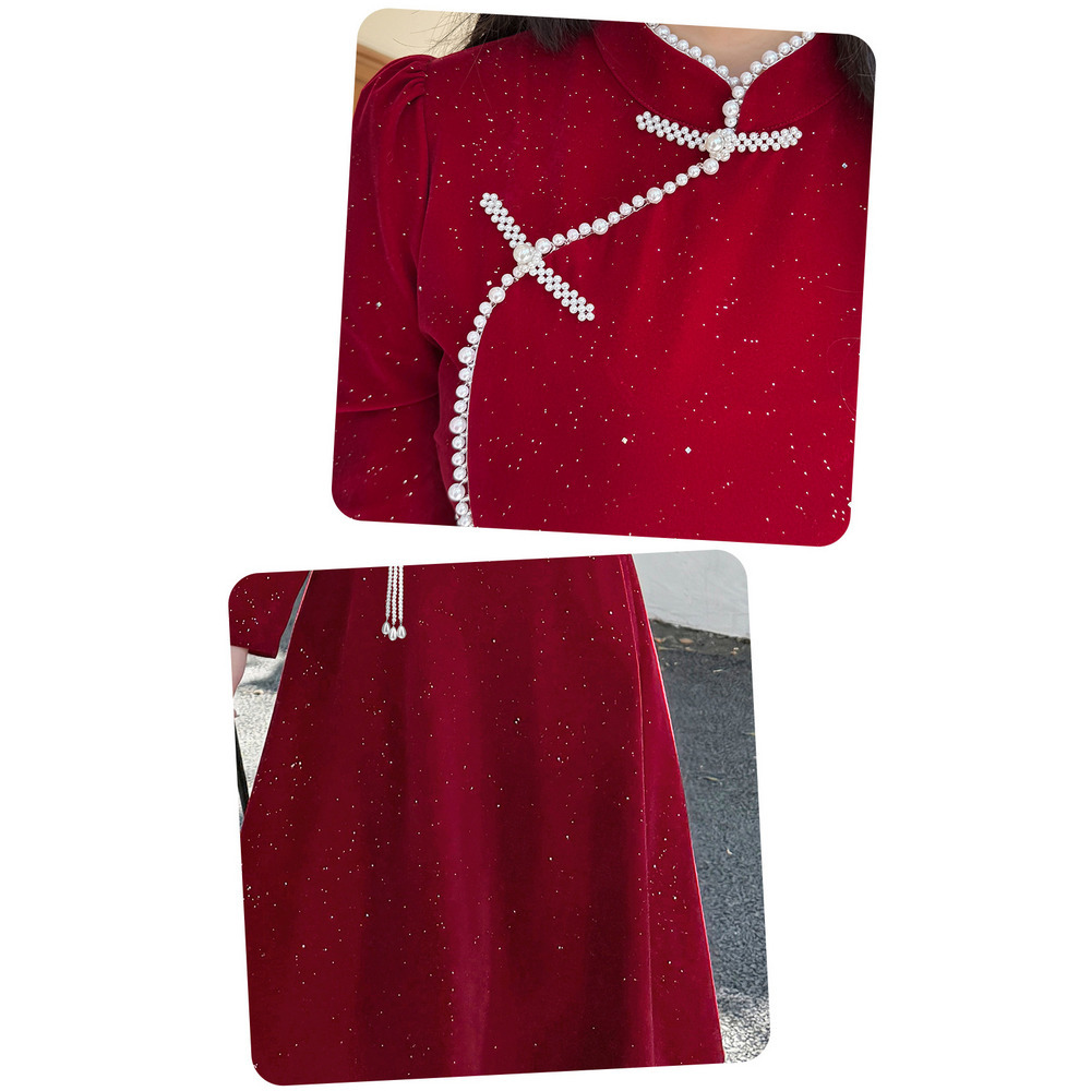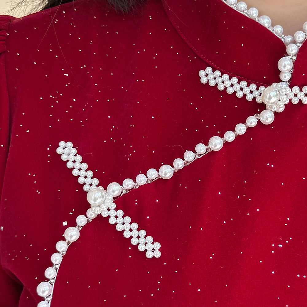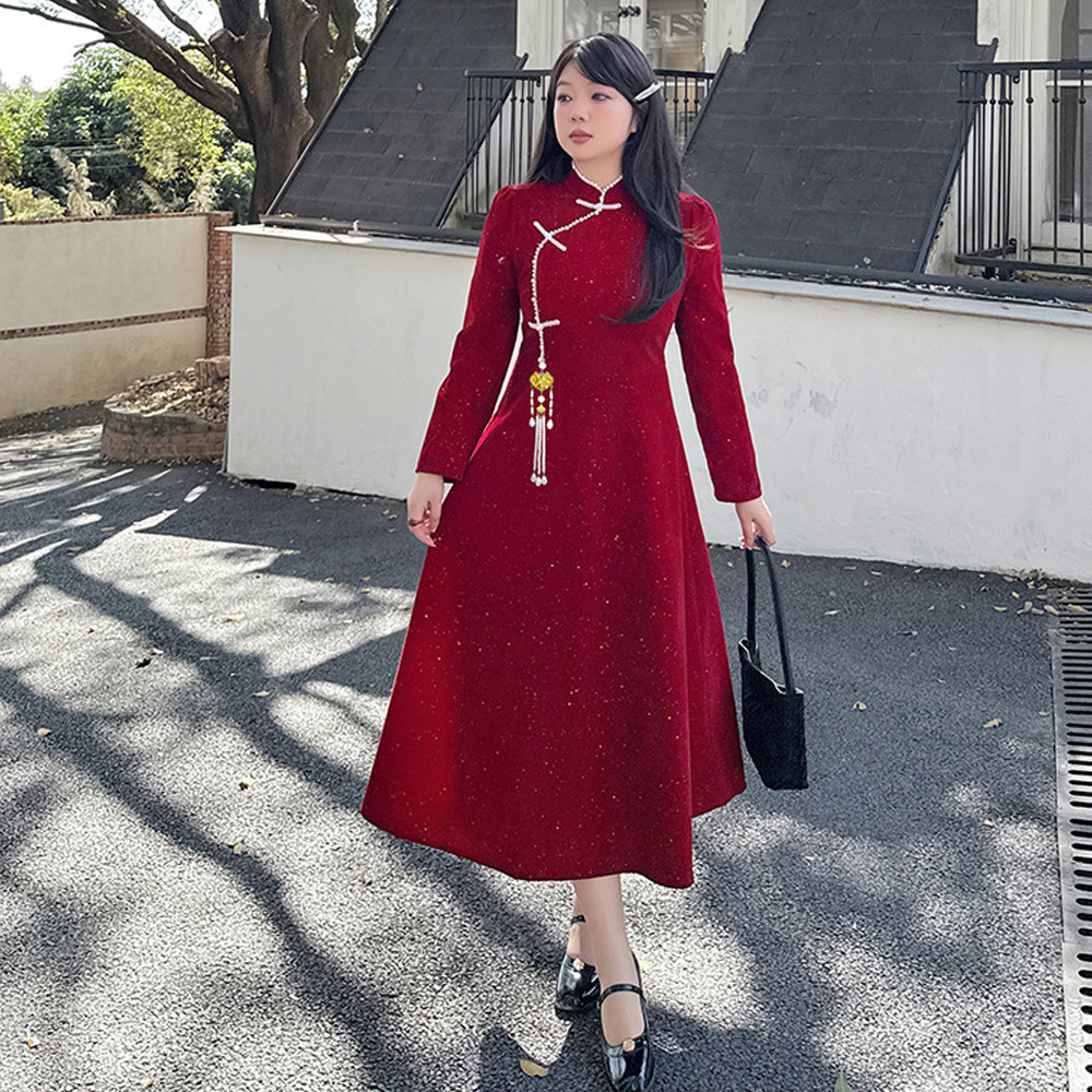 「ラメ入りベルベット生地 チャイナ風ワンピース」