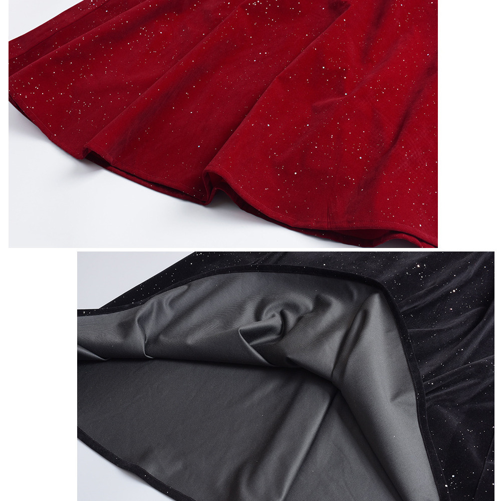 シルバーラメプリントベルベットのチャイナ風フレアワンピース