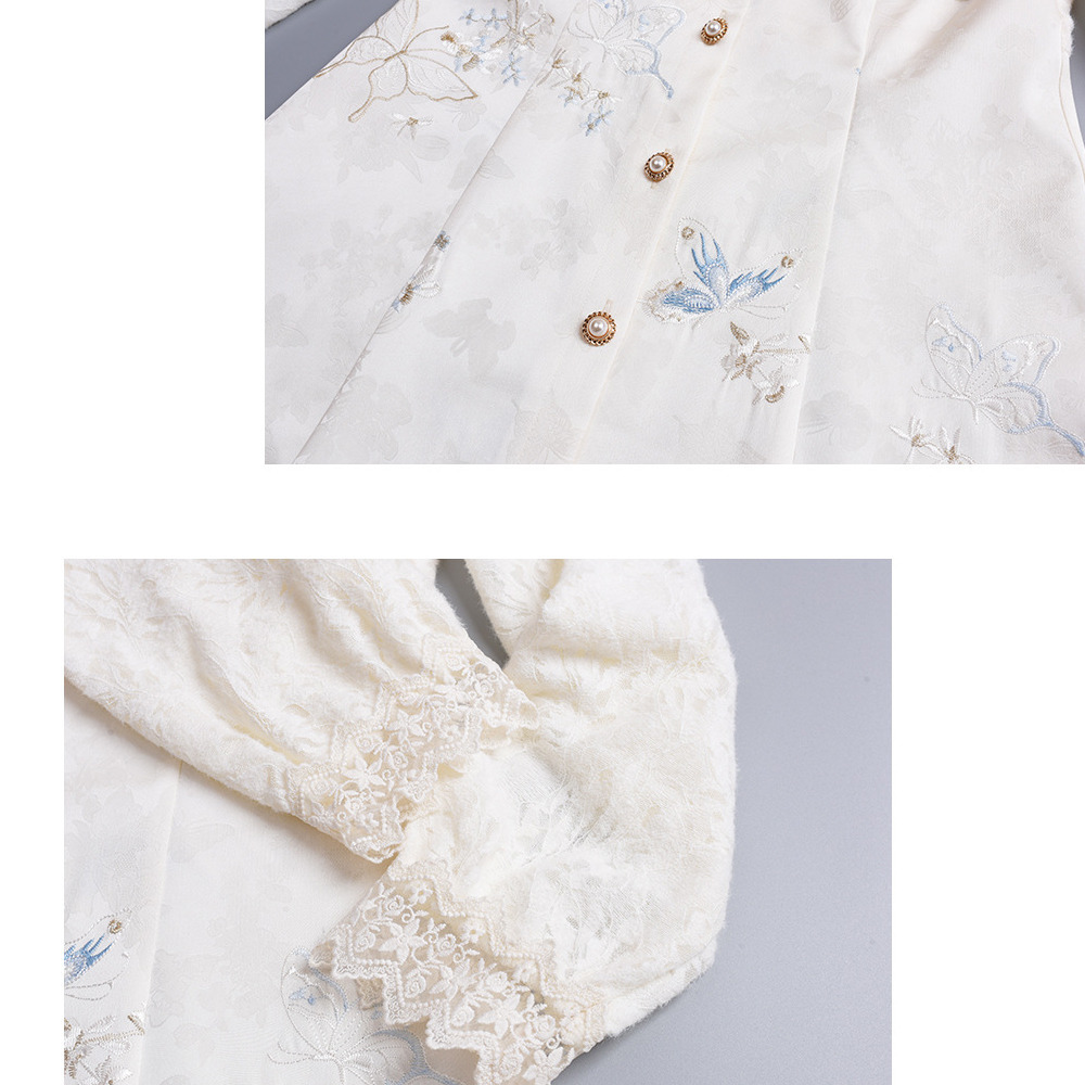 • 起毛レースとジャガード素材のビジューボタン開きフレアワンピース6