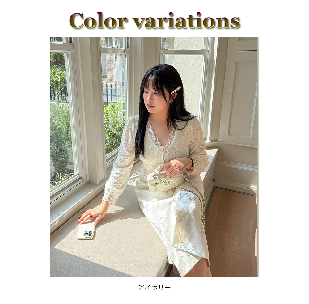 • 起毛レースとジャガード素材のビジューボタン開きフレアワンピース13