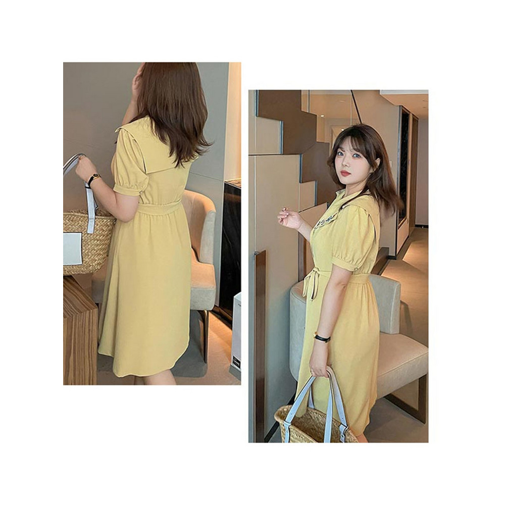 ビッグラペルカラーのフロントボタン半袖ワンピースです。