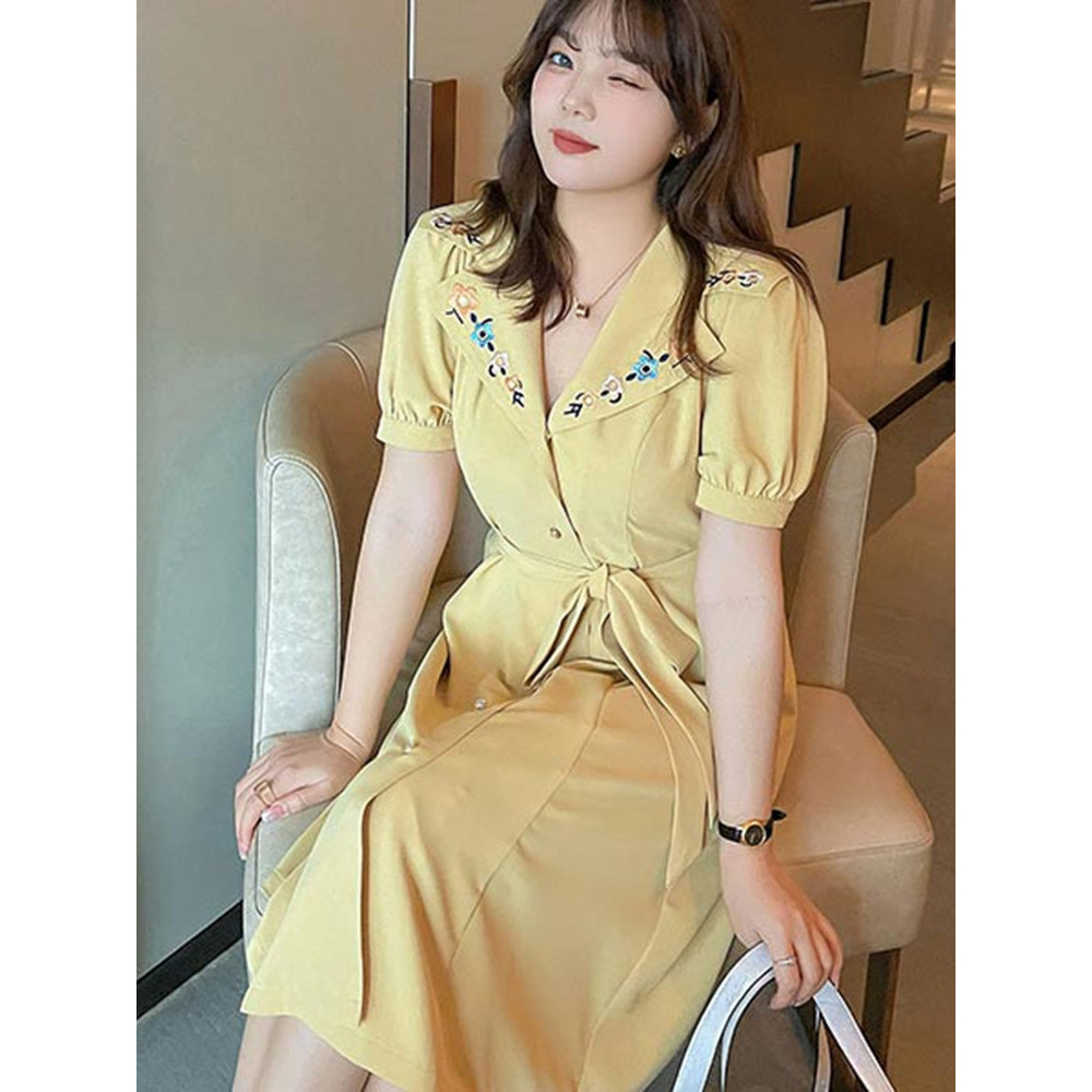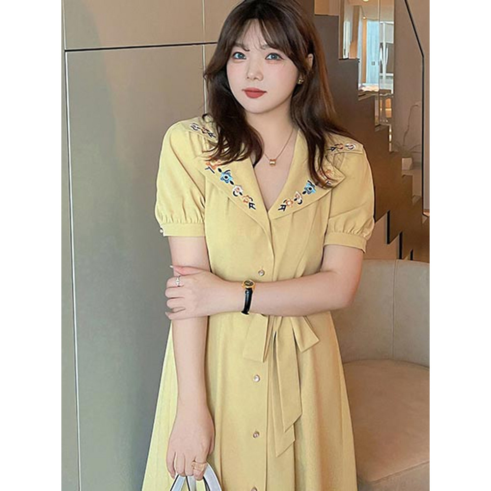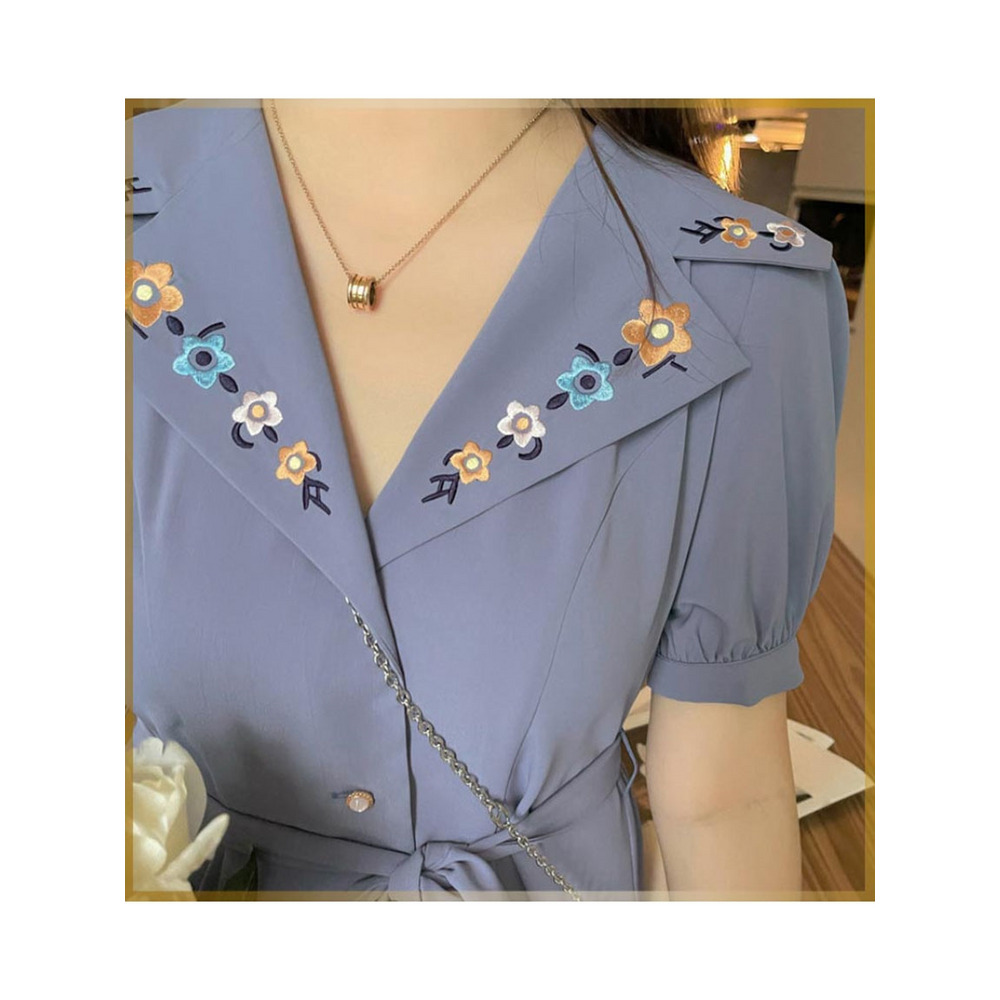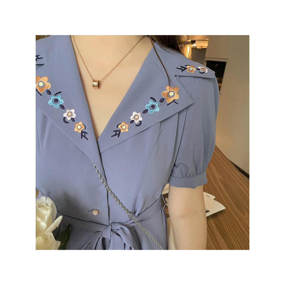 • 北欧風フラワー刺繍入りの大きな襟がガーリーなワンピース 海外インポート服 sanmaru20