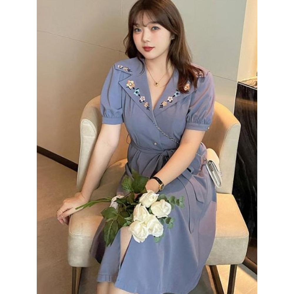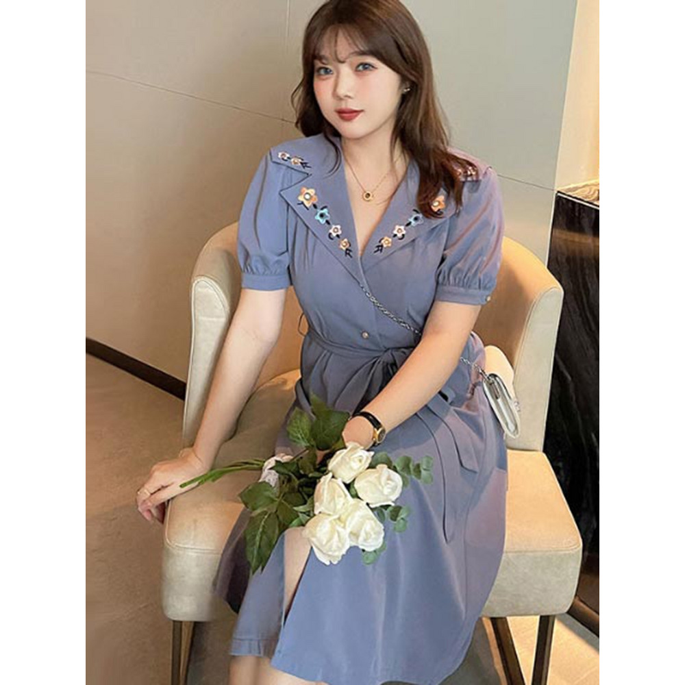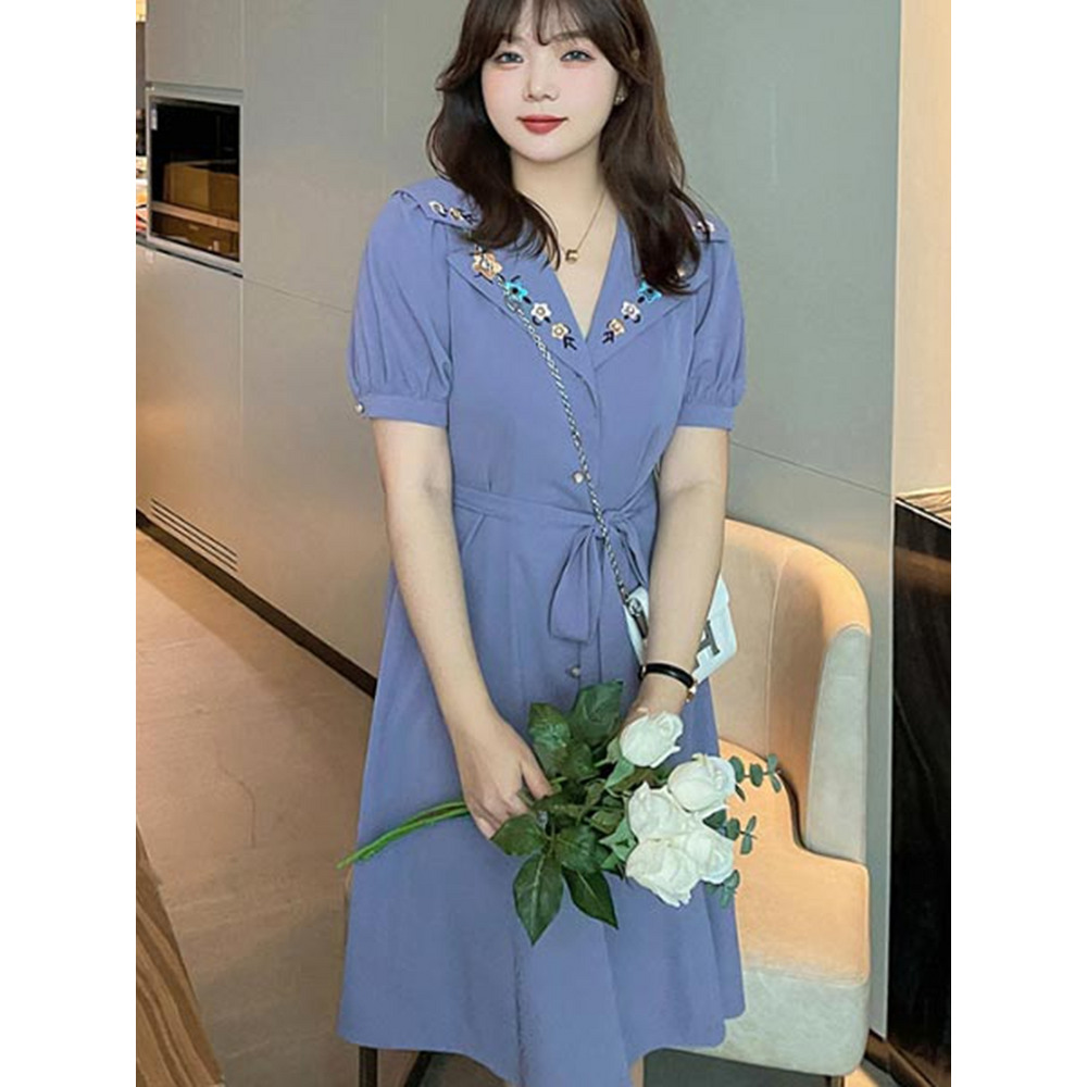 • 北欧風フラワー刺繍入りの大きな襟がガーリーなワンピース 海外インポート服 sanmaru23