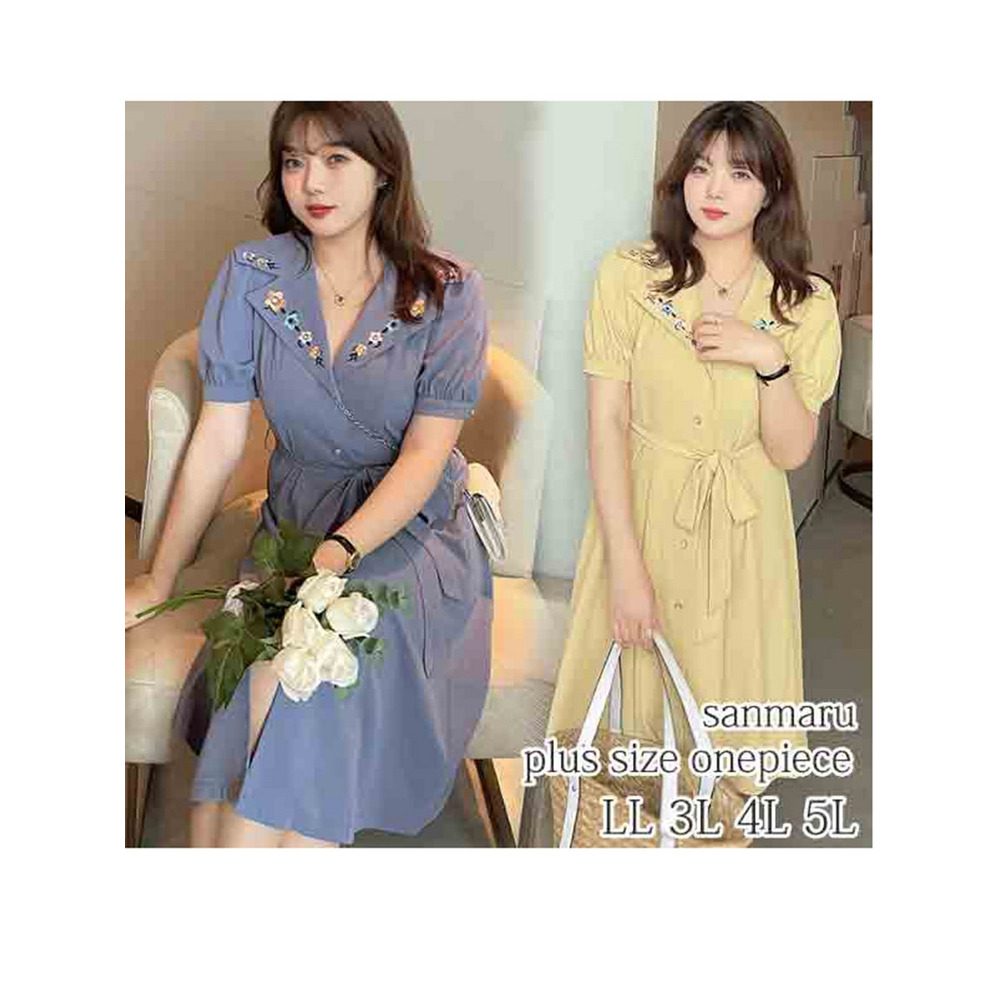• 北欧風フラワー刺繍入りの大きな襟がガーリーなワンピース 海外インポート服 sanmaru3