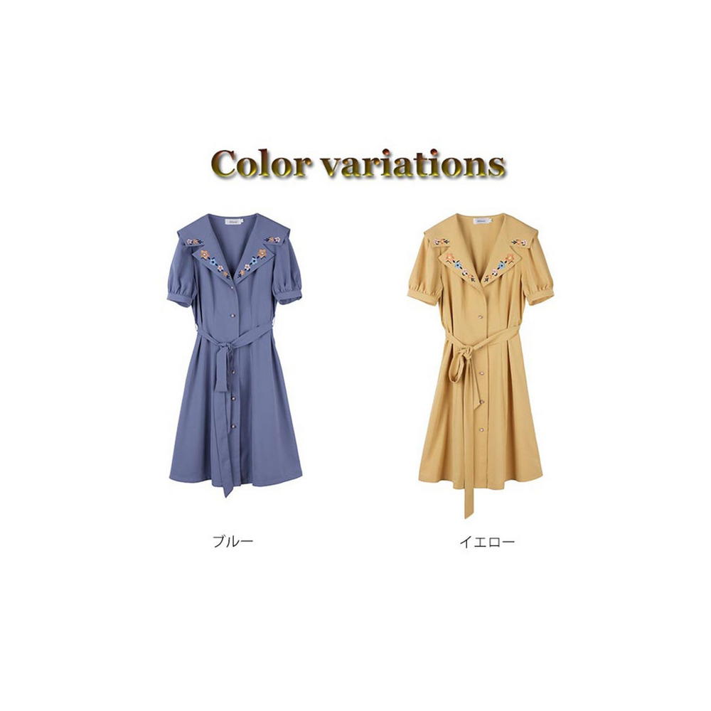 • 北欧風フラワー刺繍入りの大きな襟がガーリーなワンピース 海外インポート服 sanmaru12