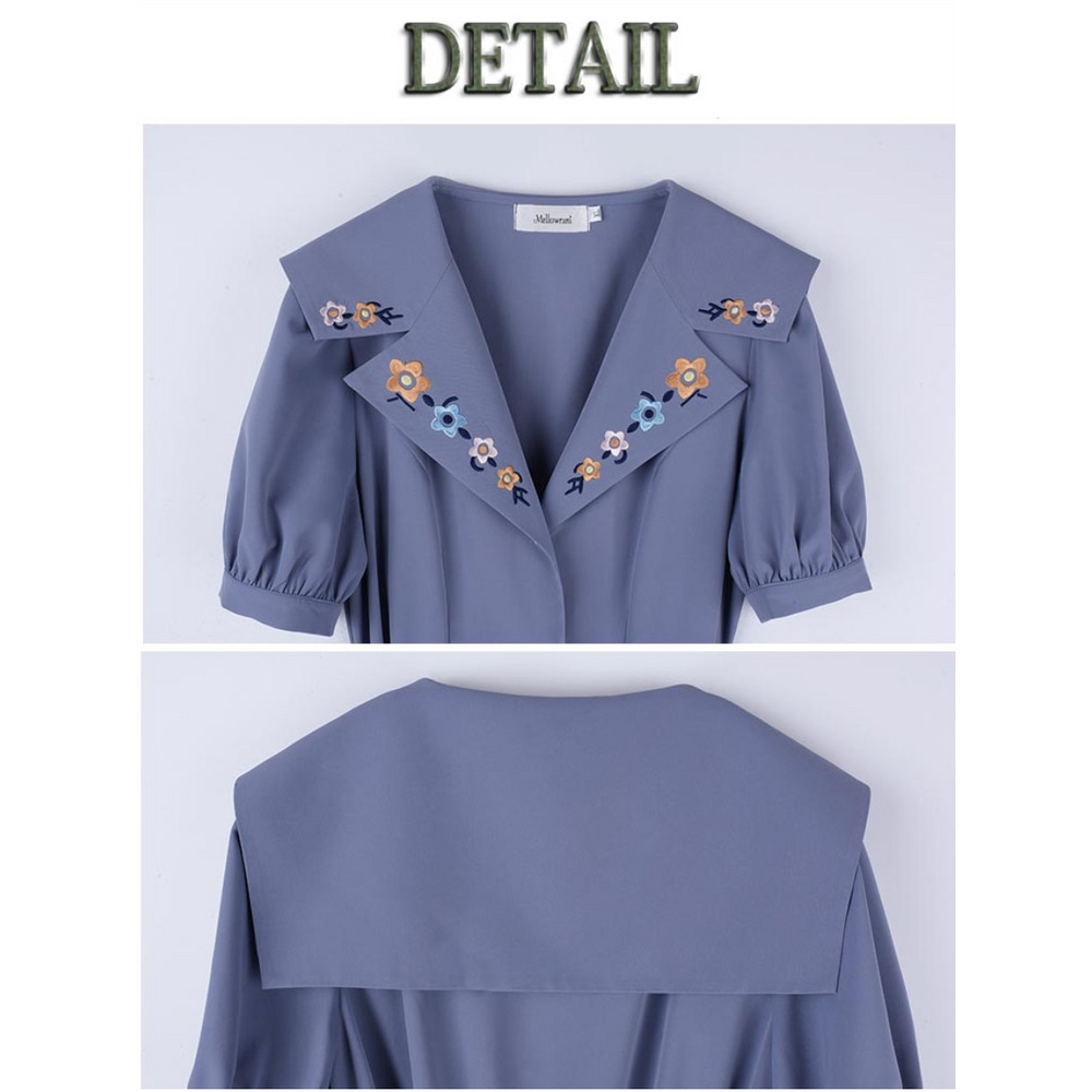 • 北欧風フラワー刺繍入りの大きな襟がガーリーなワンピース 海外インポート服 sanmaru7