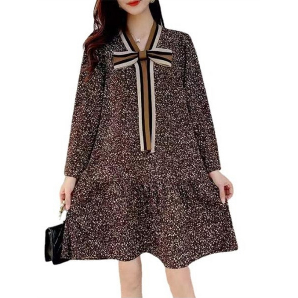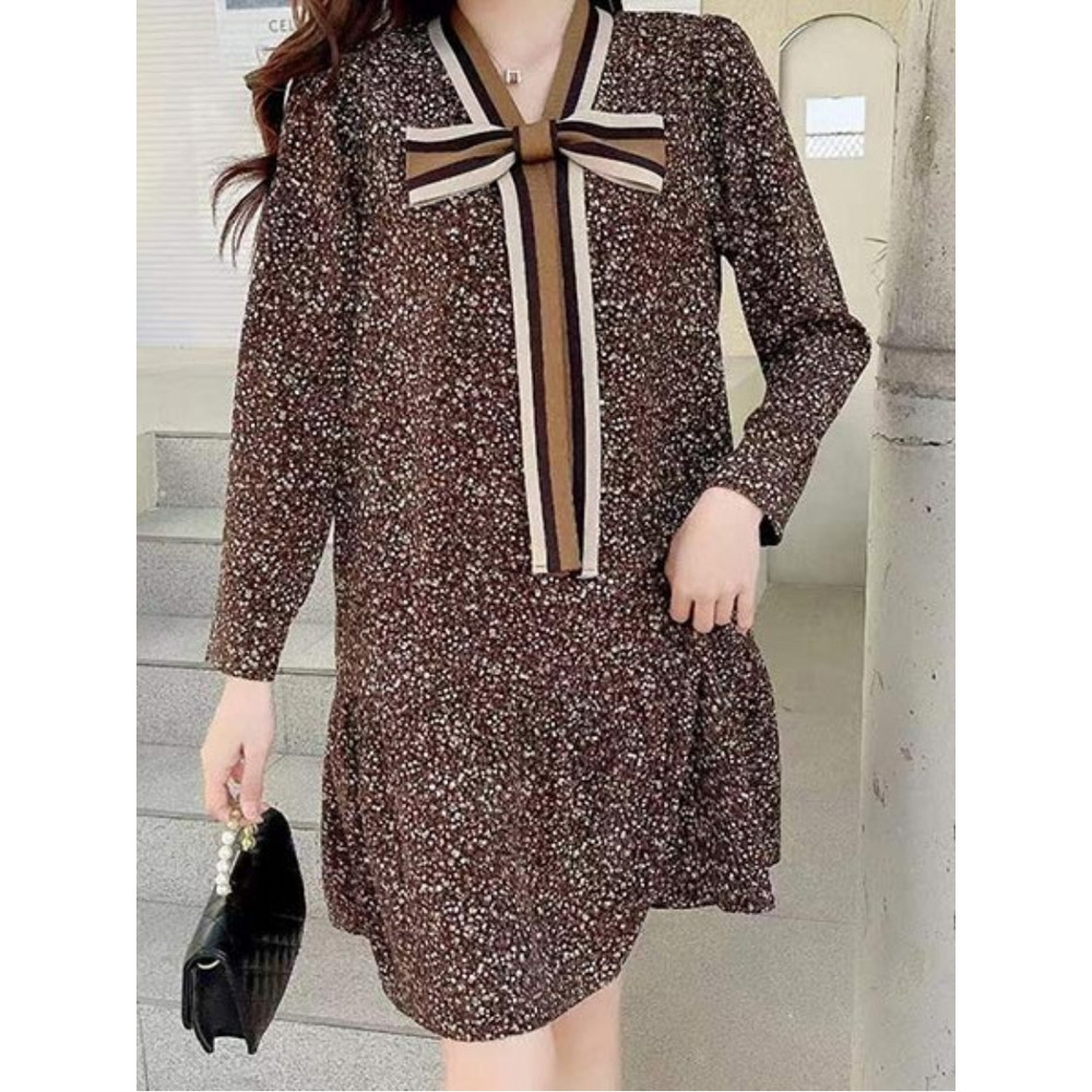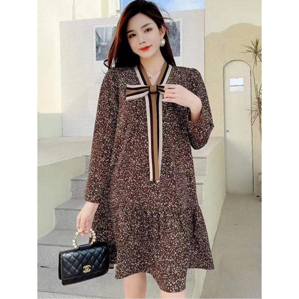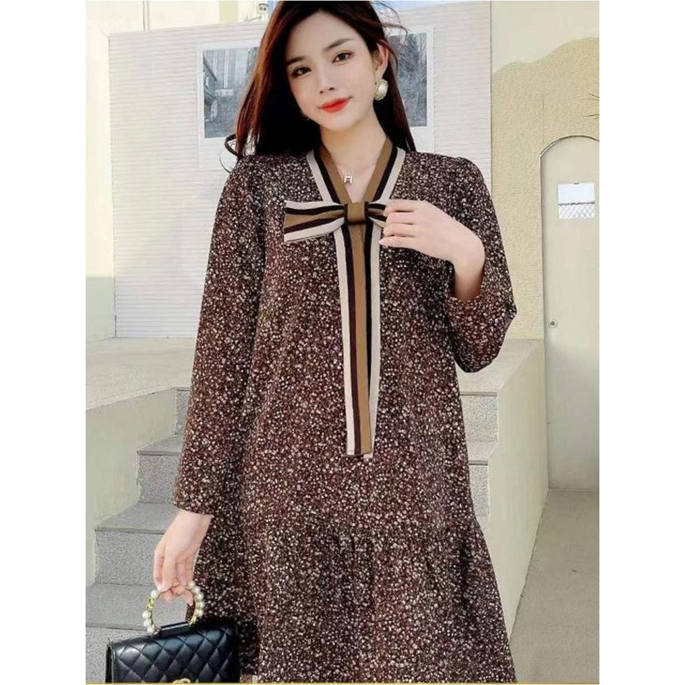 ドット風の小花柄とレトロ花柄のビッグリボンデザイン ワンピース 海外インポート服 sanmaru