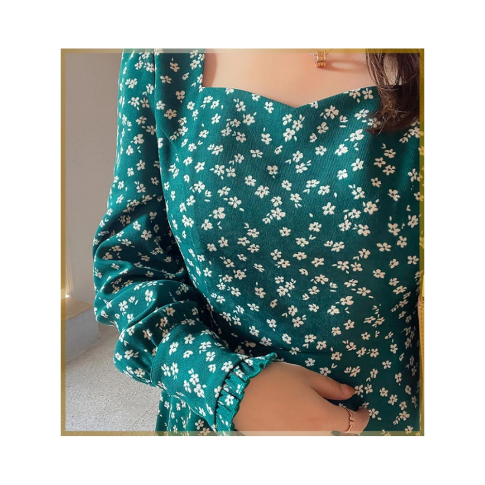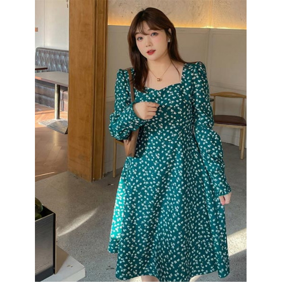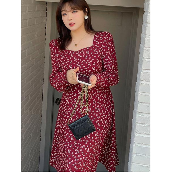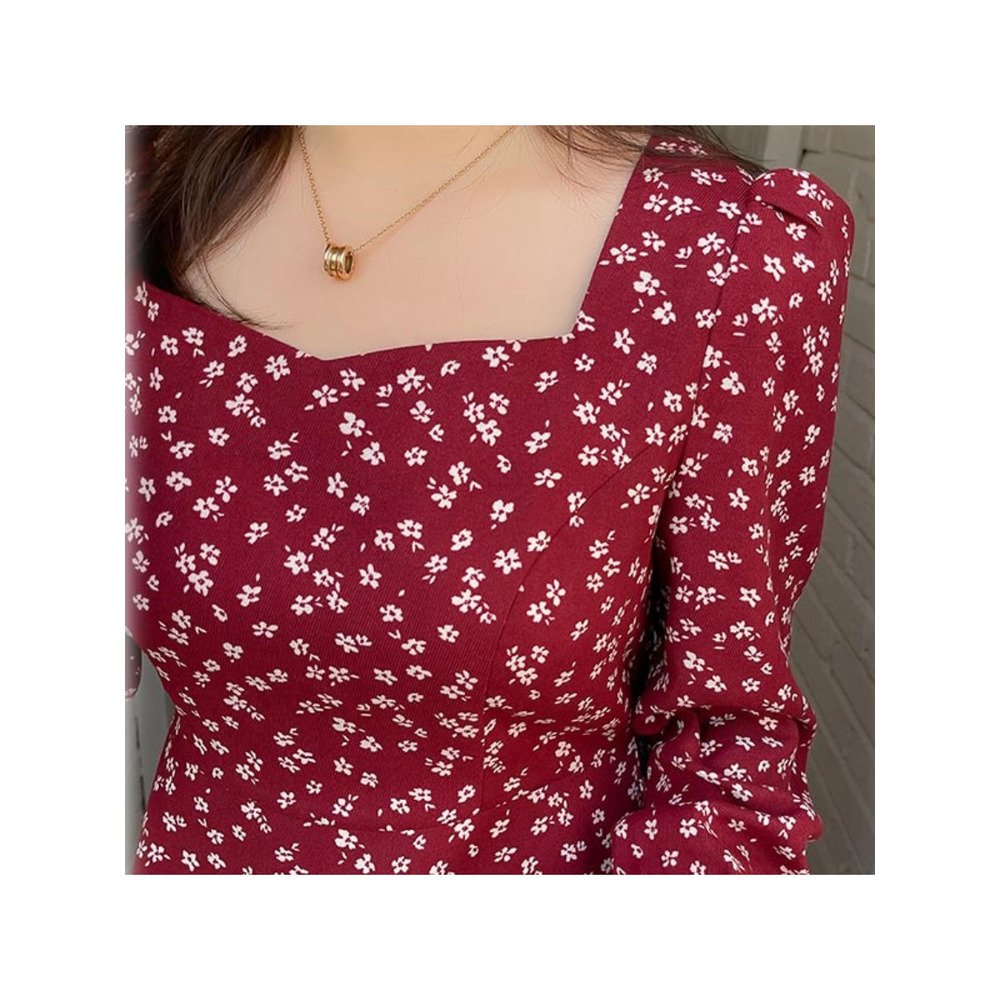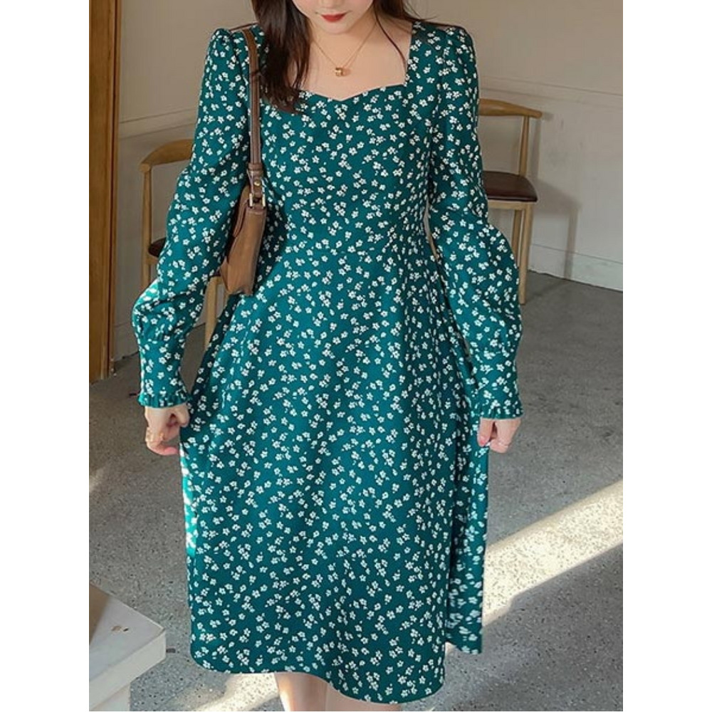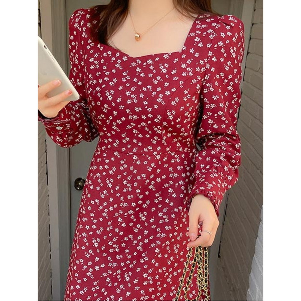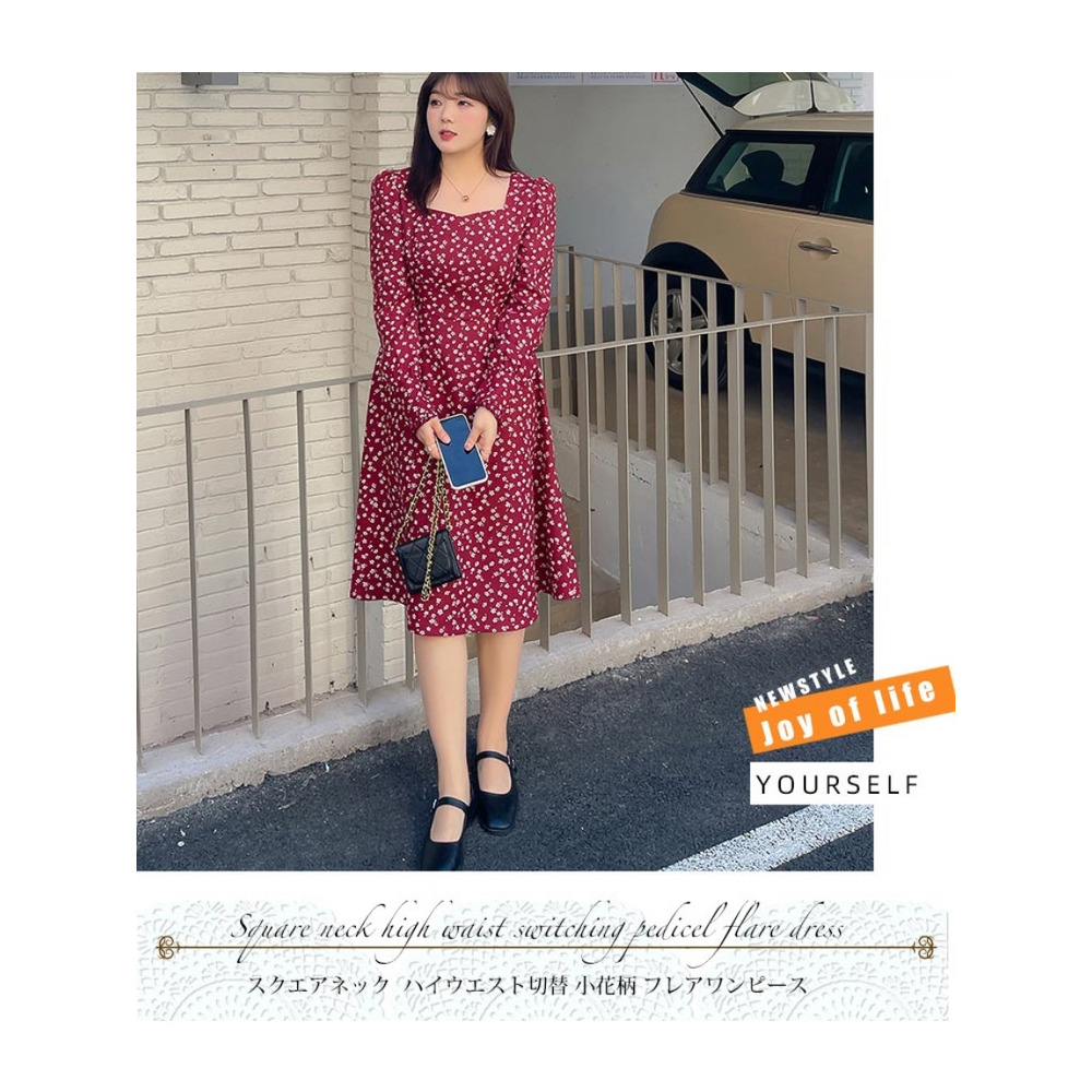 スクエアネックで胸元すっきり、ハイウエスト切替でスタイルアップ!