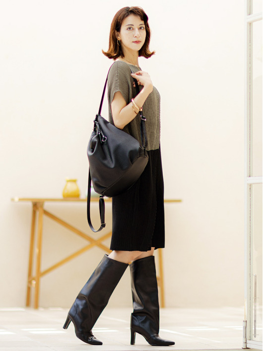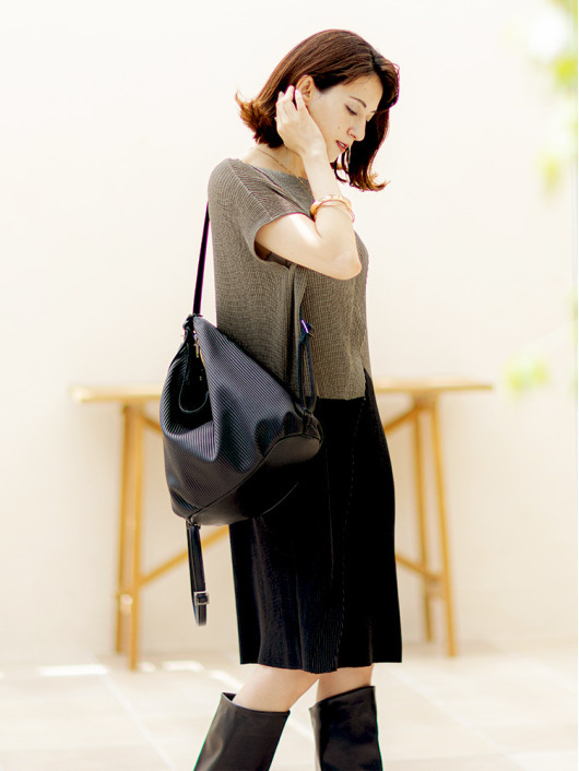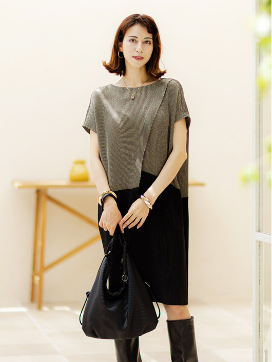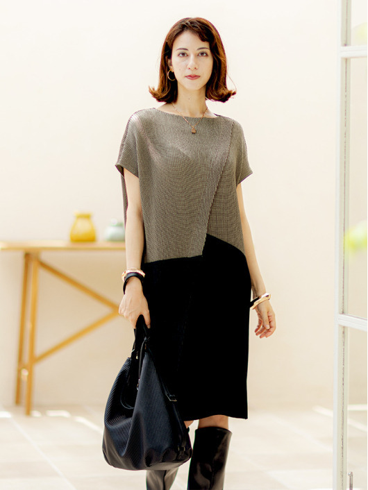 慌ただしい朝でも、1枚すとんと着れば瞬時にスタイルが決まる手軽さは大人の女性の強い味方に。お仕事はもちろん、ホームオフィスにも相応しく、お家でもそのままでも外出ができる、きれいめで大人カッコいい最旬スタイルが魅力です。シンプルながらもアクセントが効いているので着映え力が高く、体型カバーにもGOOD◎ 寒さが増してくる季節には、暖かいインナーを下に重ね着してもストレスなく着られます。
