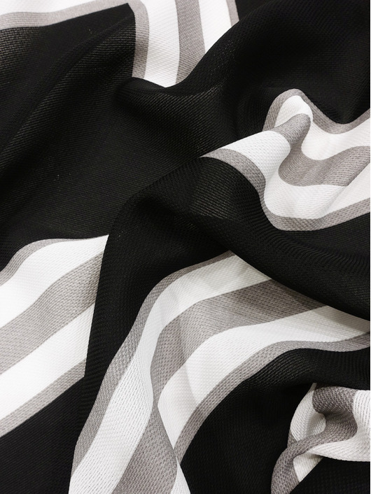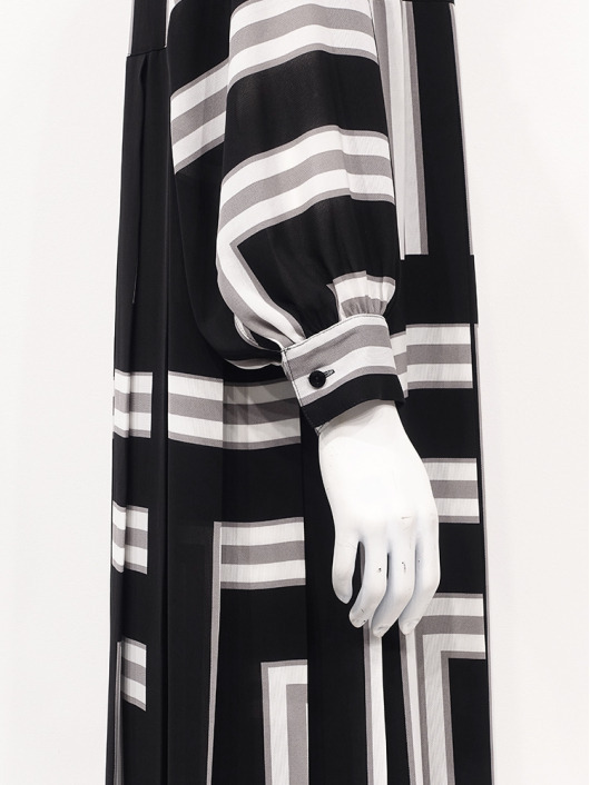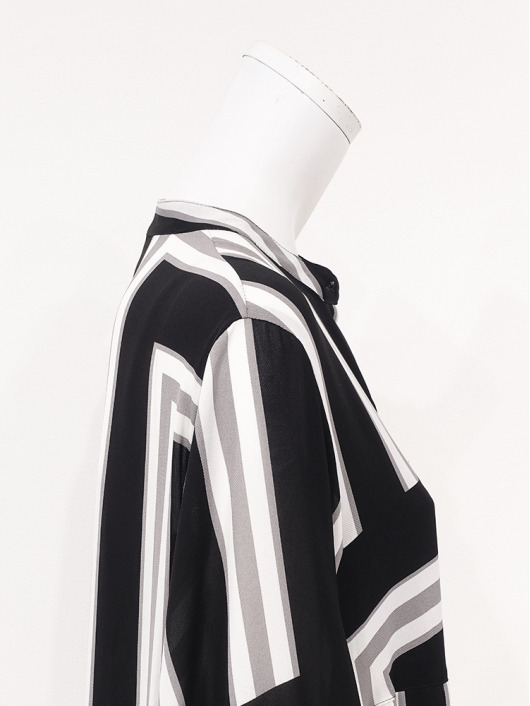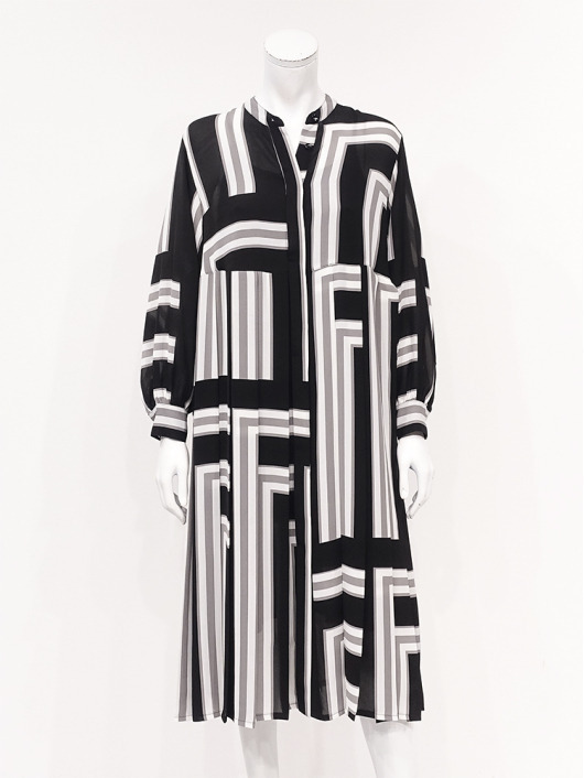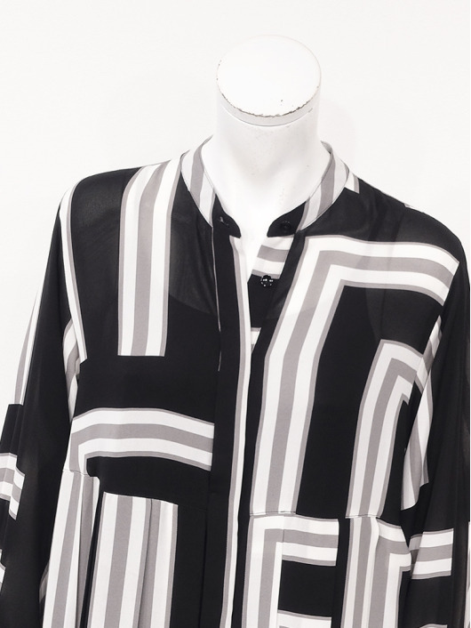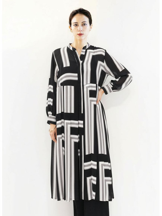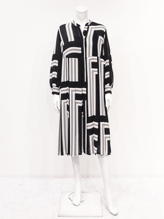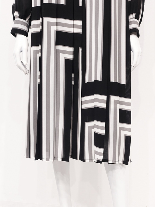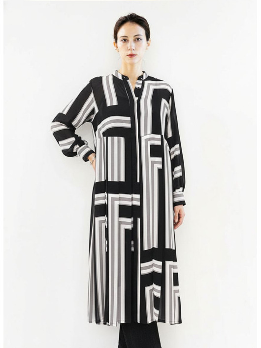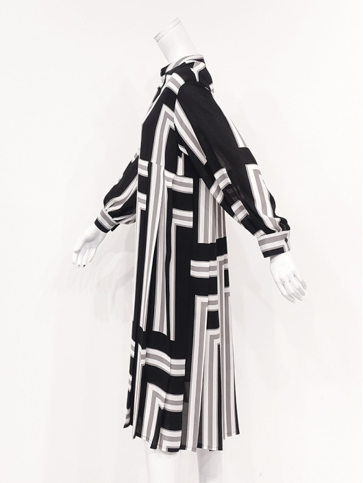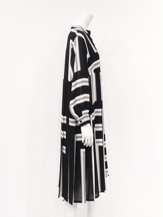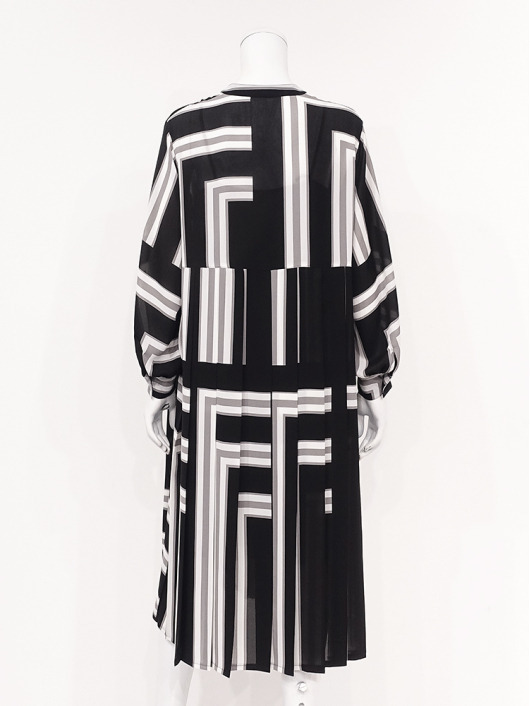 ふわりと柔らかくしなやか、上品な透け感を併せ持つレトロな素材感も魅力的。体のラインを拾いにくい機能的なデザインでバックスタイルも抜かりのないスタイリングに。