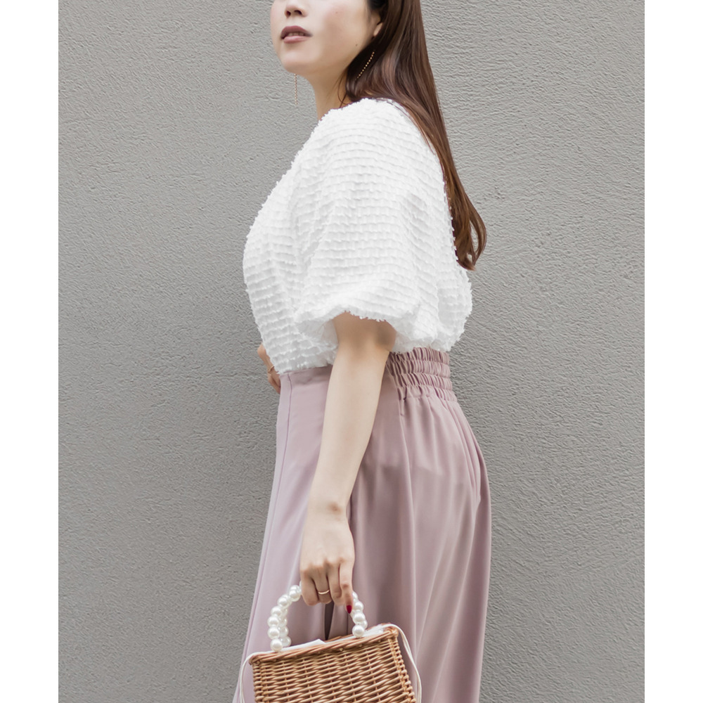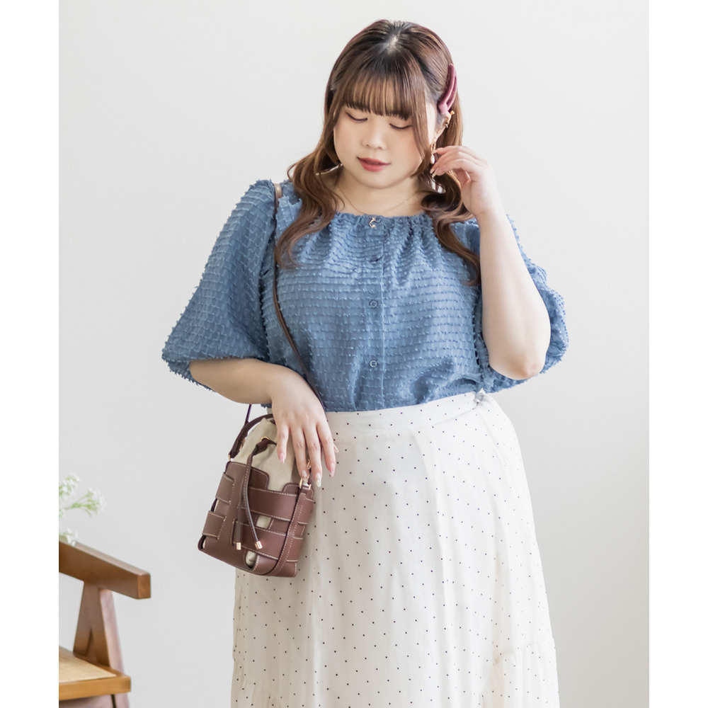 | 3Lサイズを着用しました。肩にゴムが入っていて、程よくゆとりを持たせたシルエット感だったので着心地も◎です!立体的なジャガード素材がとにかく華やかで、コーデに映える存在感たっぷりのデザインです♪きれいめボトムと合わせればオフィスカジュアルにも使え、カジュアルにデニムで合わせても洒落感が出せます。 |