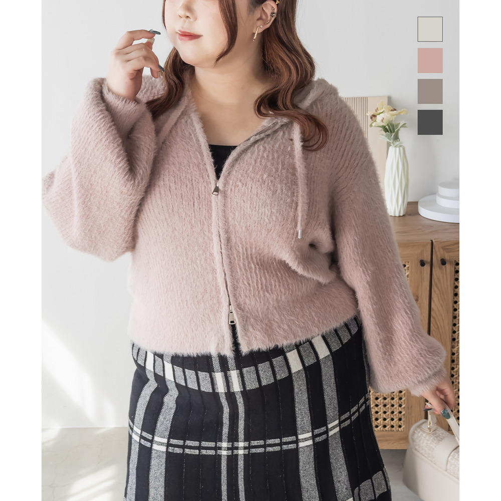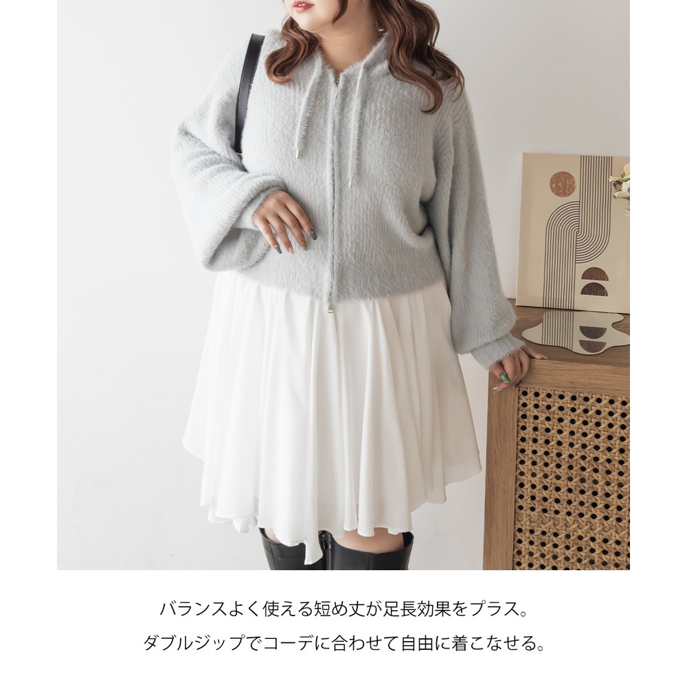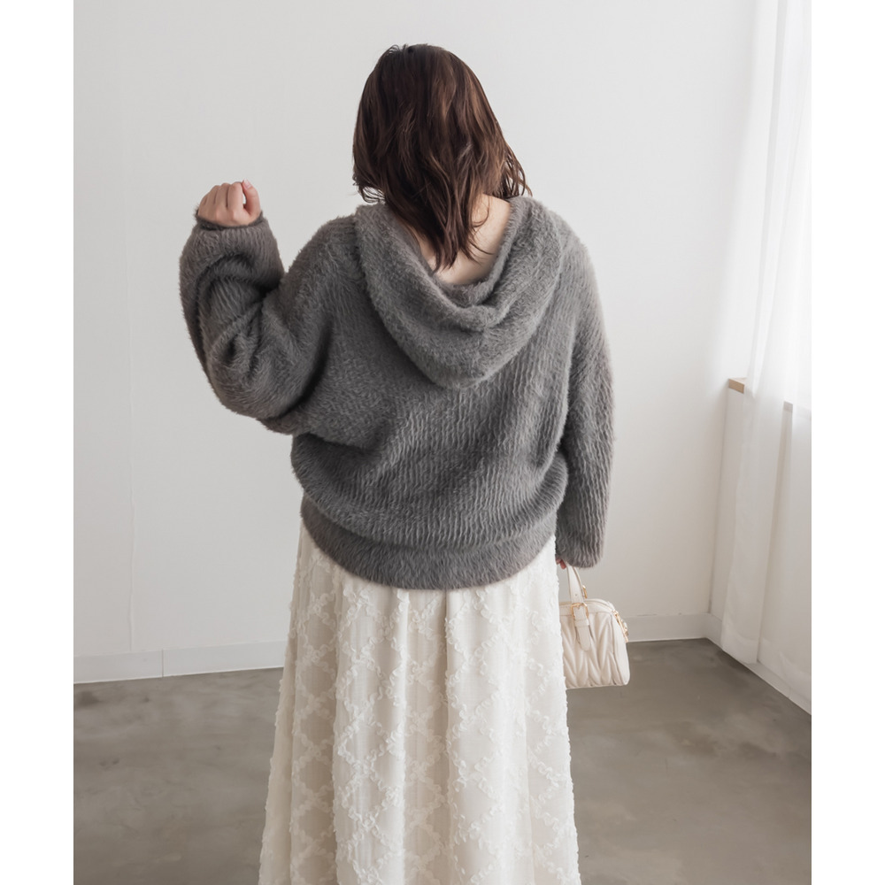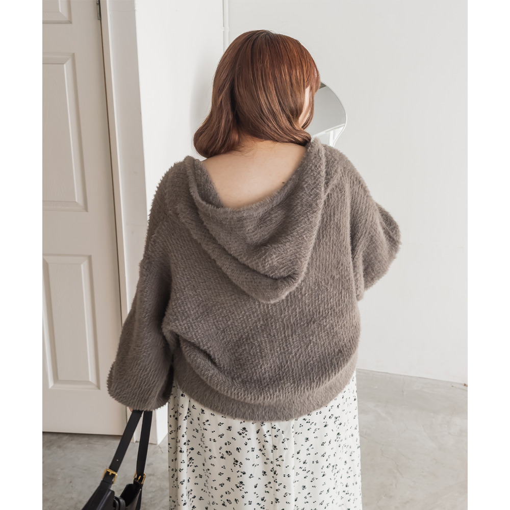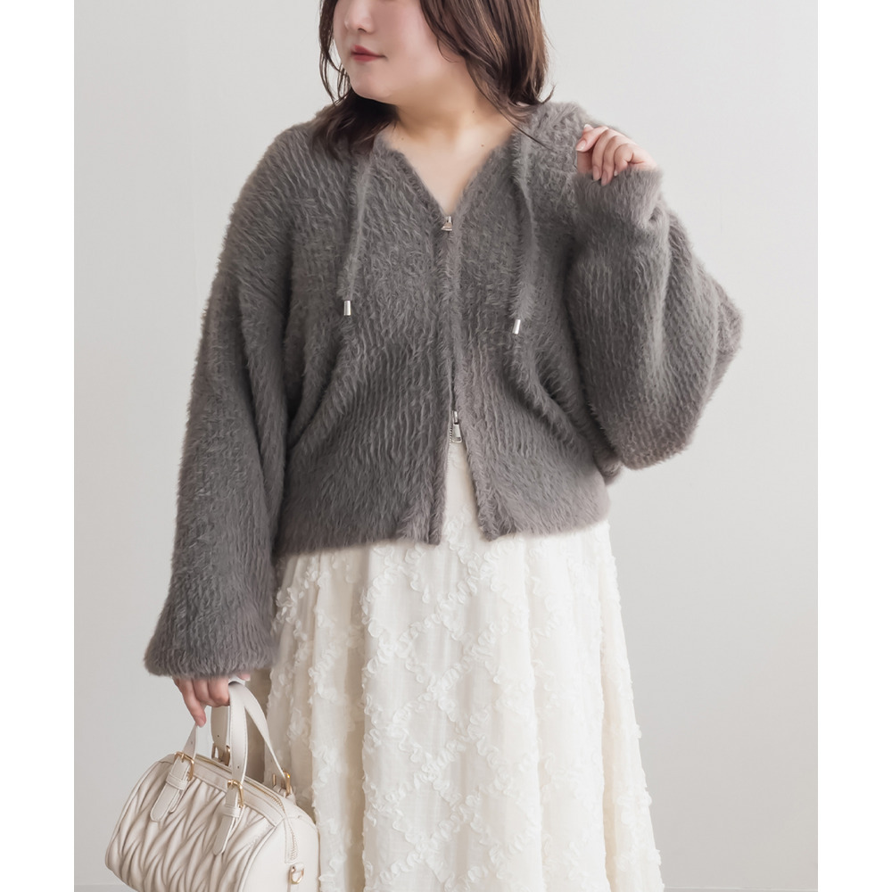 3Lサイズを着用してちょうどよく着られました!ゆるっとした落ち感のあるニットでとってもらくちんです!やわらかく伸縮性があって肌触りも抜群です♪程よい毛足の長さでボディラインも拾いづらいく、ふんわりフェミニンな雰囲気です!短すぎない丈感でスカートでもパンツでも羽織にしてワンピにも、どんなアイテムともコーデしやすいです!フード付きのアイテムはトレンド感たっぷりで1枚は持っておきたいアイテム!可愛いスカートと合わせてガーリースタイルにも、あえてハードなデニムと合わせるのもお勧めです◎ |